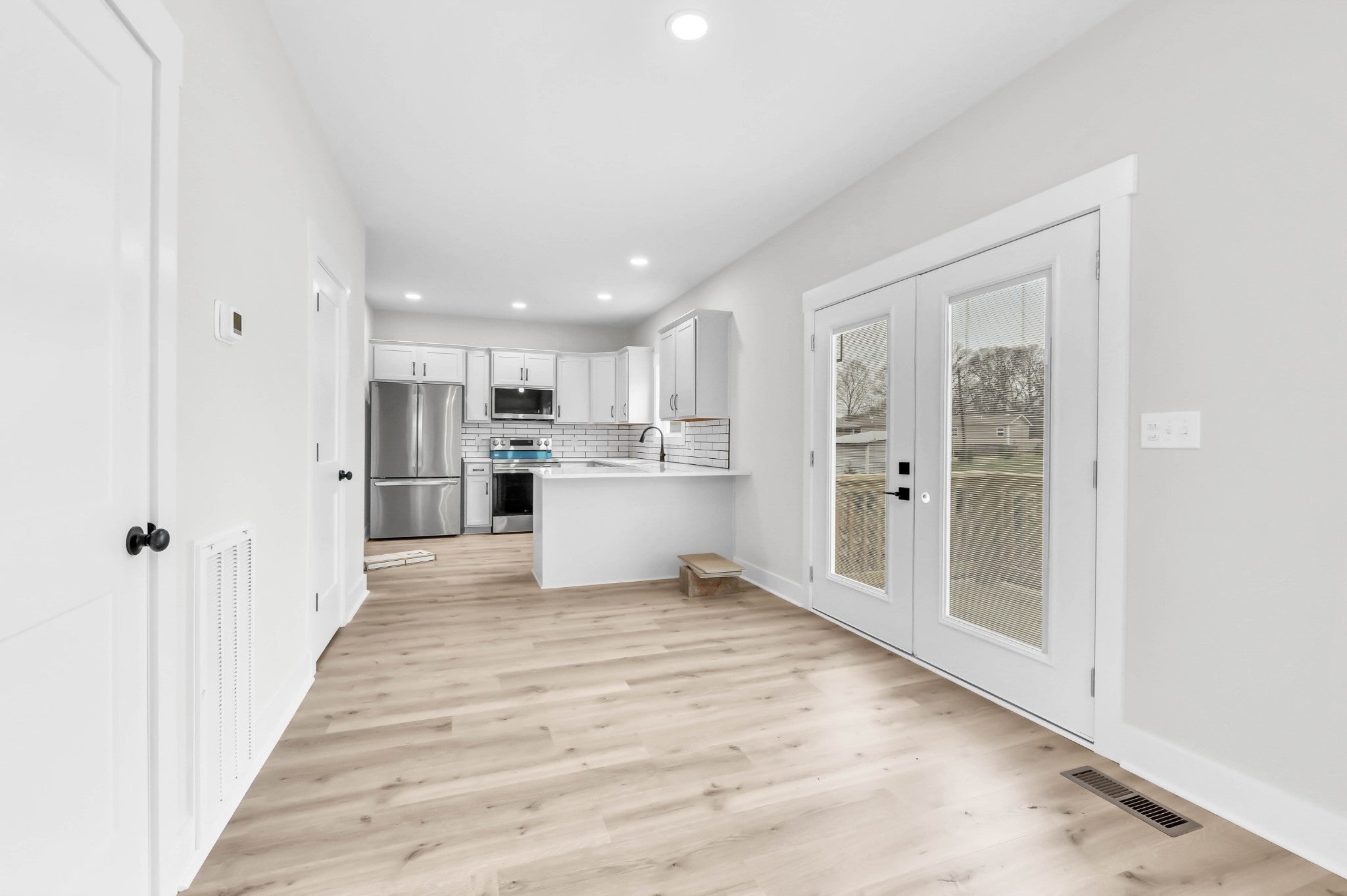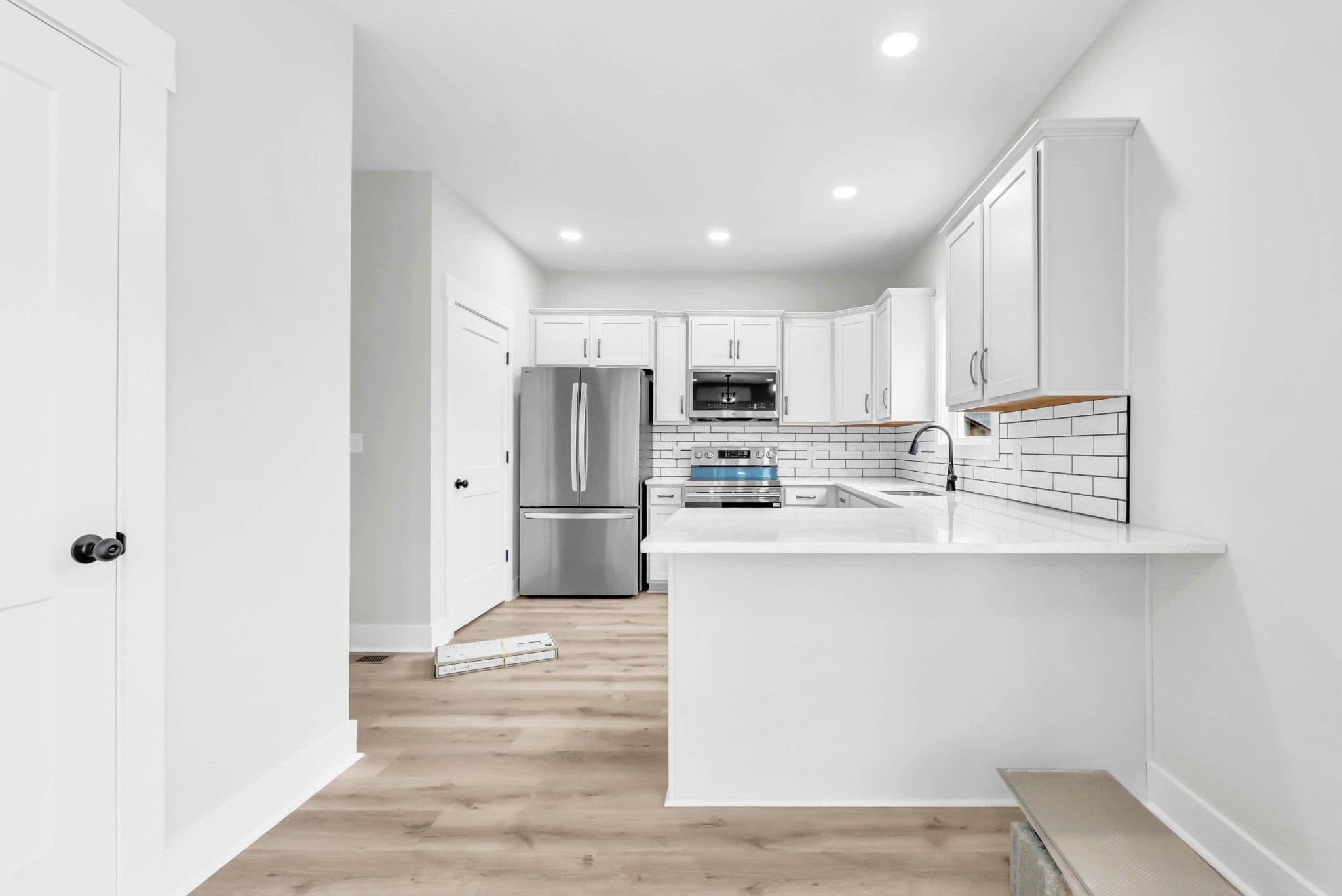 Tucked away on a quiet cul-de-sac, this inviting two-story home offers a thoughtfully designed layout ideal for everyday living and entertaining. The open-concept main level is enhanced by durable LVP flooring throughout, creating a seamless flow between the spacious living area and the adjacent dining room—perfect for gatherings both large and small. The L-shaped kitchen is a standout feature, offering an abundance of cabinetry, classic white subway tile backsplash, and generous counter space to support both casual meals and meal prep. A large pantry provides ample storage, while a convenient half bath completes the main level. Upstairs, retreat to the private primary suite featuring elegant tray ceilings, a walk-in closet, and a well-appointed en suite bathroom with a tub/shower combination accented by a tile surround. Two additional bedrooms offer comfortable accommodations for family, guests, or a home office, and are serviced by a centrally located hall bath. With its functional floor plan, stylish finishes, and desirable cul-de-sac location, this home presents an excellent opportunity for buyers seeking comfort, efficiency, and timeless appeal.