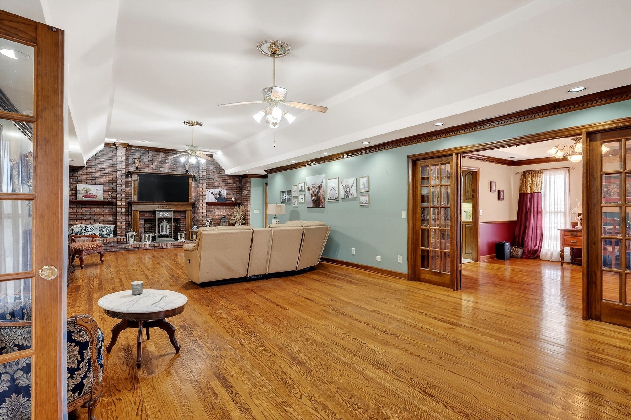 MOTIVATED SELLER! This brick home offers a spacious and functional layout with quality finishes throughout, including real hardwood floors, tile flooring, and beautiful wood cabinetry and trim. A large entryway opens into the main living areas, creating a welcoming first impression and an easy flow throughout the home. The main floor includes three bedrooms, two full bathrooms and one half bathroom. This level features the primary bedroom with an en suite bathroom, additional bedrooms, and a comfortable living area highlighted by real hardwood flooring and a brick fireplace wall. The kitchen offers custom wood cabinetry, tile flooring, ample counter space, and bar seating, providing both everyday functionality and space for entertaining. The upper level includes two bedrooms and two full bathrooms, offering additional private living space that works well for guests, family members, or flexible use. The basement offers both finished and unfinished space. There is a finished apartment in the basement with a partially finished living area, which includes a bedroom, full bathroom, and kitchen. The remaining basement area is unfinished, with framed walls already in place, providing excellent potential for future expansion, storage, or additional living areas. The basement also includes two additional full bathrooms that are partially finished. Overall, the home offers a total of six bedrooms, five full bathrooms, and one half bathroom and two unfinished bathrooms in the basement.. A floor plan is included to outline room layout and overall flow of the home.