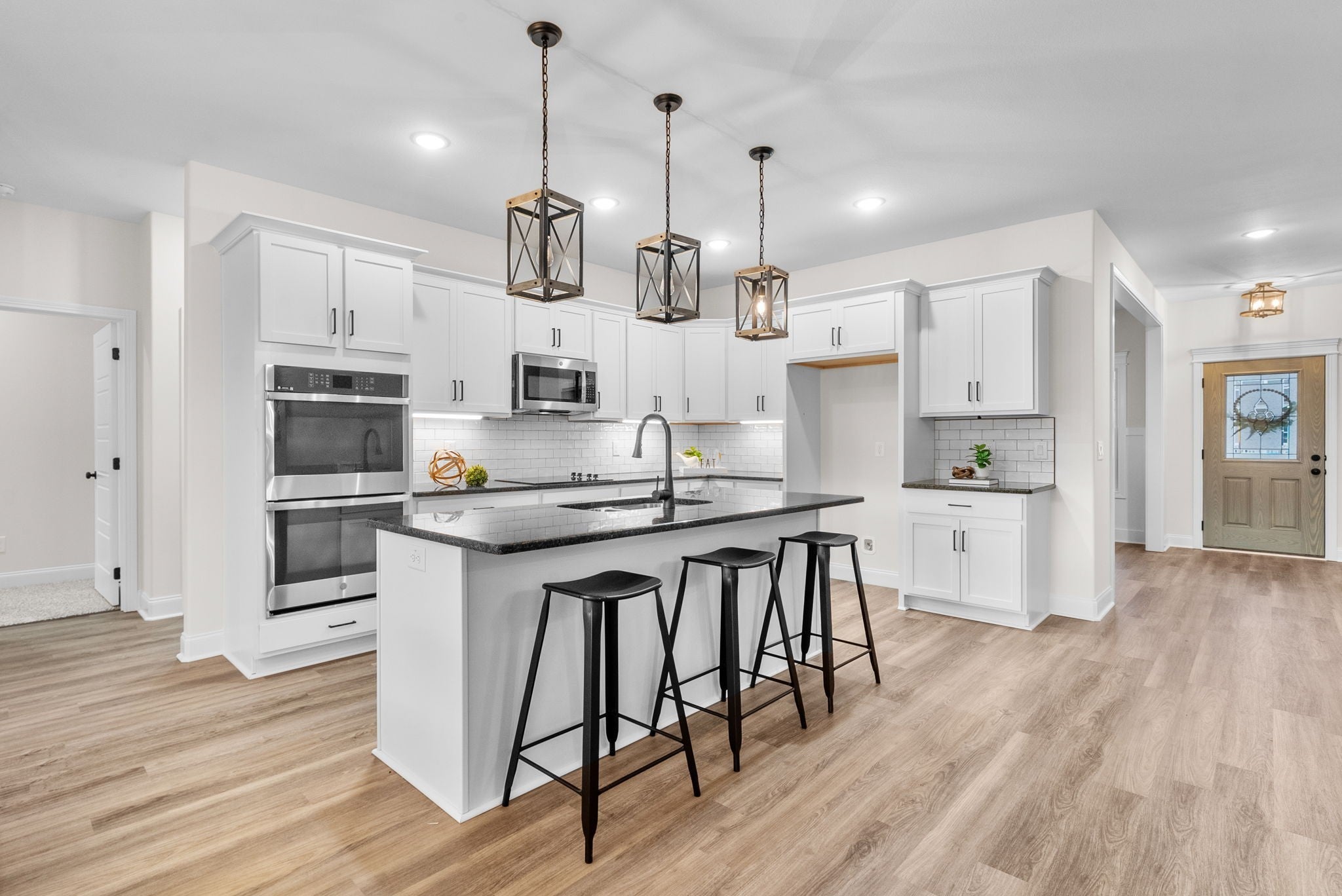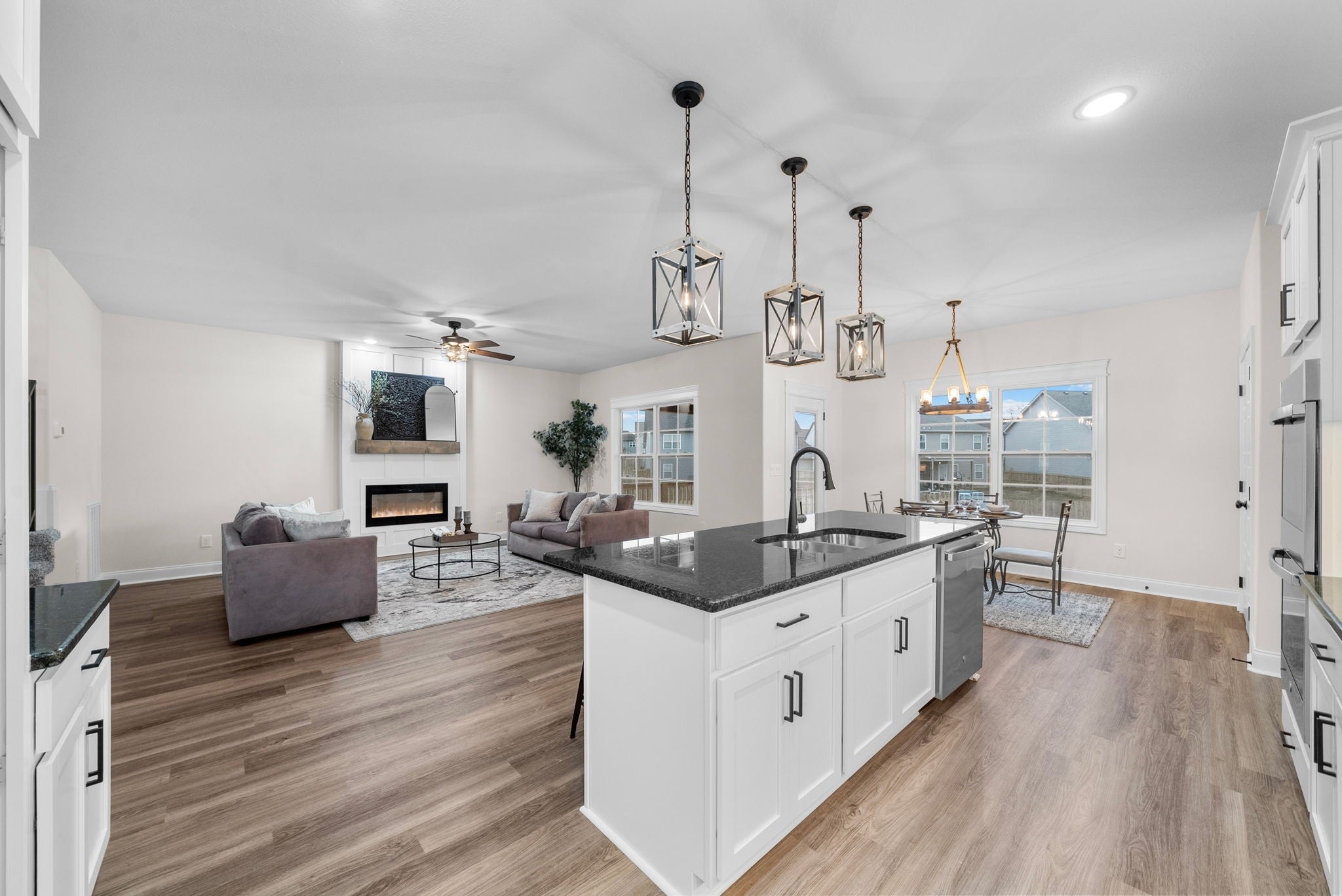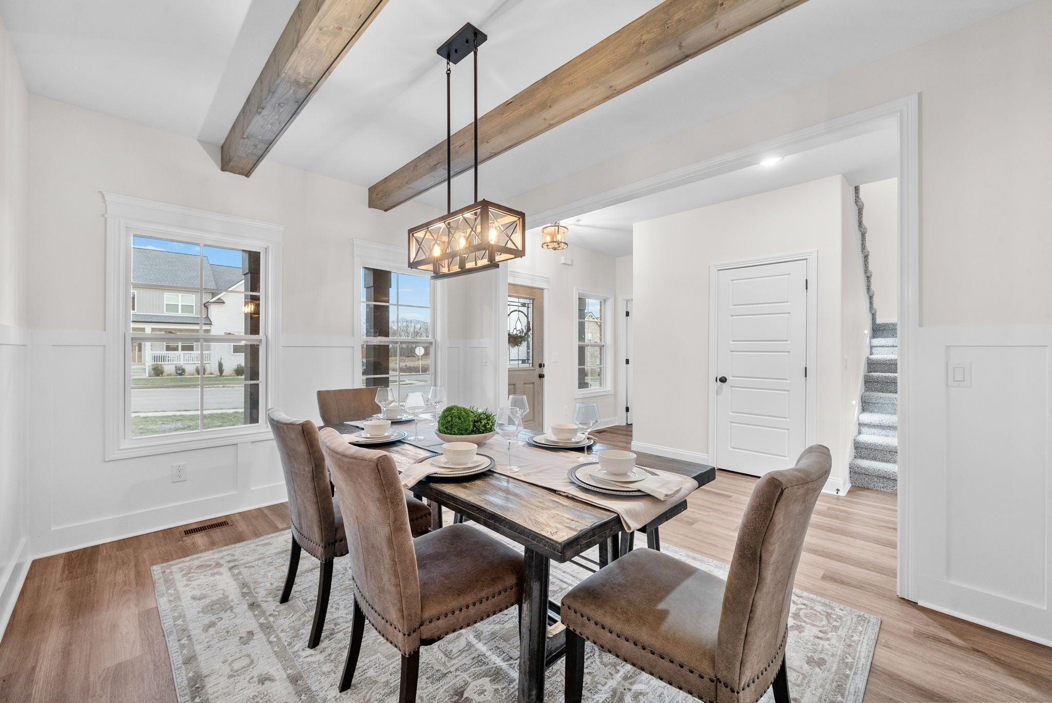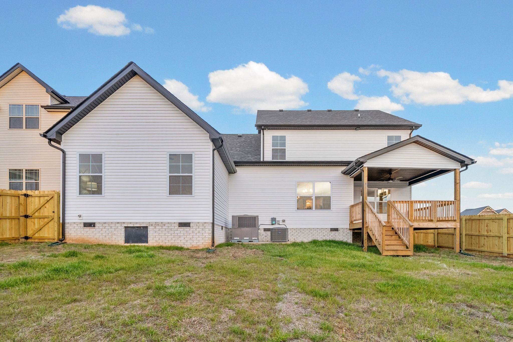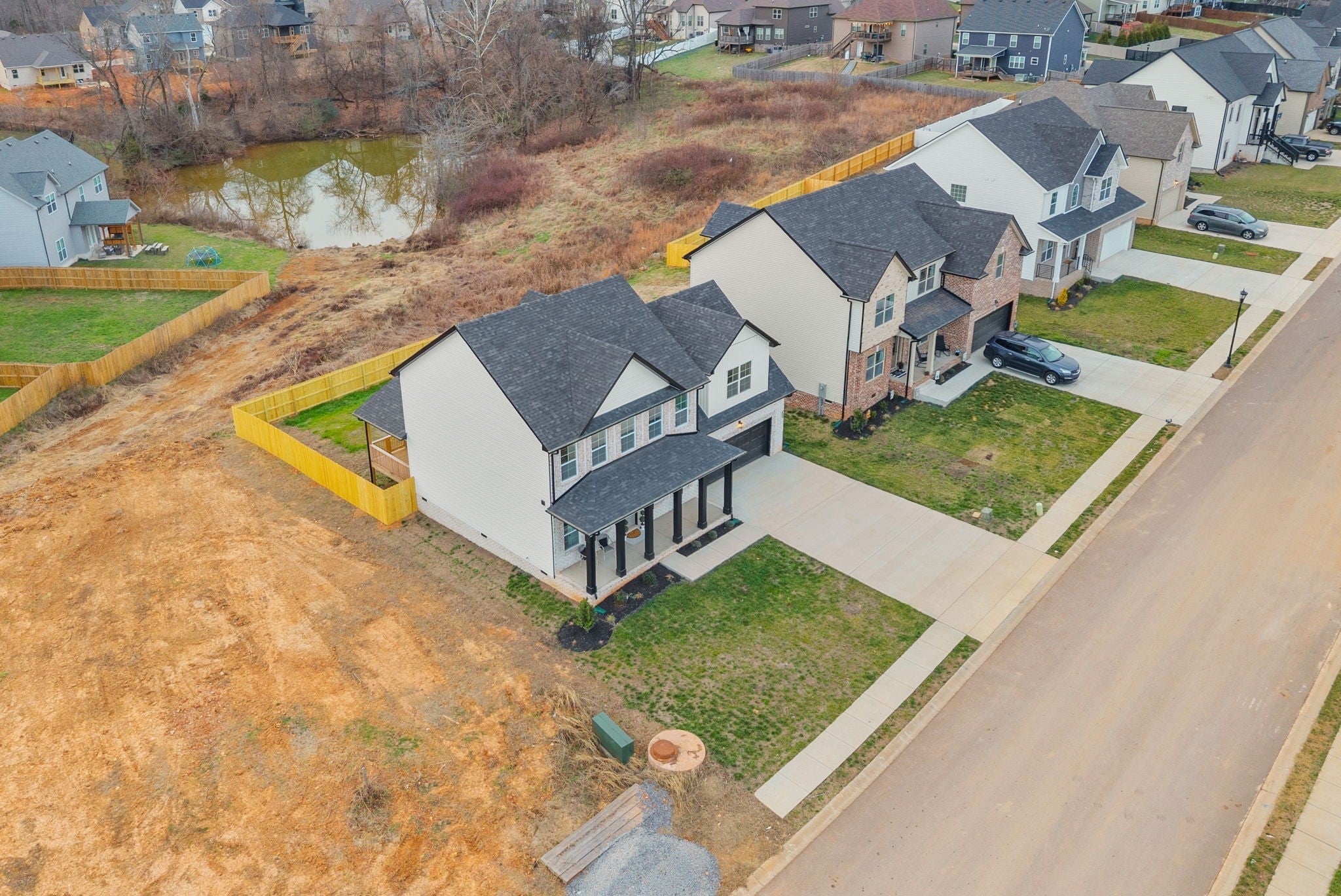 Brand new construction without the wait! This stunning Essington floor plan by Darnell Construction offers the space you need with the high-end finishes you want- AND a privacy fence is already installed! The spacious main-level, primary suite features two large walk-in closets with custom built-in shelving, an accent wall and a spa-like bathroom with lighted mirrors, large bathtub and tile shower. The laundry room is conveniently located next to the primary bedroom. The kitchen is made for cooking and entertaining with a large island, double ovens, granite countertops, soft-close cabinetry, and under-cabinet lighting—plus a breakfast nook for casual meals. The living room feels spacious with high ceilings and the electric fireplace adds a modern but cozy touch. A half bath off the living space is perfect for guests. The separate dining room brings additional wow factor with ceiling beams and wainscoting. This space adds flexibility and could also serve as a home office or school room. Upstairs you’ll find three additional bedrooms, a full bath, and a large bonus room offering endless options for work, play, or movie nights. Wake up and enjoy coffee on the covered back deck overlooking the fenced backyard. Thoughtfully designed with timeless high-end finishes throughout—this home is ready for you to move in and enjoy!