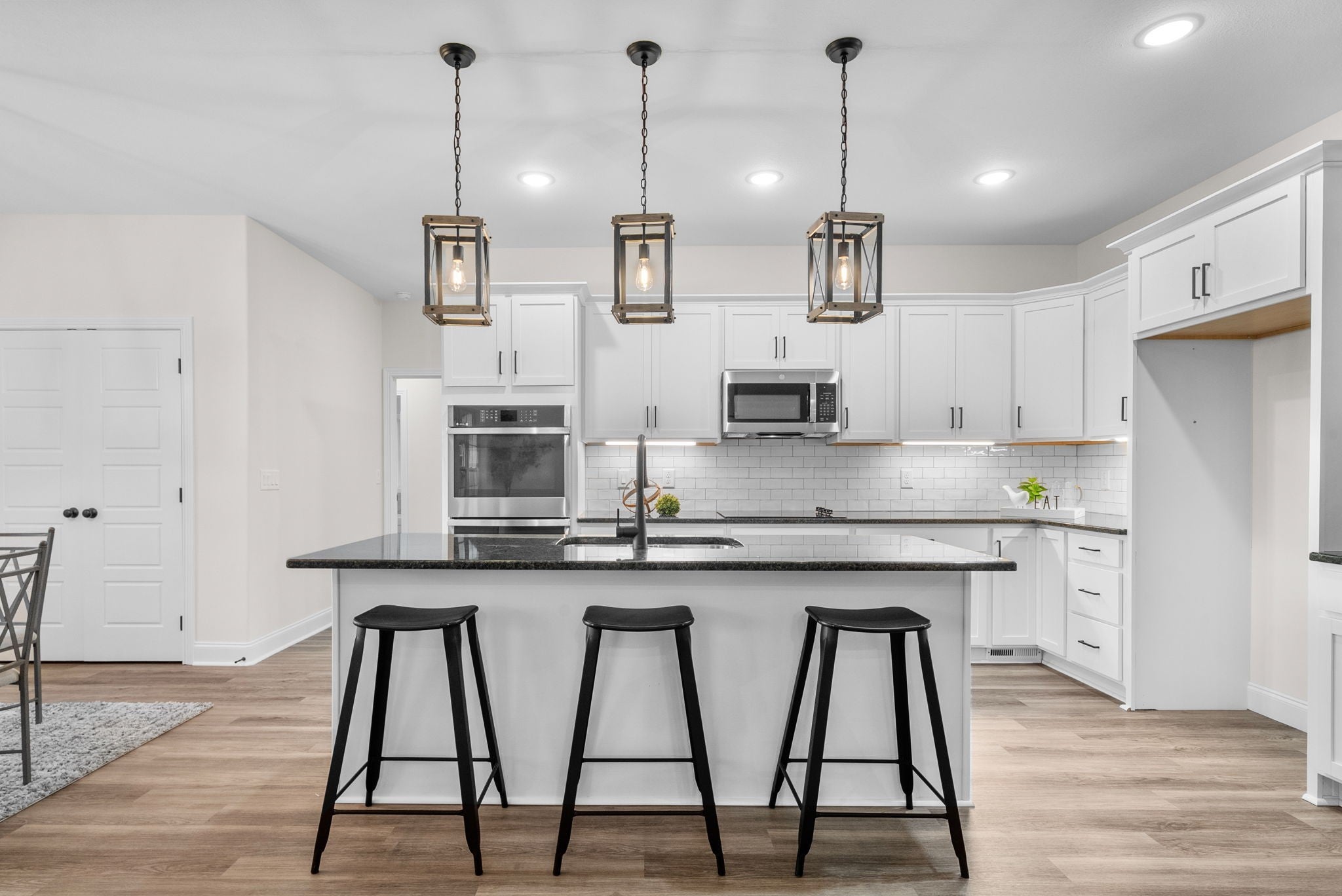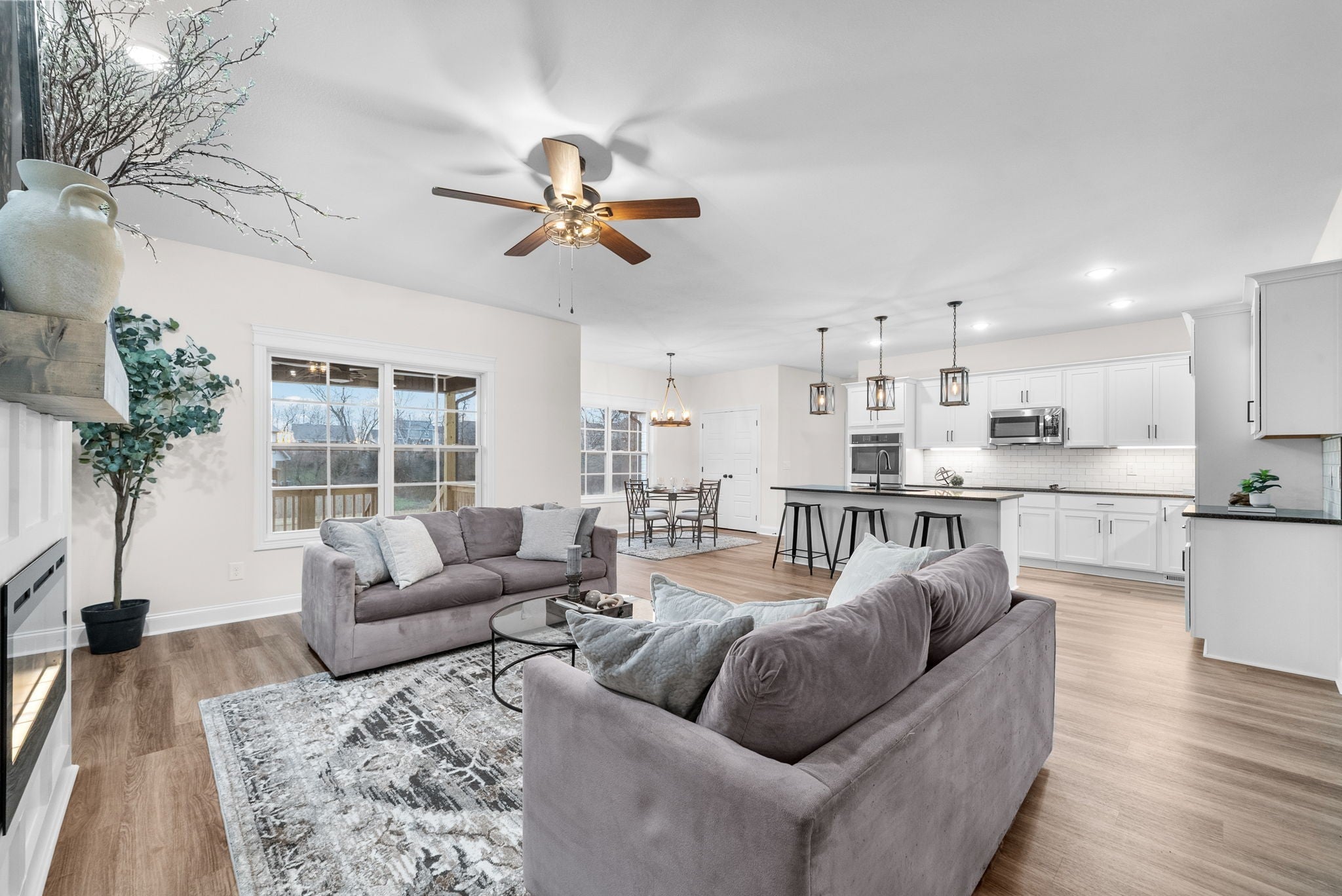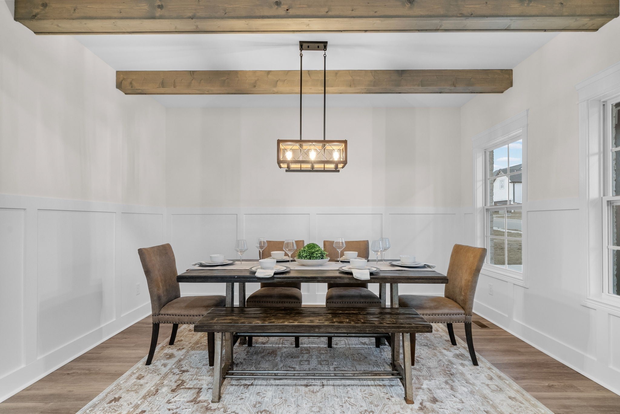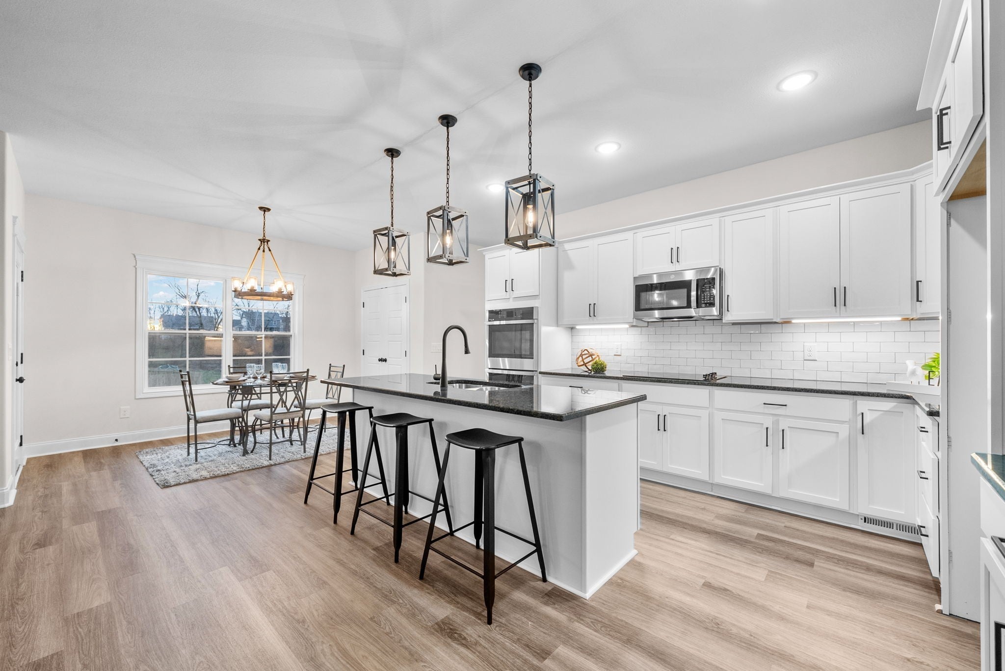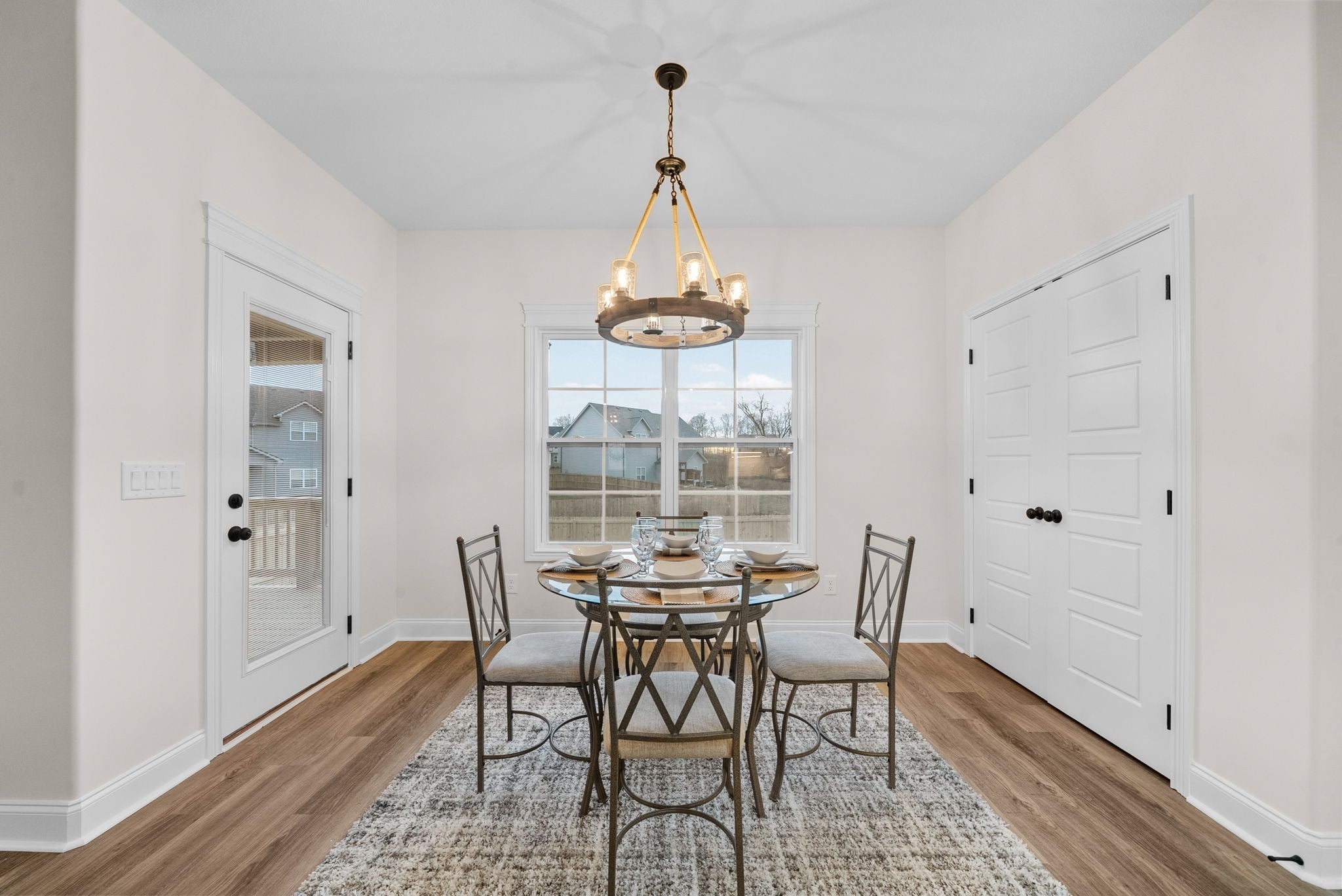 Brand new construction without the wait! This stunning Essington floor plan by Darnell Construction offers the space you need with the high-end finishes you want- AND a privacy fence is already installed! The spacious main-level, primary suite features two large walk-in closets with custom built-in shelving, an accent wall and a spa-like bathroom with lighted mirrors, large bathtub and tile shower. The laundry room is conveniently located next to the primary bedroom. The kitchen is made for cooking and entertaining with a large island, double ovens, granite countertops, soft-close cabinetry, and under-cabinet lighting—plus a breakfast nook for casual meals. The living room feels spacious with high ceilings and the electric fireplace adds a modern but cozy touch. A half bath off the living space is perfect for guests. The separate dining room brings additional wow factor with ceiling beams and wainscoting. This space adds flexibility and could also serve as a home office or school room. Upstairs you’ll find three additional bedrooms, a full bath, and a large bonus room offering endless options for work, play, or movie nights. Wake up and enjoy coffee on the covered back deck overlooking the fenced backyard. Thoughtfully designed with timeless high-end finishes throughout—this home is ready for you to move in and enjoy!