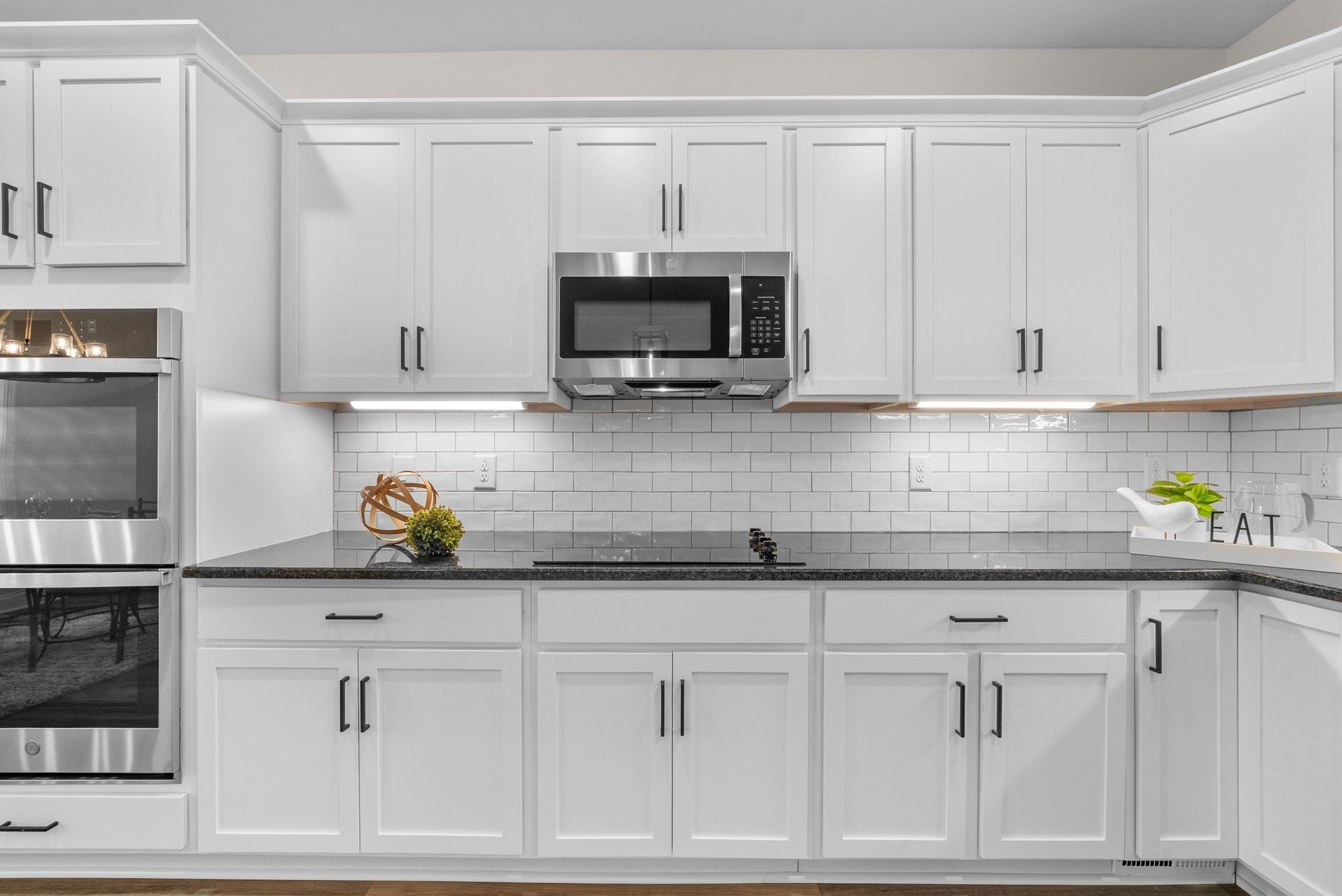 - Built-In Electric Oven, Double Oven, Cooktop, Electric Range, Dishwasher, Microwave, Stainless Steel Appliance(s)