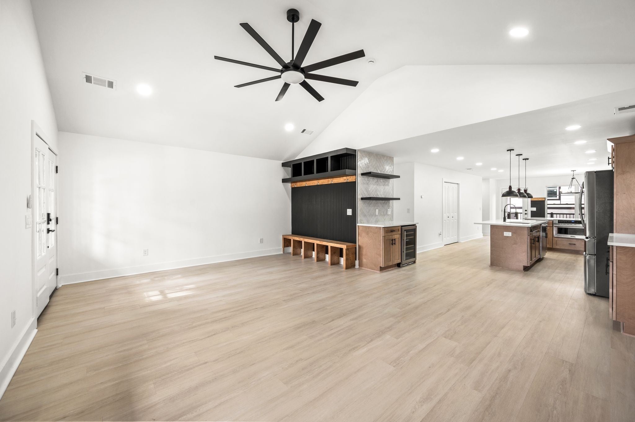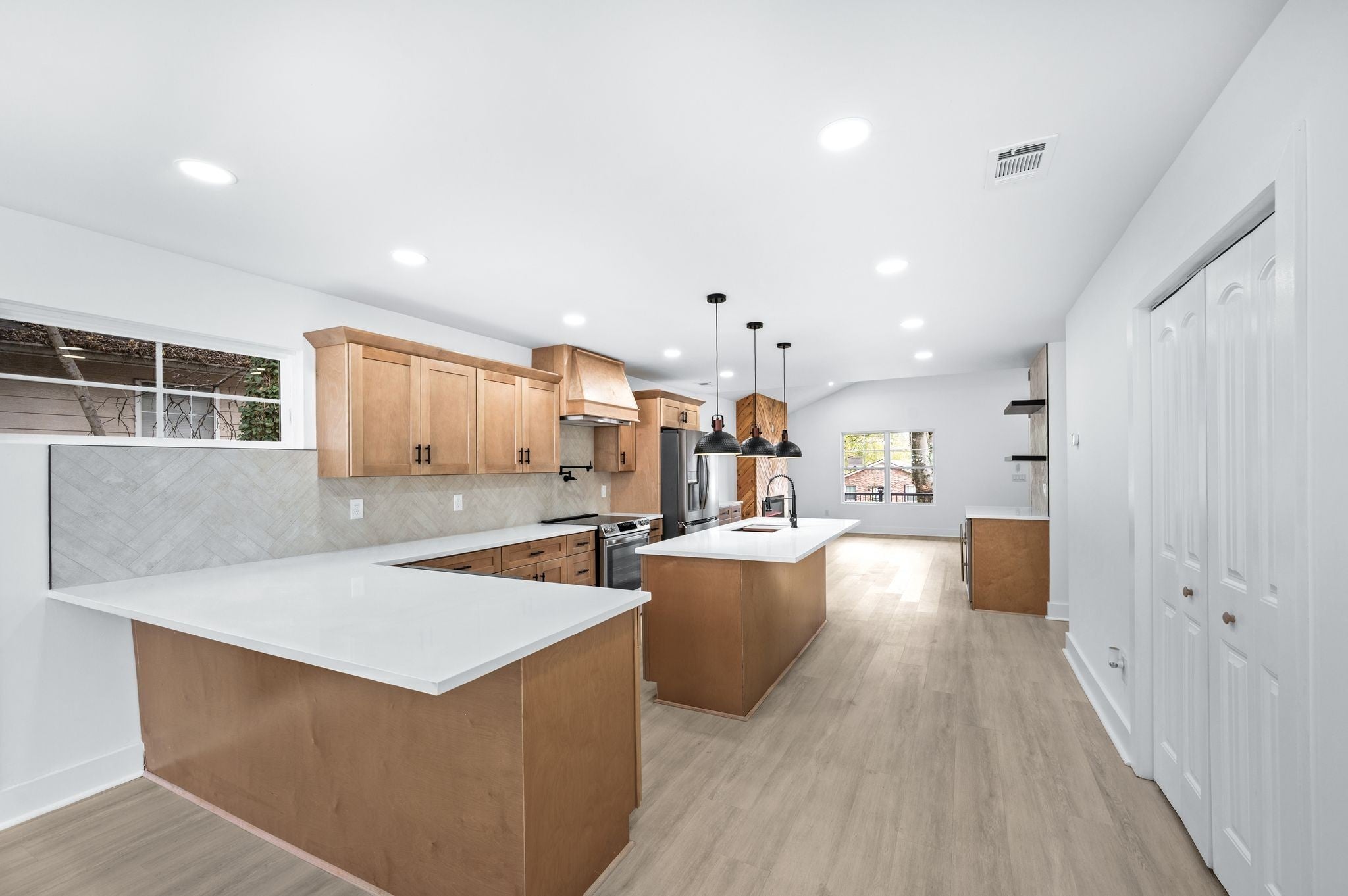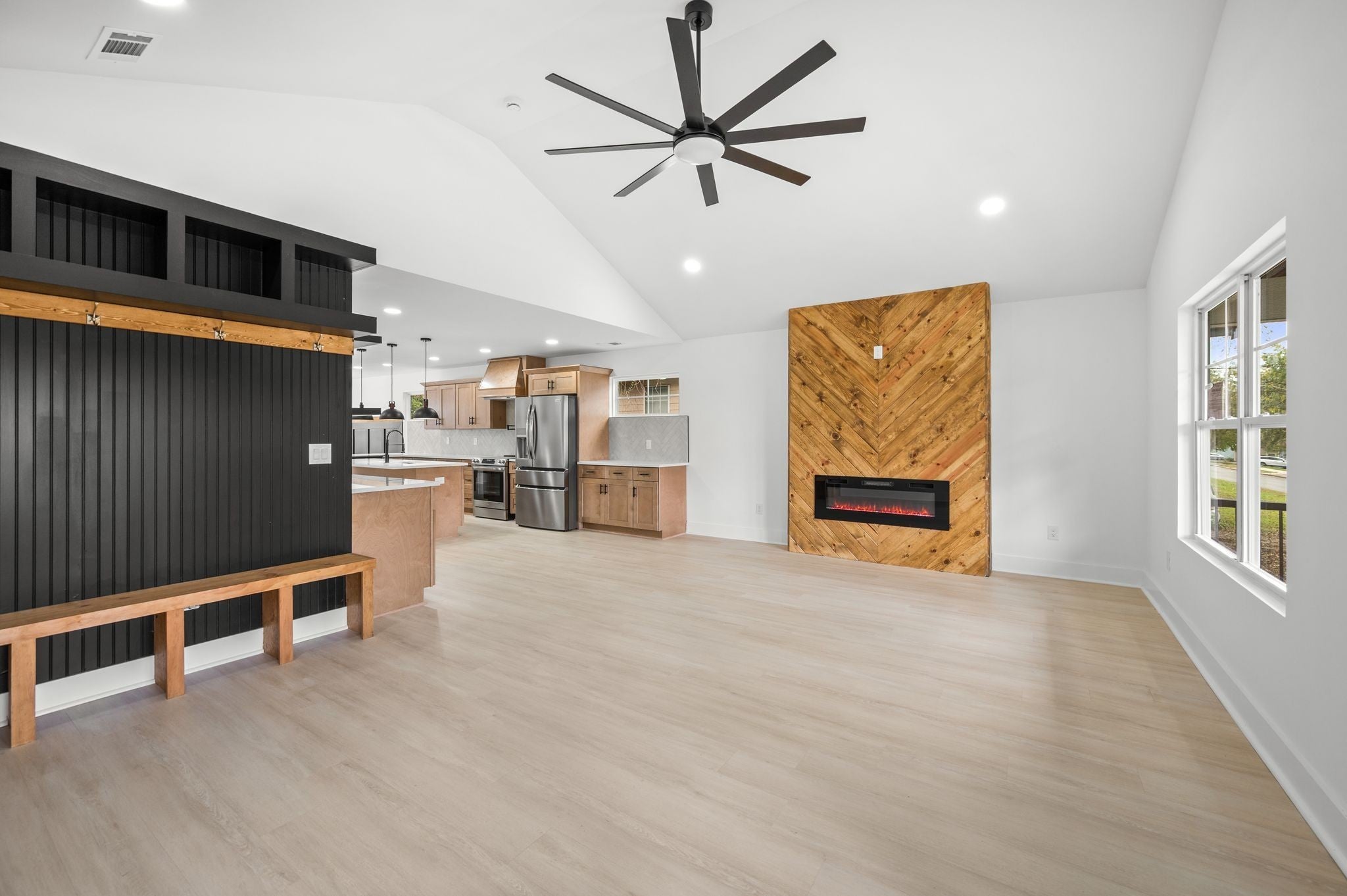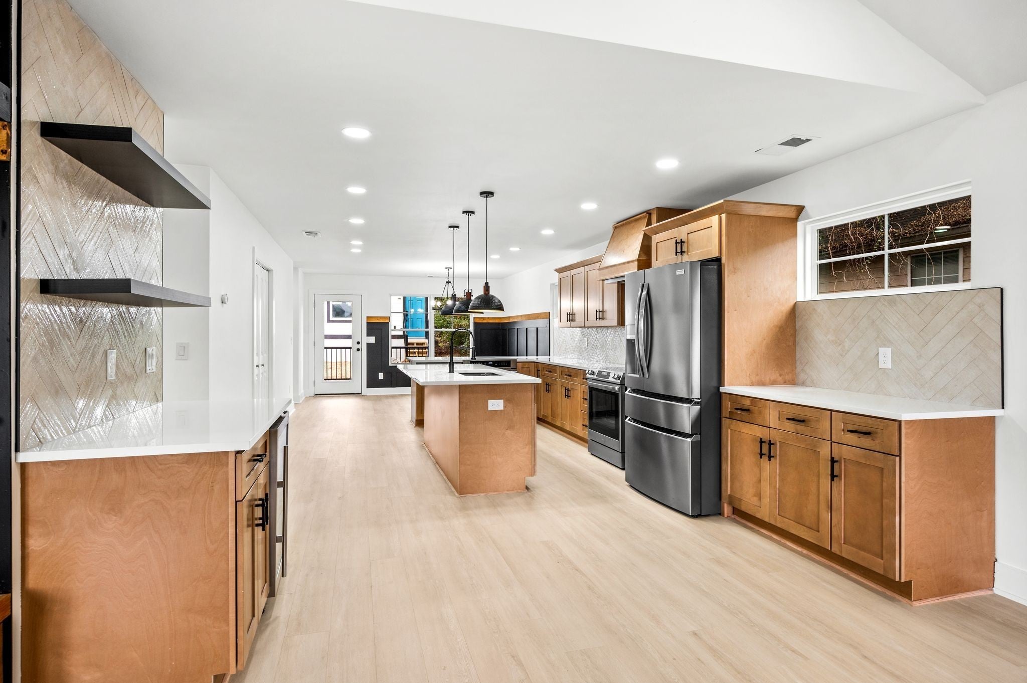 AMAZING Price & value! Urban Core, Single Level, Stylish, Built Ins, Work from home dream, home has private rear entry off alley into new 2 car garage. Location is outstanding, Experience the local artisan fare within the Buchanan Arts District, enjoy restaurants such as Slim and Husky's, Tio Fun, + Bag Lady's Fry Joint within walking distance! This home greets you with large french door entry leading into this unique space, w/ your personal drop zone with Bench and Built In Storage to catch your Keys, Jacket, Boots + Hat... Sit by the warm fire framed out beautifully in the chevron style built in unit. This kitchen means business, with a coffee station, large island w/ seating, plus additional seating at peninsula, gorgeous cabinetry, custom hood vent, and gorgeous quartz counters... this space offers room to prepare meals for gatherings or enjoy a quiet night in. Retire for the evening into a spacious owner's suite with walk in closet, private bath featuring custom tile, double vanity, glass shower, and more...