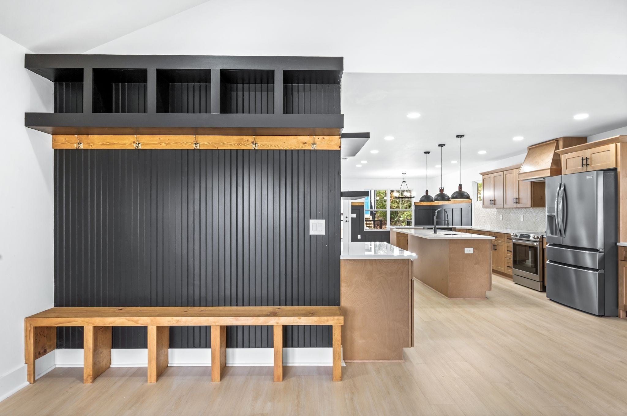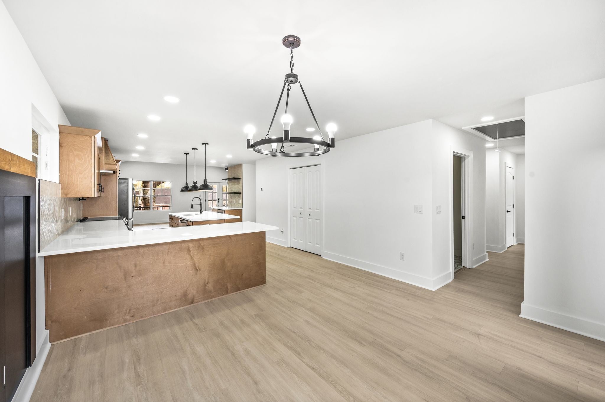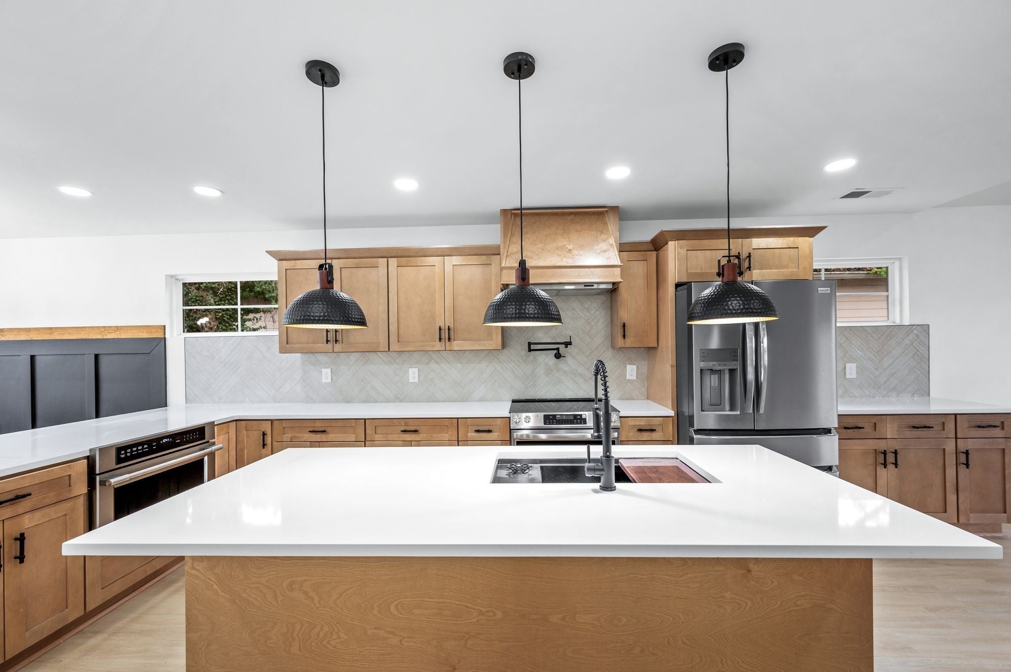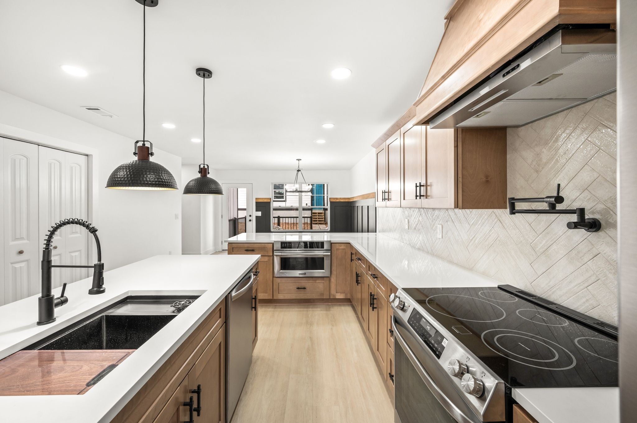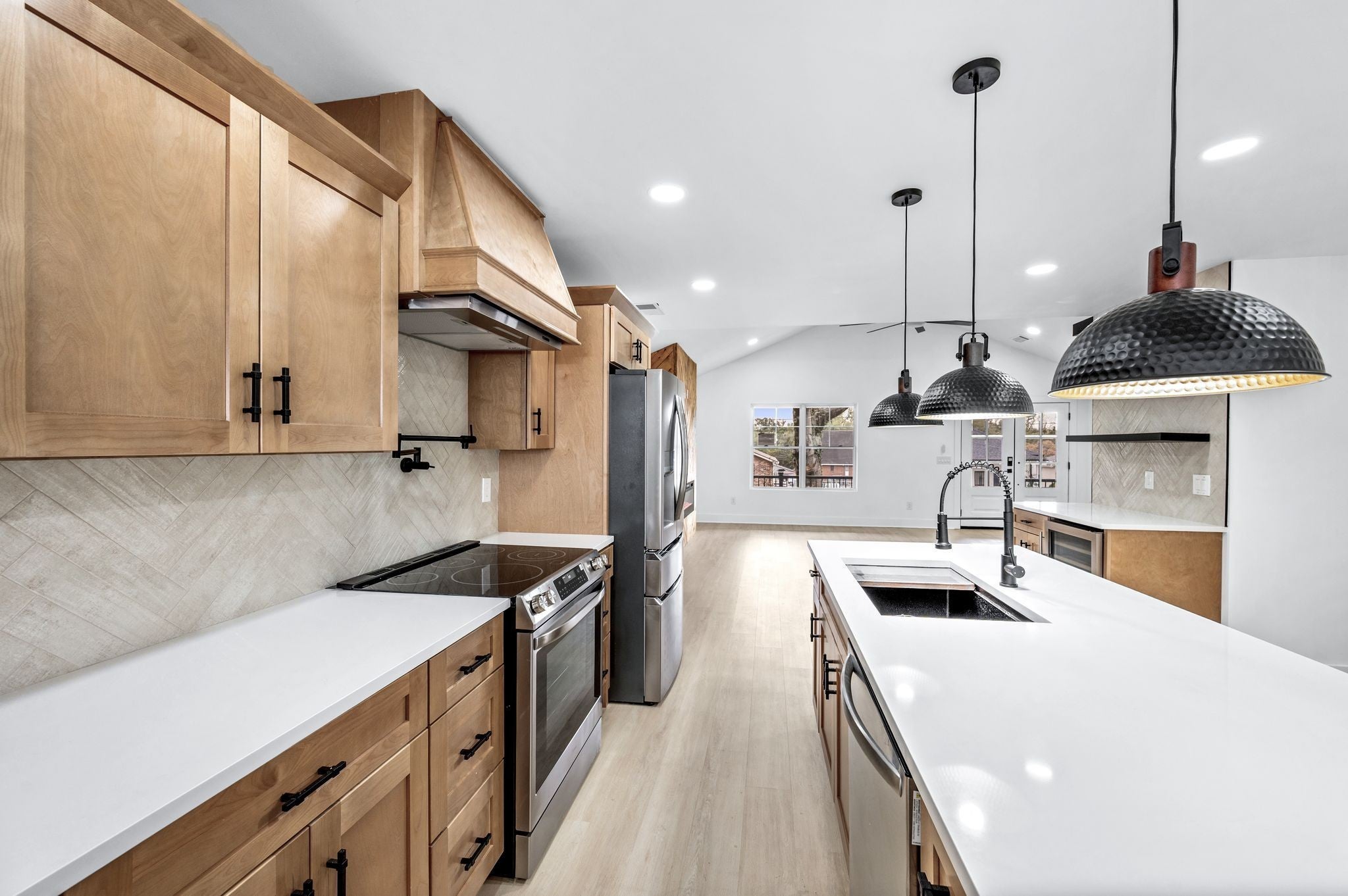 AMAZING Price & value! Urban Core, Single Level, Stylish, Built Ins, Work from home dream, home has private rear entry off alley into new 2 car garage. Location is outstanding, Experience the local artisan fare within the Buchanan Arts District, enjoy restaurants such as Slim and Husky's, Tio Fun, + Bag Lady's Fry Joint within walking distance! This home greets you with large french door entry leading into this unique space, w/ your personal drop zone with Bench and Built In Storage to catch your Keys, Jacket, Boots + Hat... Sit by the warm fire framed out beautifully in the chevron style built in unit. This kitchen means business, with a coffee station, large island w/ seating, plus additional seating at peninsula, gorgeous cabinetry, custom hood vent, and gorgeous quartz counters... this space offers room to prepare meals for gatherings or enjoy a quiet night in. Retire for the evening into a spacious owner's suite with walk in closet, private bath featuring custom tile, double vanity, glass shower, and more...