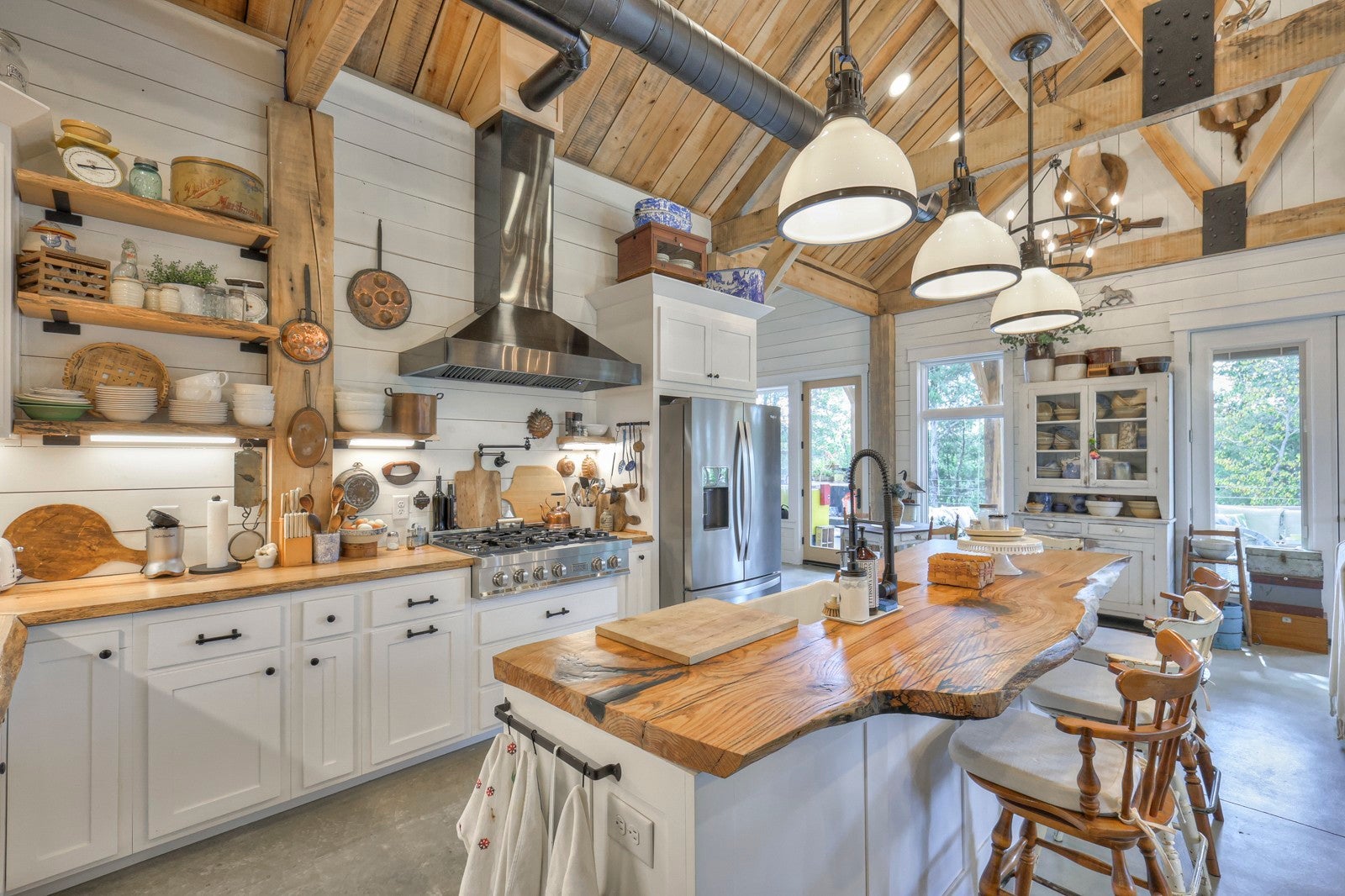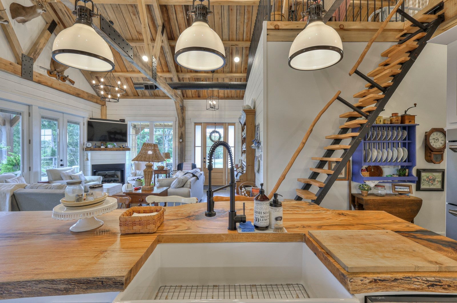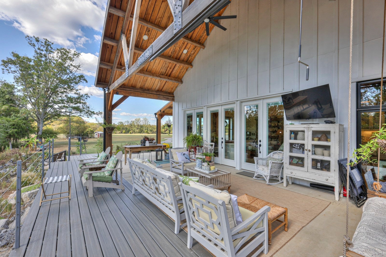 Dream Timber Frame Estate On 26 Acres with Amazing Creek Views! This designer timber frame estate blends privacy and rustic elegance with modern comforts, boasting 26 creek-front acres with stunning Sugar Creek views, and just minutes from town. 'Inside, discover open concept living with 10 ft shiplap, exposed beams,multi-zone heated concrete floors, and a gas fireplace, flowing to huge, covered porches. The chef`s kitchen features Z-Line appliances, live-edge oak counter tops, custom cabinets and a butler`s pantry. A main-floor primary suite offers beautiful farms views, exposed beams, and walk-in shower, while upstairs, a loft bunk room provides cozy retreat and storage. A large first floor second bedroom suite doubles as a family room. The property is a dream with 5-bay 40x60 barn, a 34x14 shop/storage with A/C, greenhouse, RV hookups, a finished studio/office additional building sites and income potential. This home is fully spray foam insulated with multi systems for ultimate comfort and efficiency, standing seam metal roof, and beautiful wood doors This Tennessee gem is an entertainer`s paradise and a tranquil escape, all within 60 miles of Nashville!