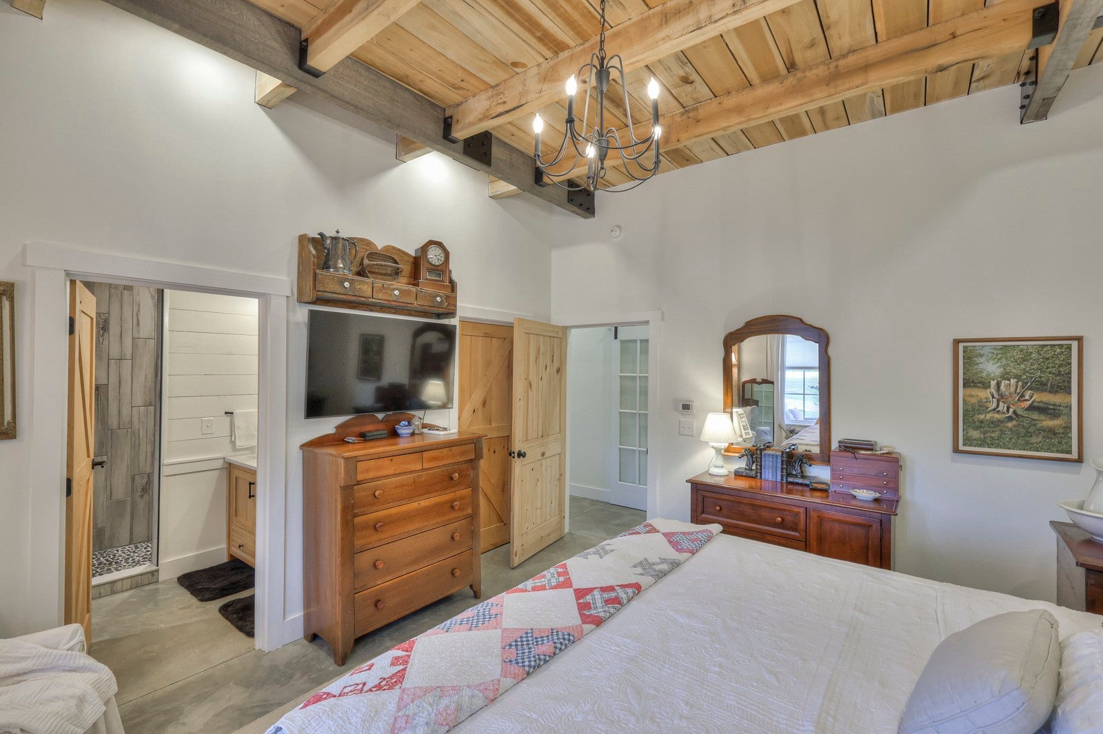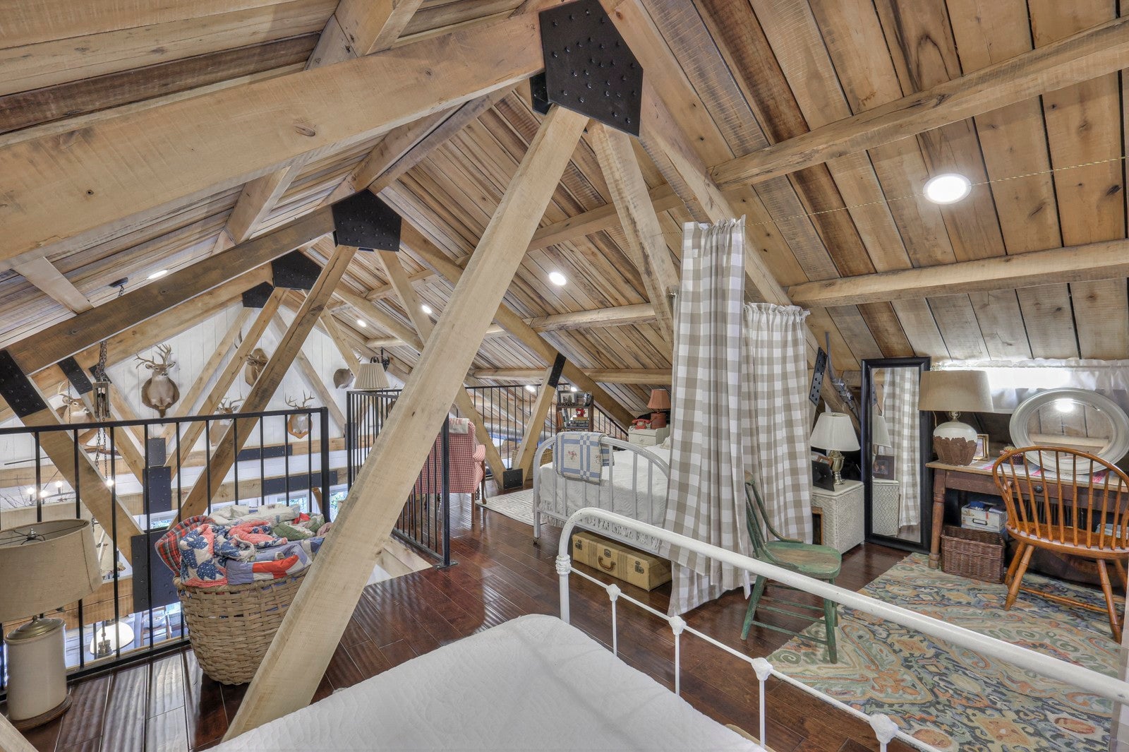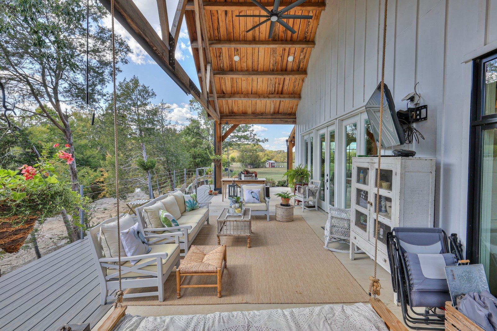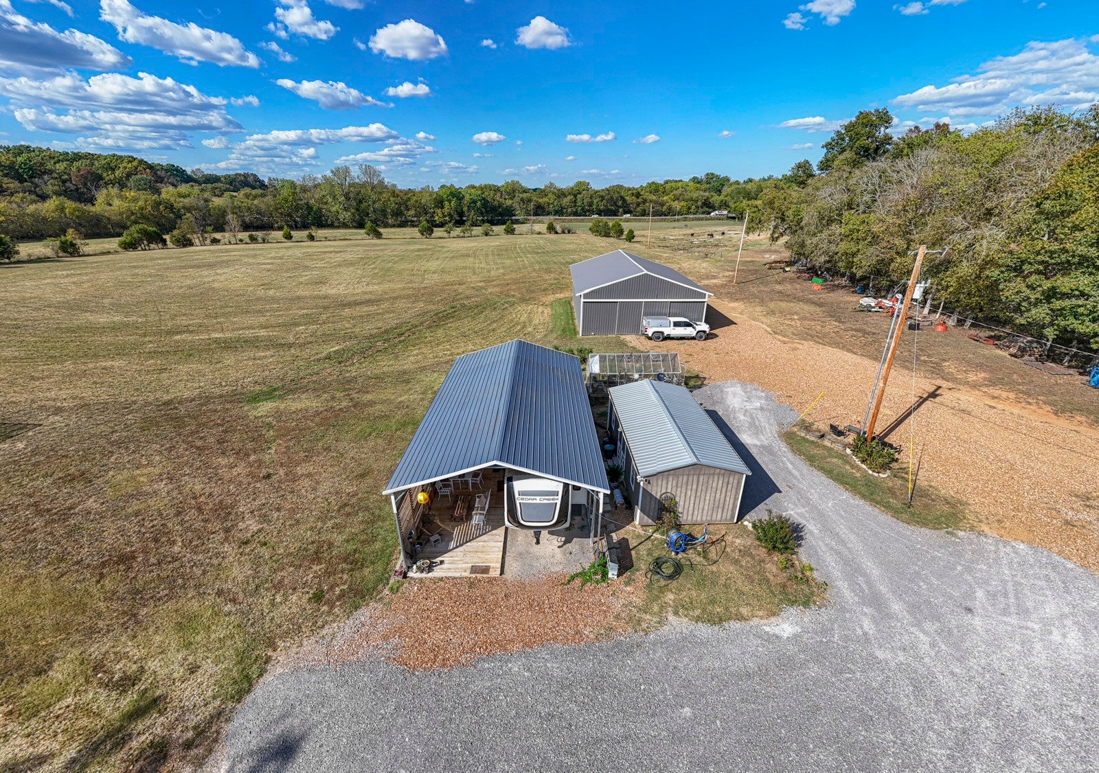 Dream Timber Frame Estate On 26 Acres with Amazing Creek Views! This designer timber frame estate blends privacy and rustic elegance with modern comforts, boasting 26 creek-front acres with stunning Sugar Creek views, and just minutes from town. 'Inside, discover open concept living with 10 ft shiplap, exposed beams,multi-zone heated concrete floors, and a gas fireplace, flowing to huge, covered porches. The chef`s kitchen features Z-Line appliances, live-edge oak counter tops, custom cabinets and a butler`s pantry. A main-floor primary suite offers beautiful farms views, exposed beams, and walk-in shower, while upstairs, a loft bunk room provides cozy retreat and storage. A large first floor second bedroom suite doubles as a family room. The property is a dream with 5-bay 40x60 barn, a 34x14 shop/storage with A/C, greenhouse, RV hookups, a finished studio/office additional building sites and income potential. This home is fully spray foam insulated with multi systems for ultimate comfort and efficiency, standing seam metal roof, and beautiful wood doors This Tennessee gem is an entertainer`s paradise and a tranquil escape, all within 60 miles of Nashville!