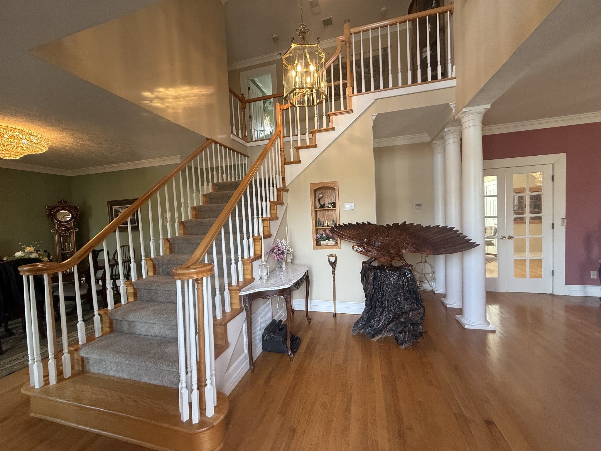 Exquisite Southern charm! Look no further. Discover this stunning, elegant Southern Estate. This 4,000+ sq ft home offers privacy and thoughtful upgrades, making it a perfect blend of space. This beautiful home evokes bygone days with its winding staircase, heavy moldings, soaking tubs, custom-made cabinets, bookcases, a wet bar crafted by local Mennonites, antique light fixtures, and luxury Italian marble finishes in the primary bathroom. The home includes two staircases for added convenience and accessibility, all details that showcase timeless elegance. The kitchen features custom cabinetry and granite countertops, including a working island, perfect for entertaining, with easy access to the dining room or family room. The family room features built-in cabinetry, a fully functional wet bar with counter space, and an intercom system with stereo, perfect for family gatherings. The exterior is maintenance-free, with a lifetime roof and siding warranty, 3-HVAC systems, a private well, an oversized garage, and a security camera system. The home sits on 10.62 acres and includes a fully stocked pond, a 3-stall barn with a hayloft, a shop with a wood-burning stove, and a zip line over the water. Set on a private, wooded, open-land lot with scenic views, this property offers an ideal setting for those seeking room to roam, a mini-farm lifestyle, or simply extra space to enjoy the open back porch or the upstairs balcony while watching wildlife. A rare opportunity to enjoy privacy, space, and convenience all in a very desirable West Tennessee neighborhood!