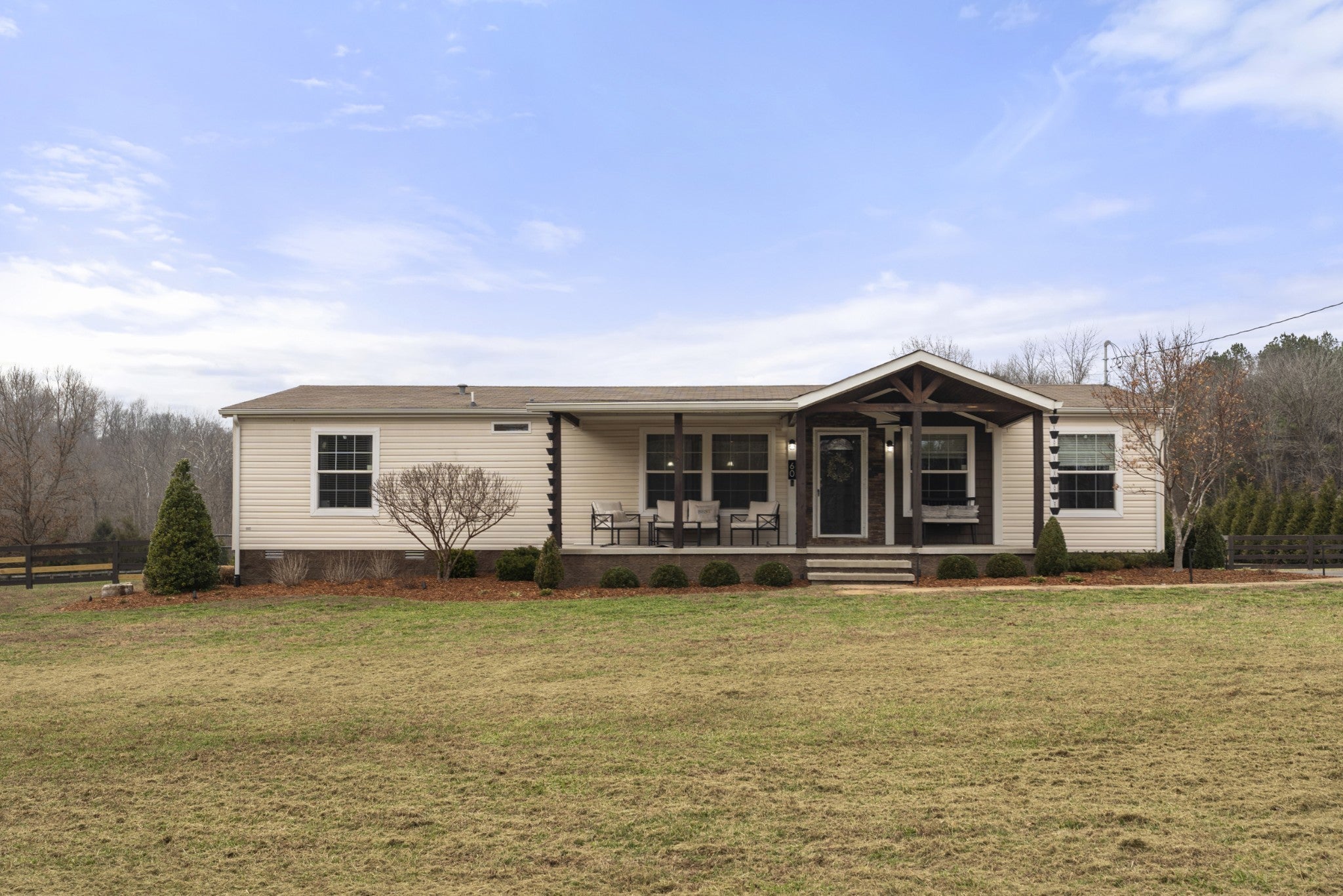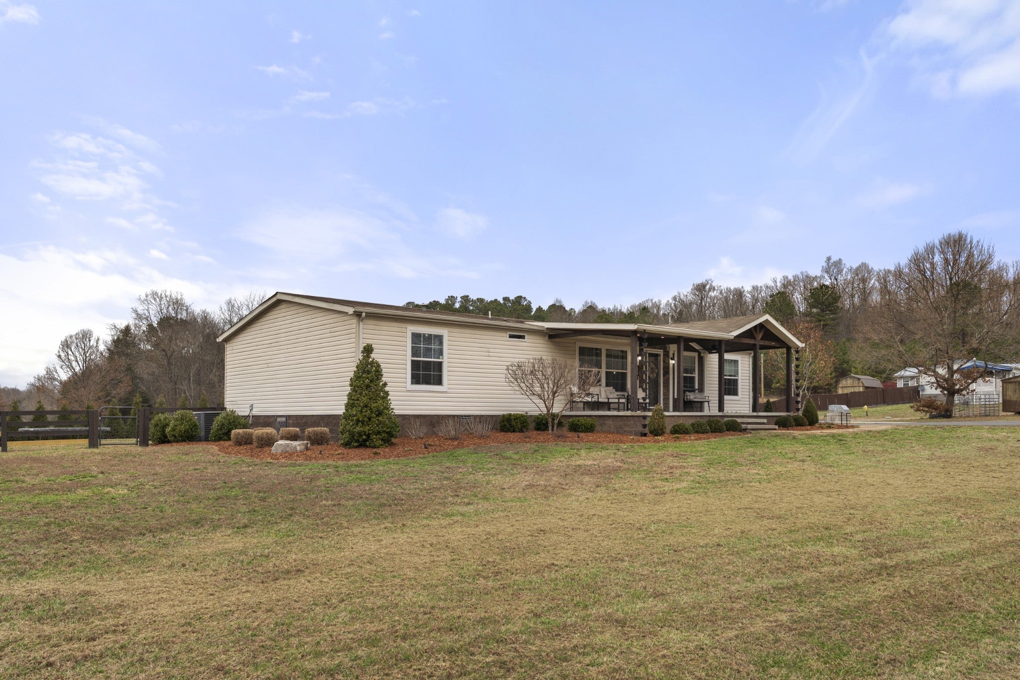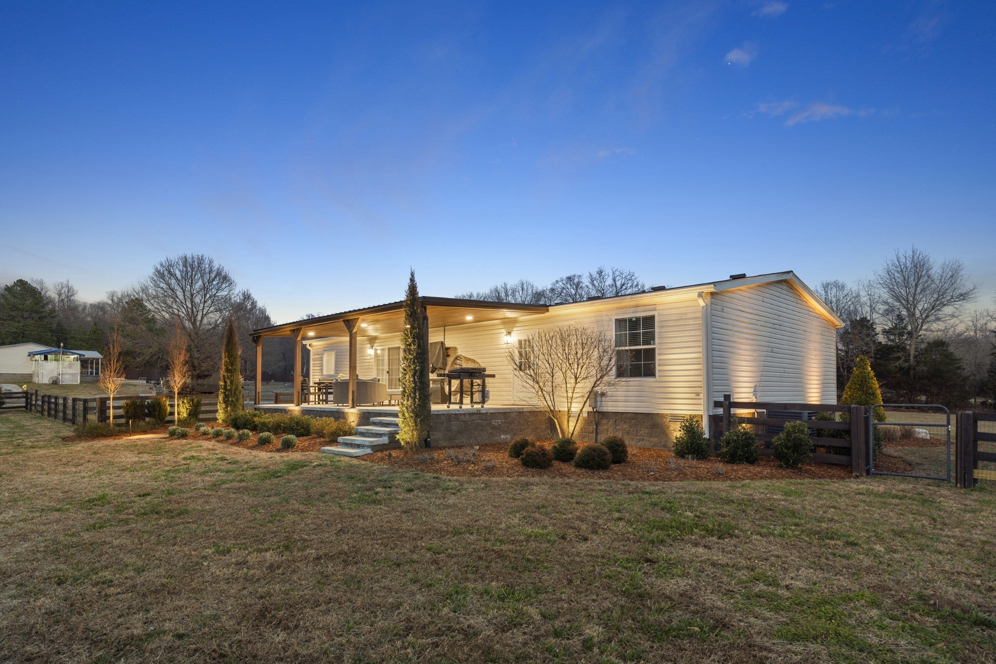 Welcome to peaceful country living. This well-maintained manufactured home sits on a permanent foundation and offers 1,800 square feet of comfortable living space on 5.09 partially fenced acres. Custom landscape lighting highlights the property and enhances curb appeal day and night. Inside, you’ll find an open-concept kitchen and living area that’s perfect for everyday living and entertaining. The home features three bedrooms and two full baths, along with a large laundry room that adds extra storage and functionality. Spacious bedrooms with large walk in closets. Enjoy relaxing on the covered back porch or if preferred, the covered front porch. High speed internet already at the home. This property offers space and comfort without sacrificing location.