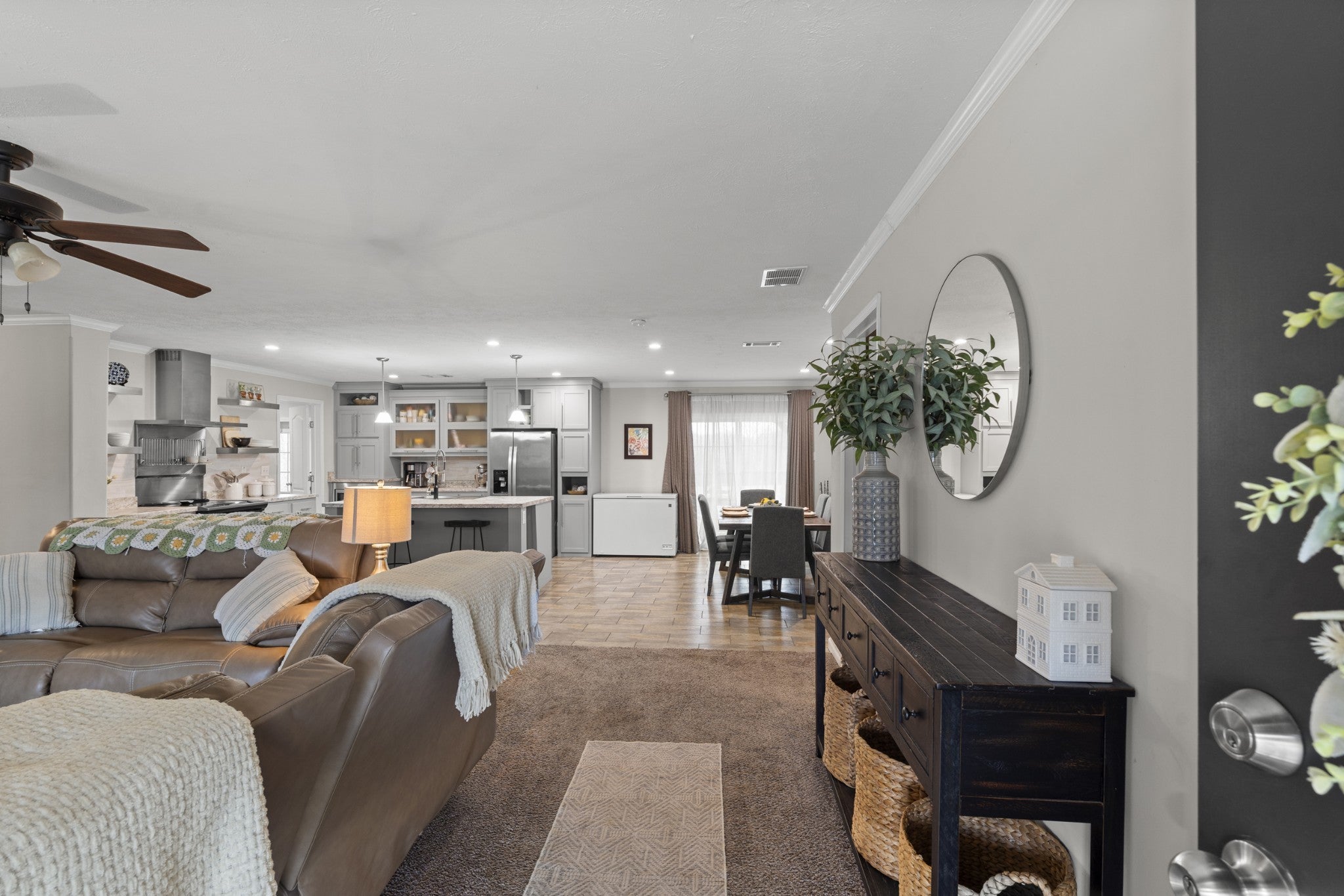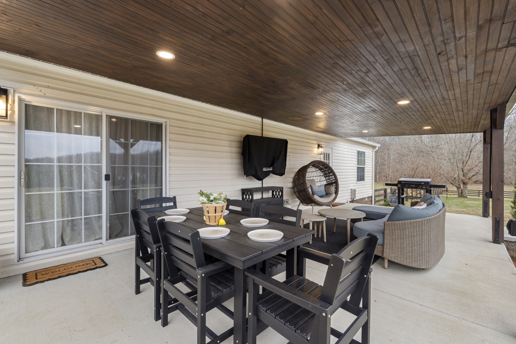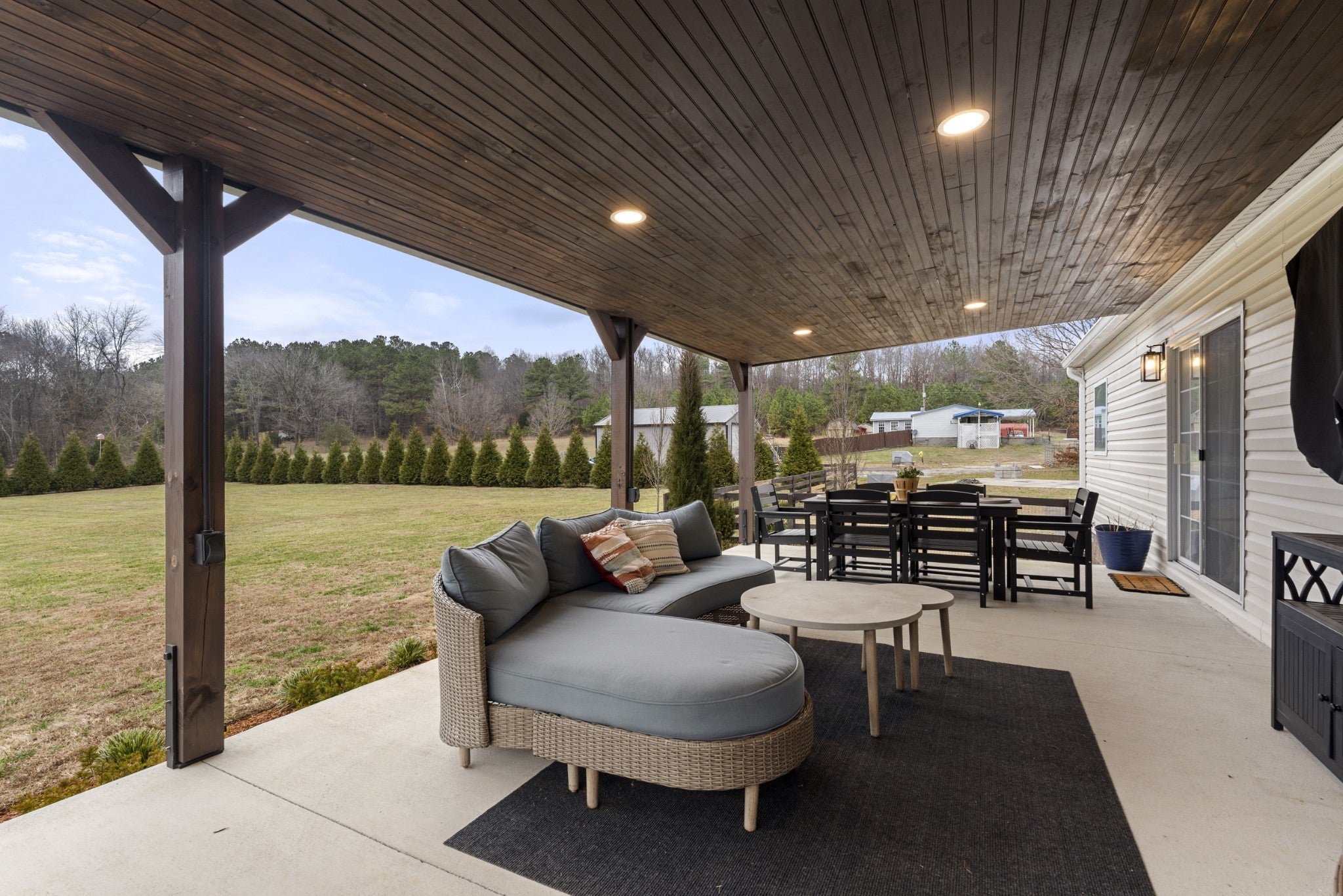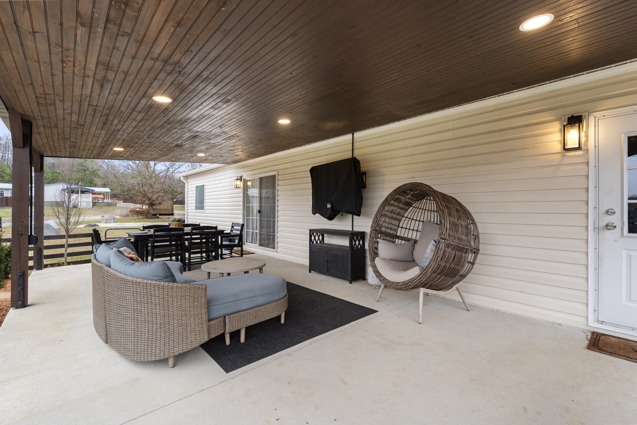 Welcome to peaceful country living. This well-maintained manufactured home sits on a permanent foundation and offers 1,800 square feet of comfortable living space on 5.09 partially fenced acres. Custom landscape lighting highlights the property and enhances curb appeal day and night. Inside, you’ll find an open-concept kitchen and living area that’s perfect for everyday living and entertaining. The home features three bedrooms and two full baths, along with a large laundry room that adds extra storage and functionality. Spacious bedrooms with large walk in closets. Enjoy relaxing on the covered back porch or if preferred, the covered front porch. High speed internet already at the home. This property offers space and comfort without sacrificing location.