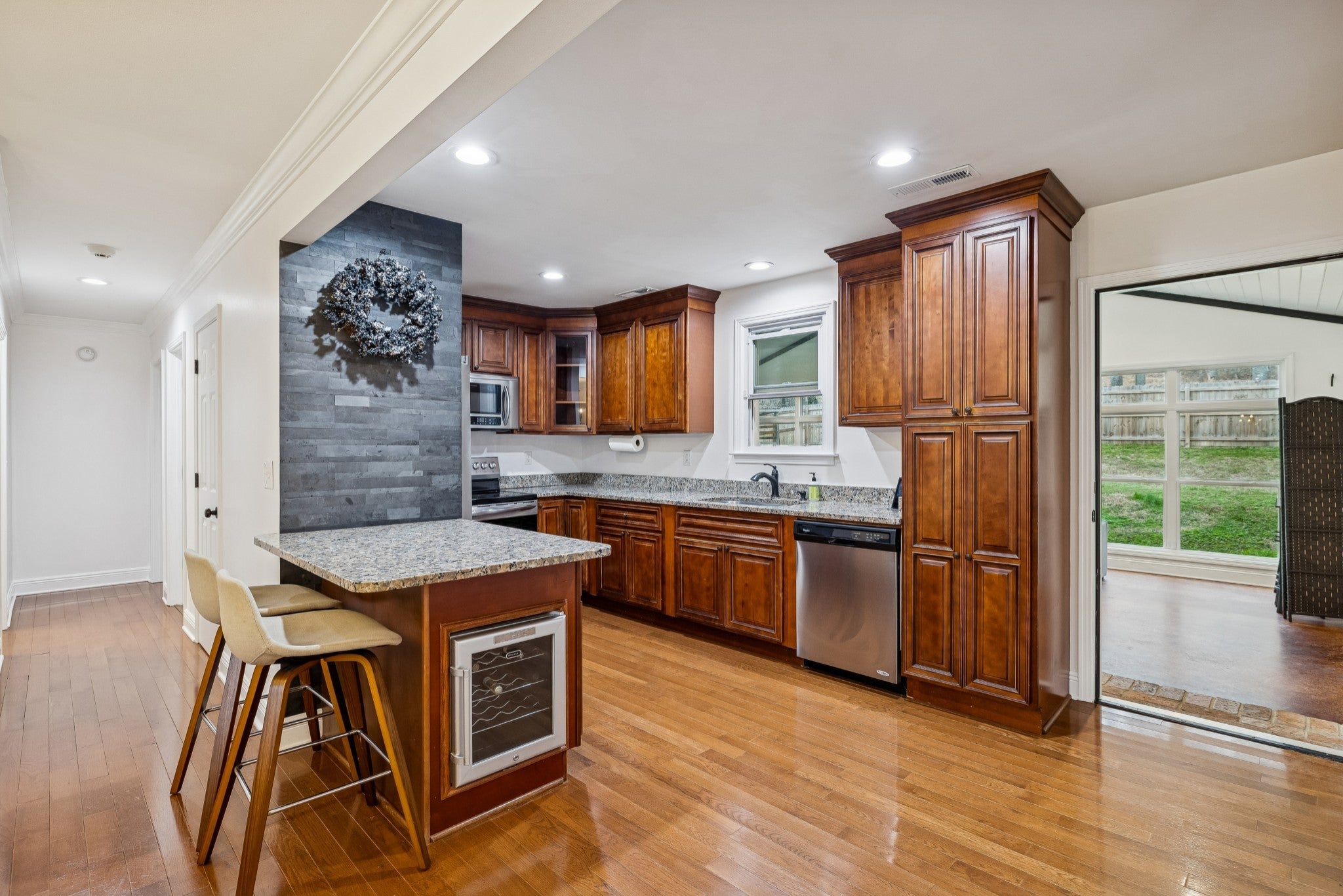 Welcome to 1285 Sandy Valley Rd — a beautifully renovated home offering privacy, space, and long-term value in one of Hendersonville’s most desirable pockets. This 3-bedroom, 2-bath home sits on 0.93 acres and is surrounded by million-dollar properties along scenic Sandy Valley Road, making it a smart investment for years to come. Originally built in 1960, the home was taken down to the studs and extensively renovated in 2015, blending classic charm with modern updates throughout. Inside, you’ll find hardwood floors across much of the main living space, a freshly painted interior, and a warm, inviting living room featuring cool concrete floors and a wood-burning fireplace. The kitchen is both functional and stylish, with granite countertops, stainless steel appliances, and ample cabinet space. One of the standout features is the fully permitted, heated-and-cooled sunroom addition, completed just three years ago. Filled with windows overlooking the backyard, it’s the perfect spot to relax year-round. The primary suite is oversized, offering a walk-in closet and an en suite bathroom with dual vanities and granite countertops. Step outside and enjoy the exceptional privacy this property offers. While part of the yard is fenced, the land extends well beyond the fence line, providing room to roam, garden, or simply enjoy the peaceful surroundings. Additional highlights include a two-car garage, a concrete driveway with ample parking, and a location that feels rural — yet keeps you just 30 minutes from downtown Nashville. Well maintained, thoughtfully updated, and ideally located, this home truly offers the best of both worlds: country serenity with city convenience.