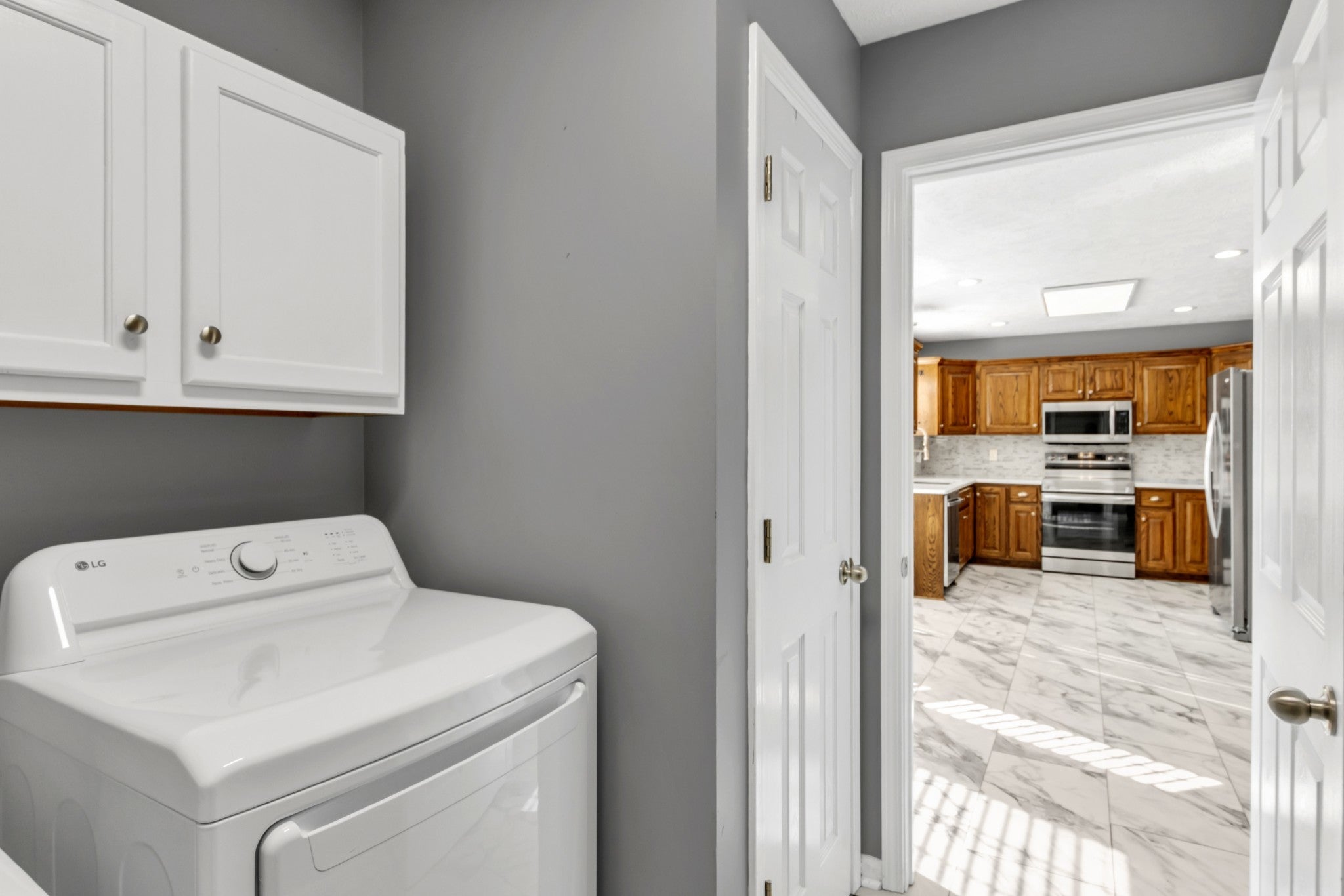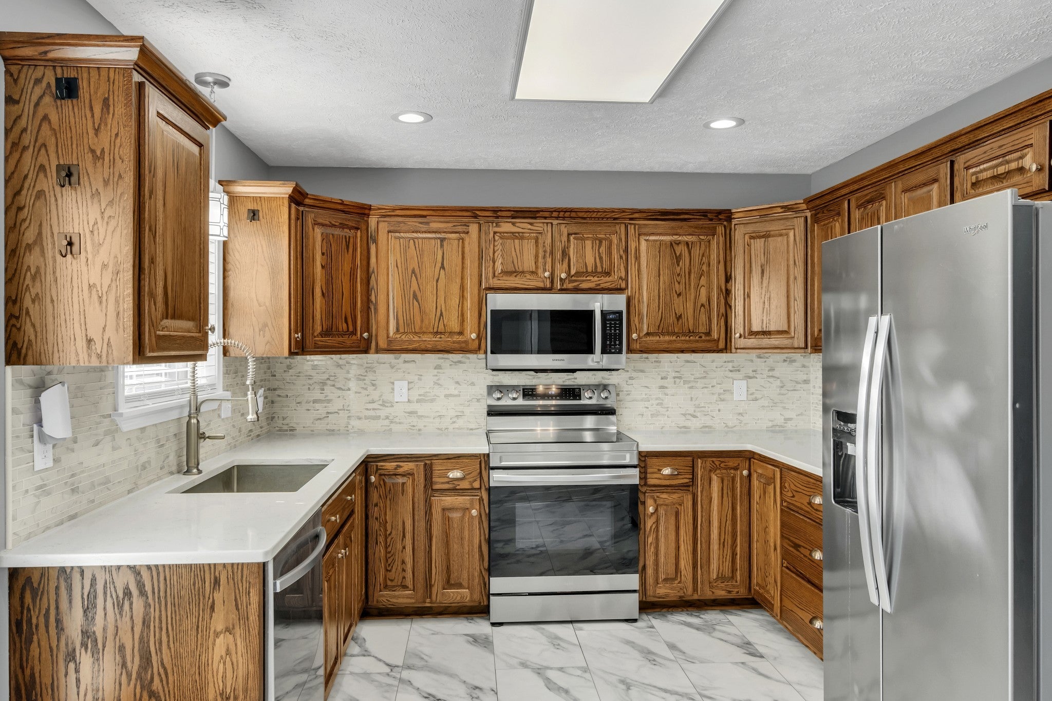 - Electric Oven, Dishwasher, Microwave, Refrigerator, Stainless Steel Appliance(s)