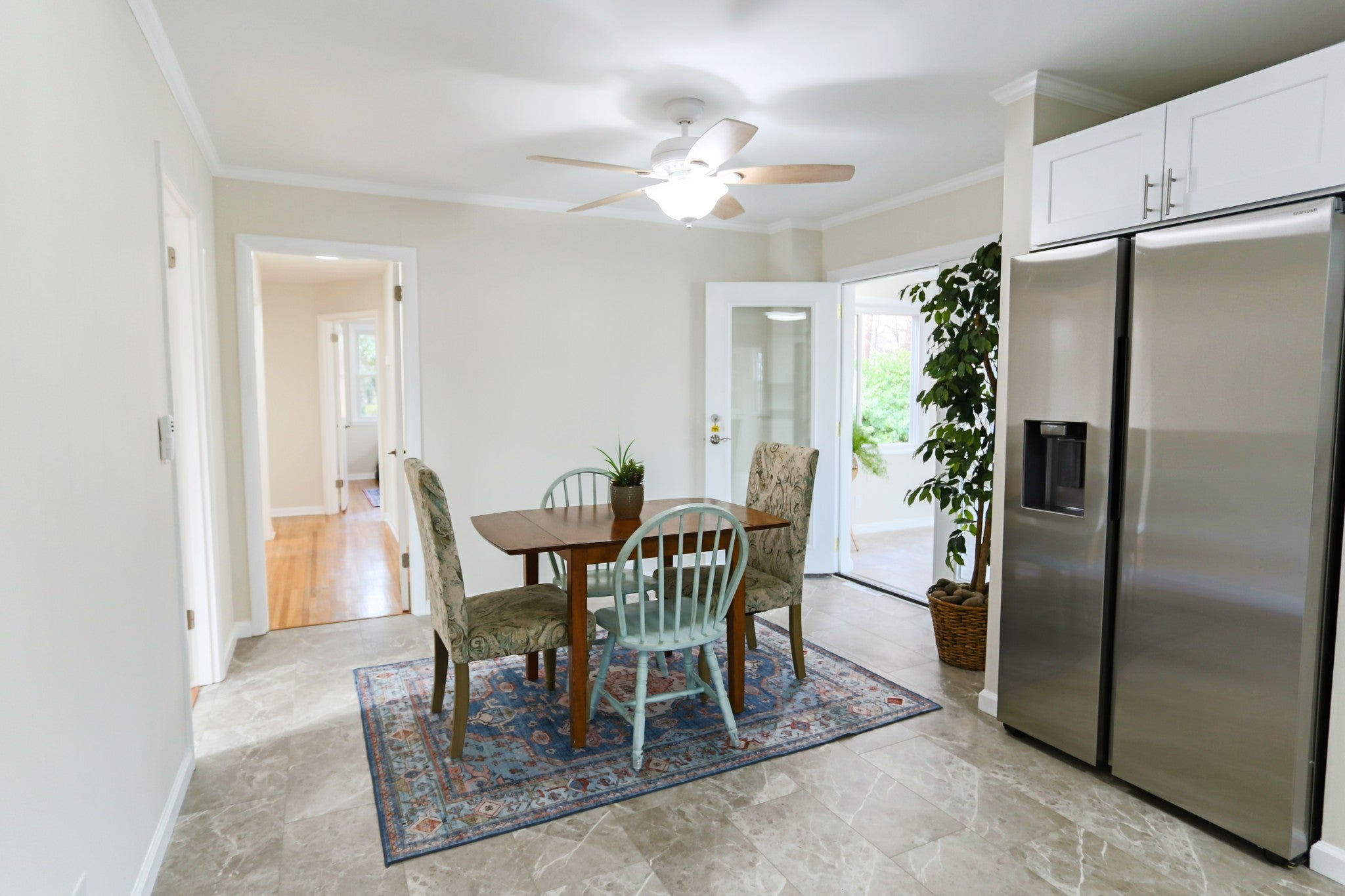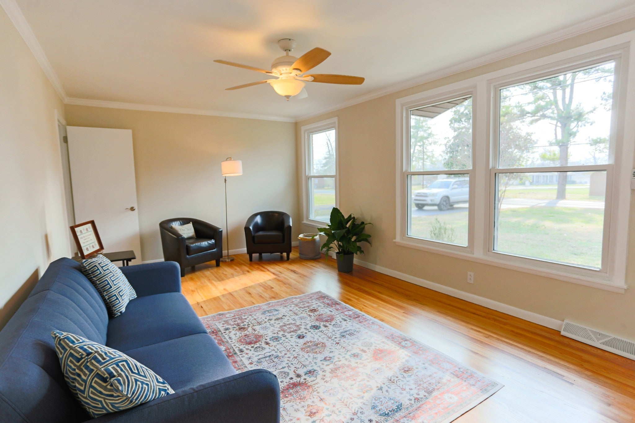 Welcome to this beautifully refreshed brick ranch! Step into a sunlit living room featuring refinished original oak hardwood floors. The open dining area flows into a spacious kitchen, complete with new shaker cabinets, granite countertops, and stainless steel appliances—perfect for home chefs. The versatile converted garage offers built-in bookcases and direct access to the laundry area, making it ideal for a home office, gaming room, or cozy den. Down the hall, you’ll find a renovated full bathroom and three comfortable bedrooms. The primary suite includes a convenient half bath. Enjoy the all-season room, surrounded by windows, for year-round relaxation. Outside, the fenced backyard provides privacy, a powered storage building, a carport, and fresh landscaping for easy maintenance. Located just minutes from I-24, MTSU, and the historic square, this home combines comfort, convenience, and charm. Imagine your next chapter here—schedule your home tour today!
