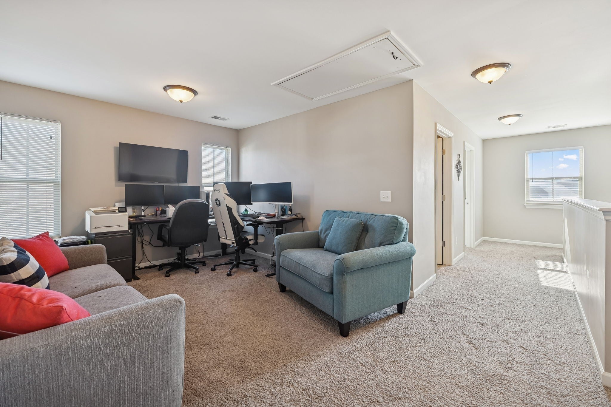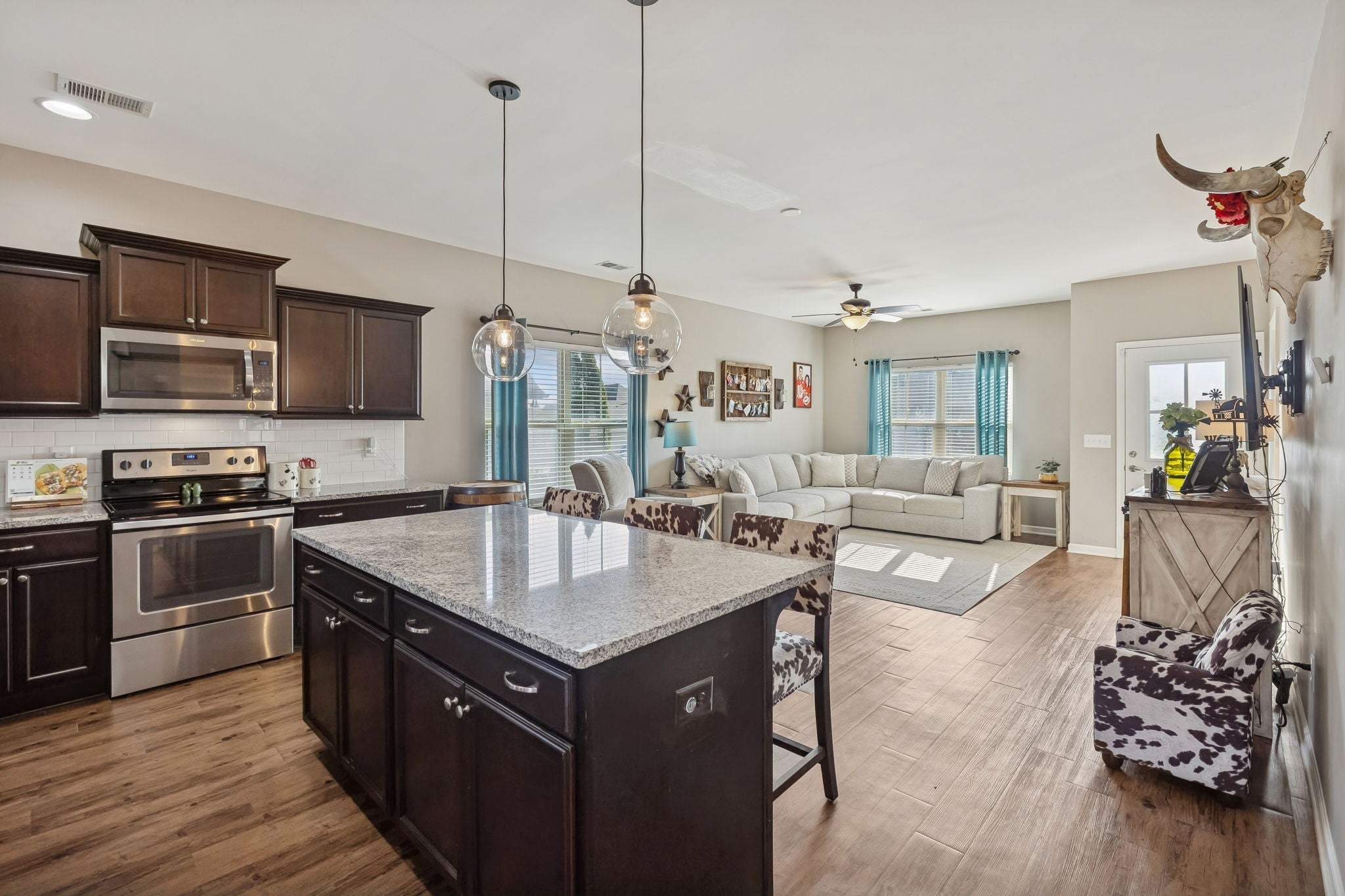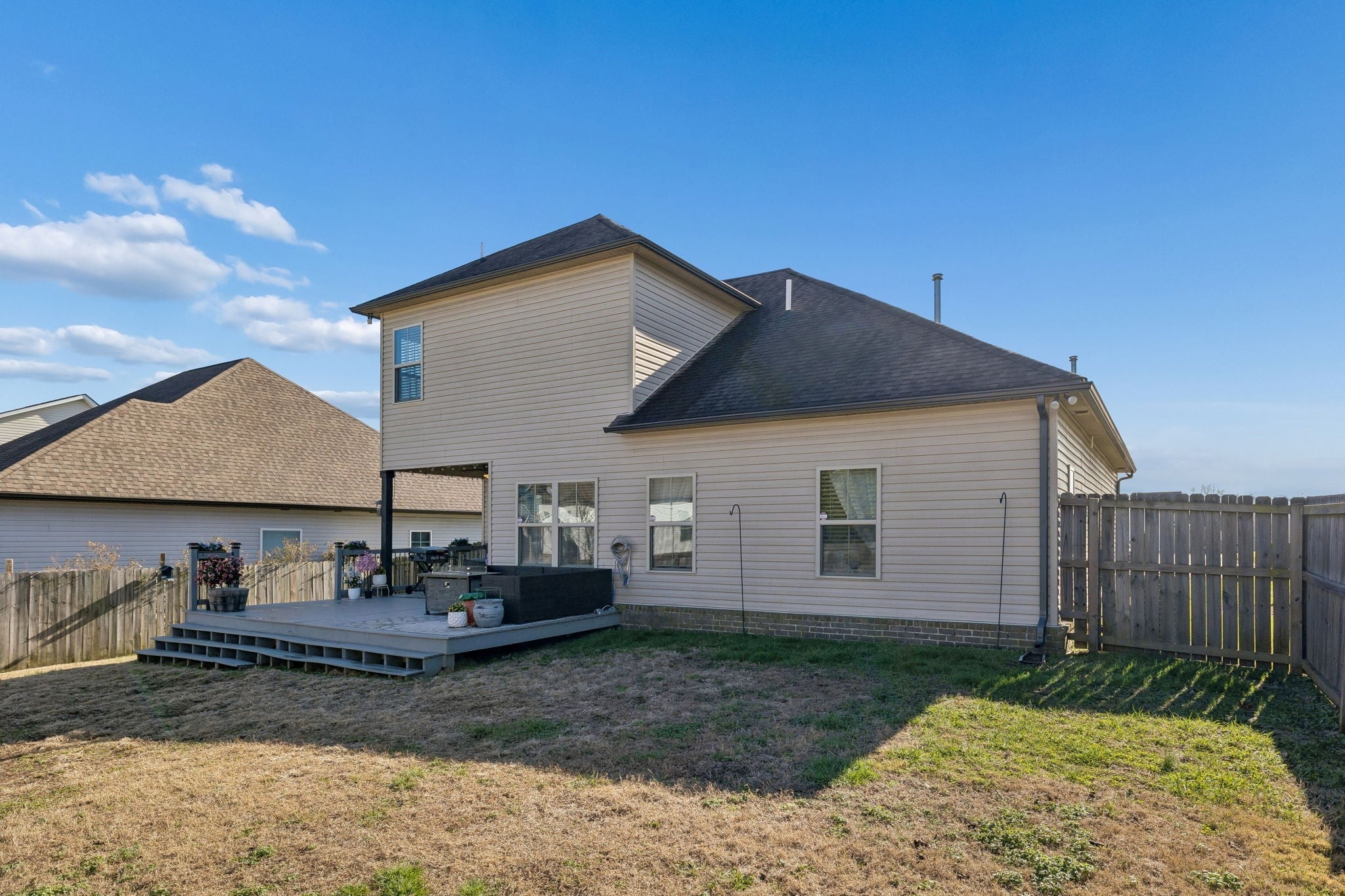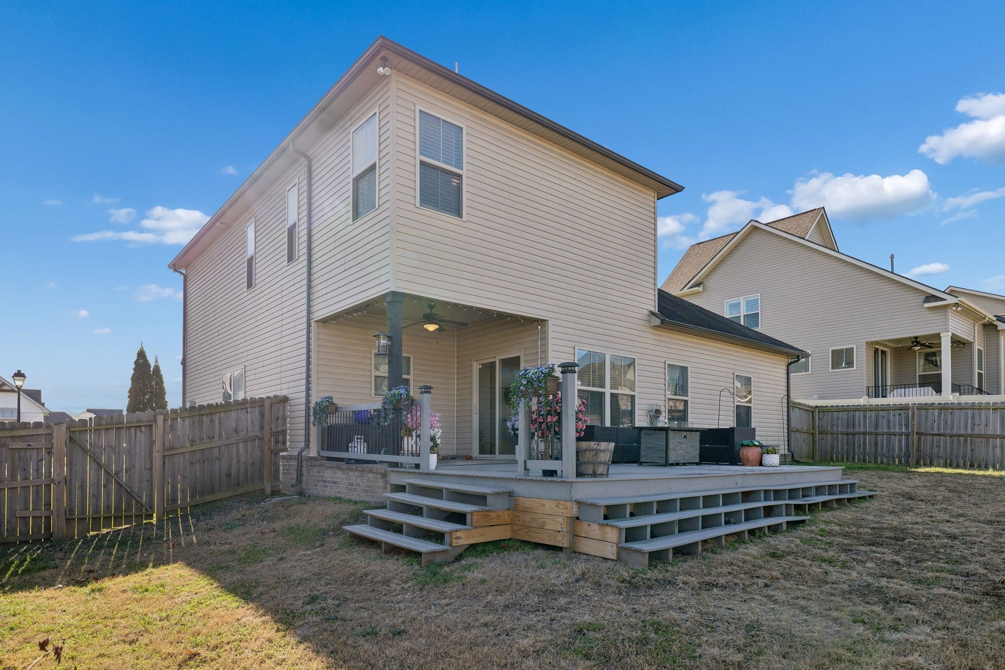 One of Landmark’s most popular floor plans, this beautiful two-story home offers 3 bedrooms and 2.5 baths with a thoughtfully designed open-concept layout. The kitchen features a large island, abundant countertop space for cooking, granite countertops, LVP flooring, stainless steel appliances, and more. The primary bedroom and laundry room are conveniently located on the main level. Upstairs, you’ll find two spacious bedrooms, a full bath, and a bonus room perfect for a media space, playroom, or home office. Don’t miss the walk-in storage room and the extra-large guest closet—ideal for storing all your prized possessions. Enjoy outdoor living on the covered porch and open deck overlooking the level, fully fenced backyard—perfect for relaxing or entertaining. Make sure you look at the multi open concrete pad ready for entertaining all your guests. Perfect for so many different uses!