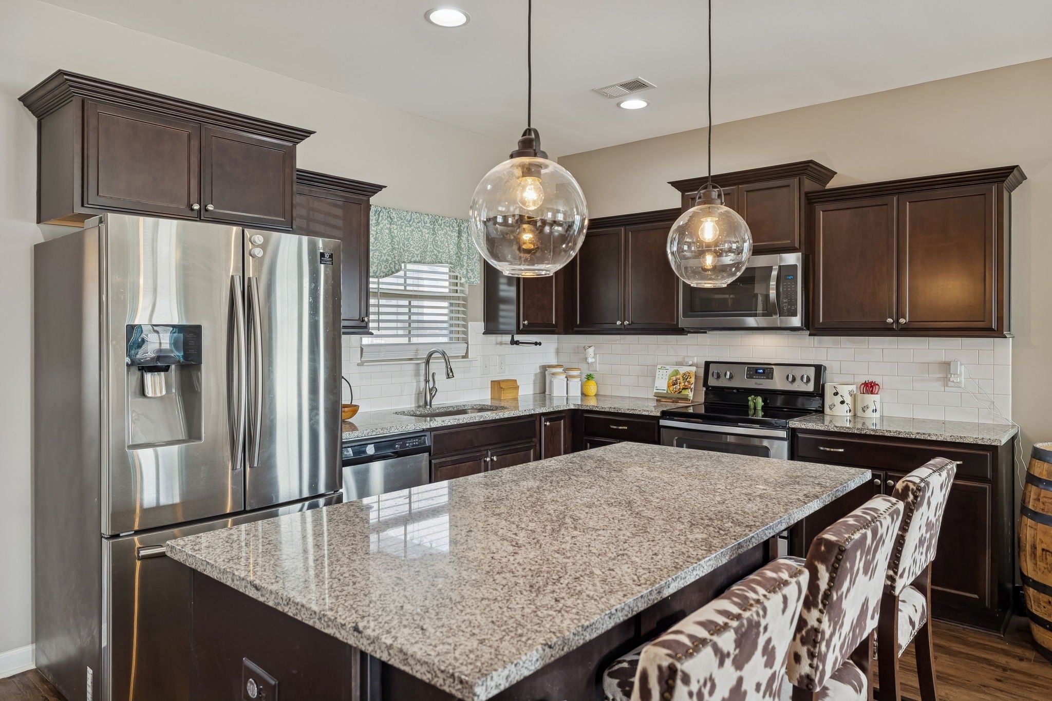 - Electric Range, Dishwasher, Disposal, Microwave, Stainless Steel Appliance(s)