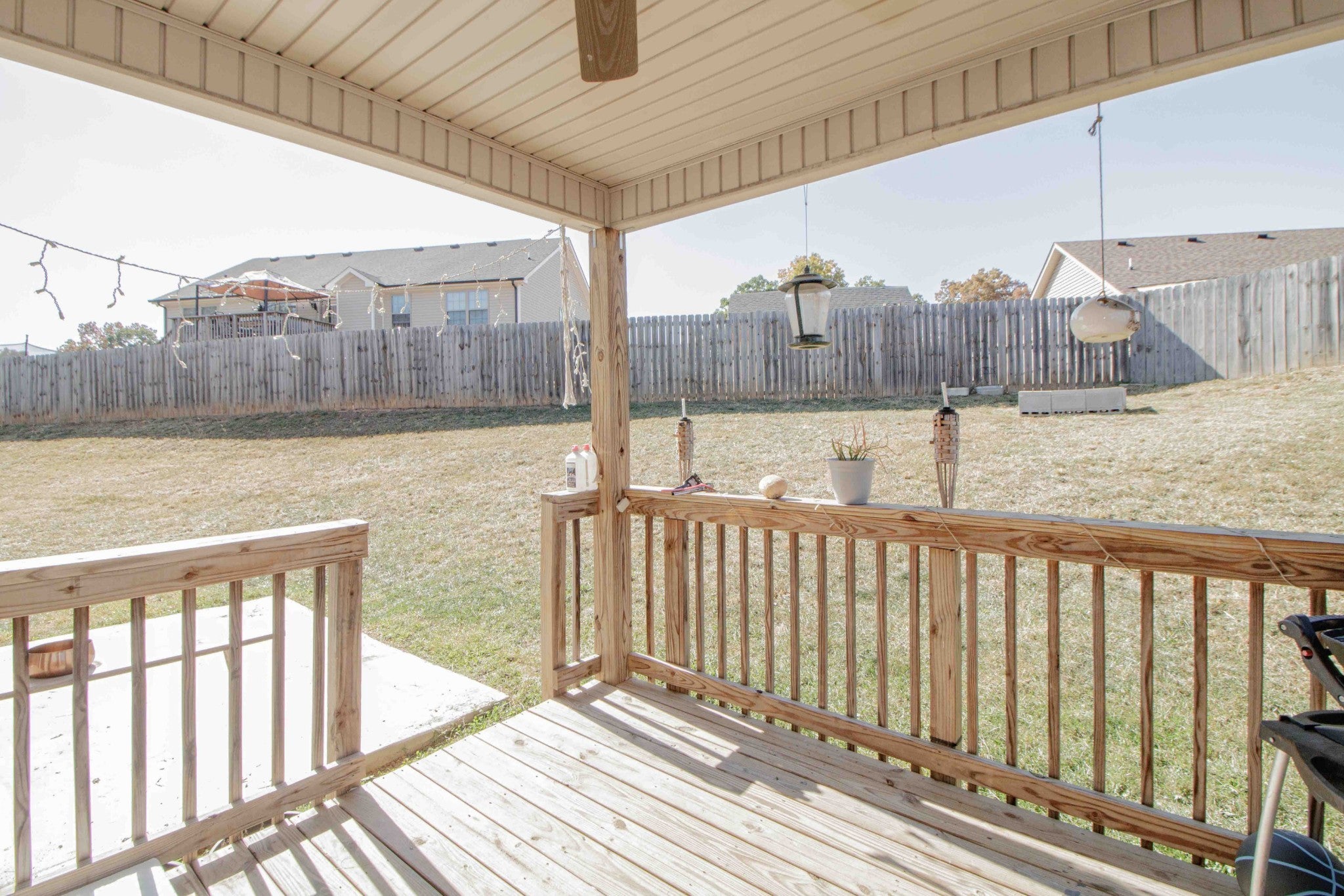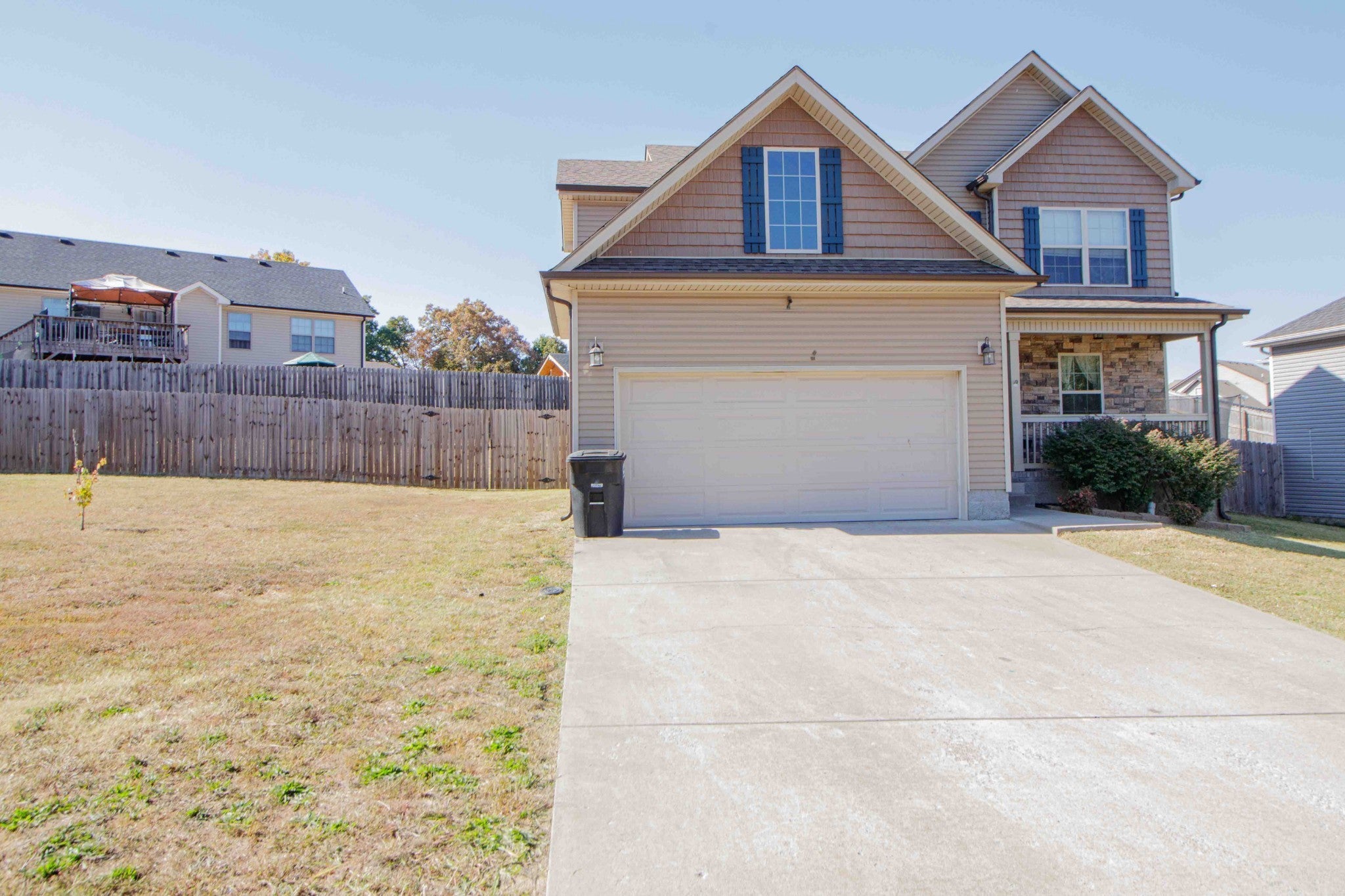 (AVAILABLE 2/6/2026) Oversized Corner Privacy Fenced Lot!!!! Quiet location convenient to the back gates of post. This 3 bedroom, 2.5 bath home features a covered porch, separate living room space with fireplace, dining nook, kitchen with all major appliances, laundry room with washer & dryer, covered deck in the rear of the home with a privacy fence. The master has a private ensuite bath with dual vanities, soaker tub, separate shower and walk in closets. The guest rooms each have large closet space and share a full bath. There is a ton of storage space in the attic as well! This home is PET FRIENDLY- Standard Breed Restrictions Apply! Resident Benefit Program Included. PET FEE $500