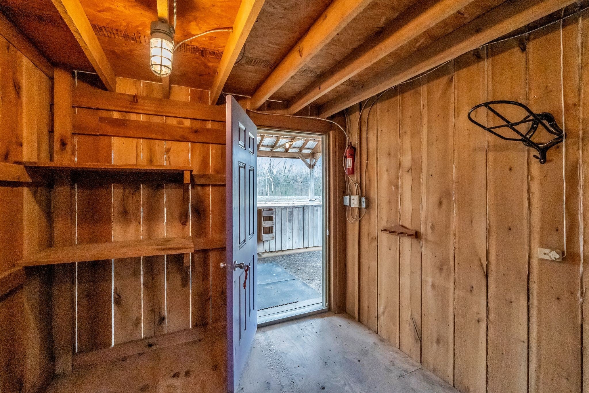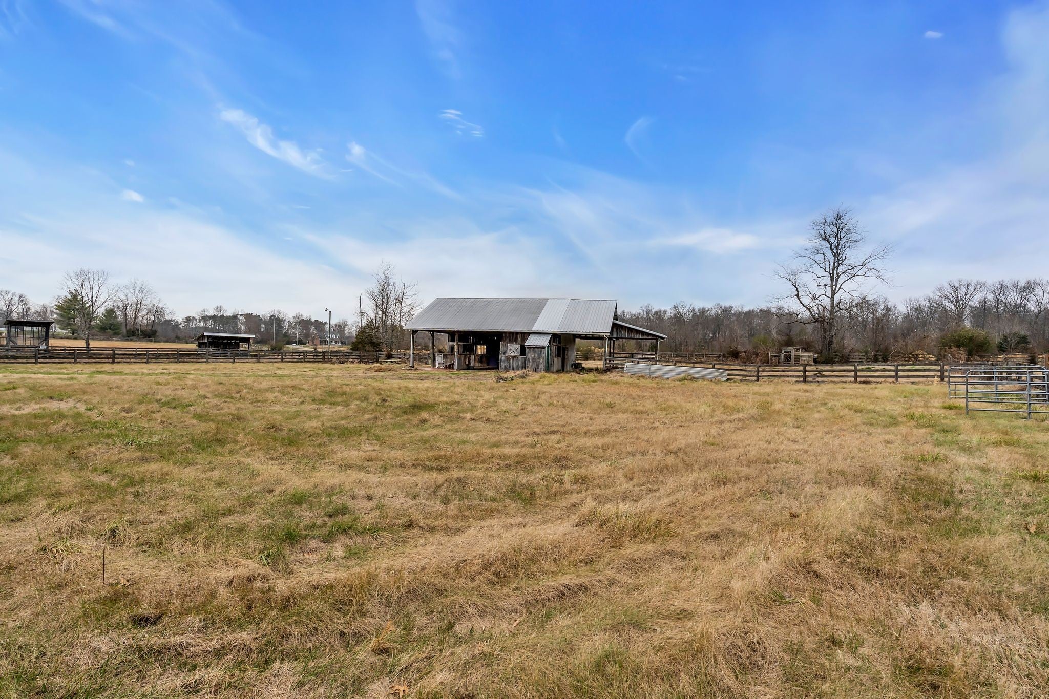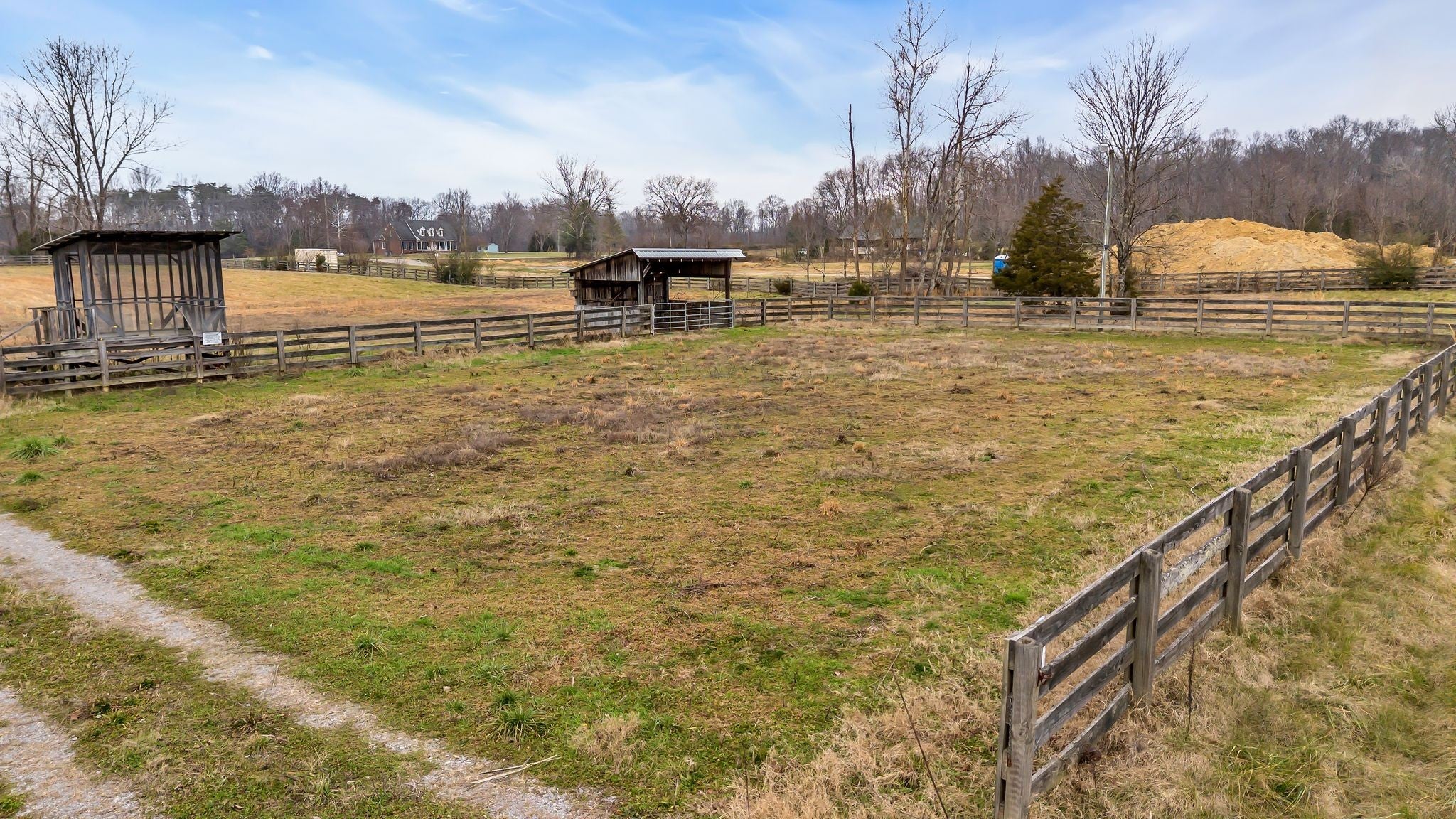 Equestrian dream property offering 5.1 flat, usable acres with a gated entry for privacy and security. The land is thoughtfully set up for horses, featuring a fully fenced riding arena, barn with electricity and lighting, and a dedicated tack room. The property includes well water with two active faucets, providing convenient access throughout the grounds. A porto-potty is on site for added convenience, with no maintenance contract required—just a $45 service call for pumping as needed. Ideal for equestrian use, training, or creating your own private horse property with room to grow. Barn is approximately 1300 sq ft. Stalls are 12x12 . Pole-mounted arena lighting for evening riding and training. Pastures are cross fenced.