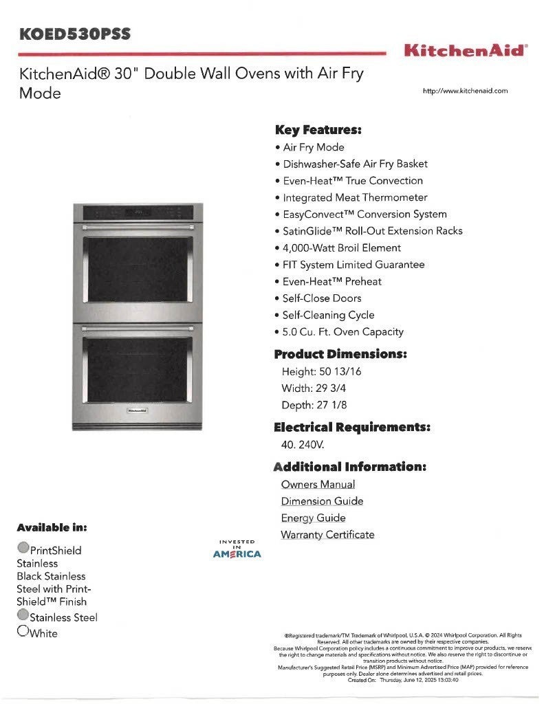 - Double Oven, Electric Oven, Cooktop, Dishwasher, Disposal, Microwave