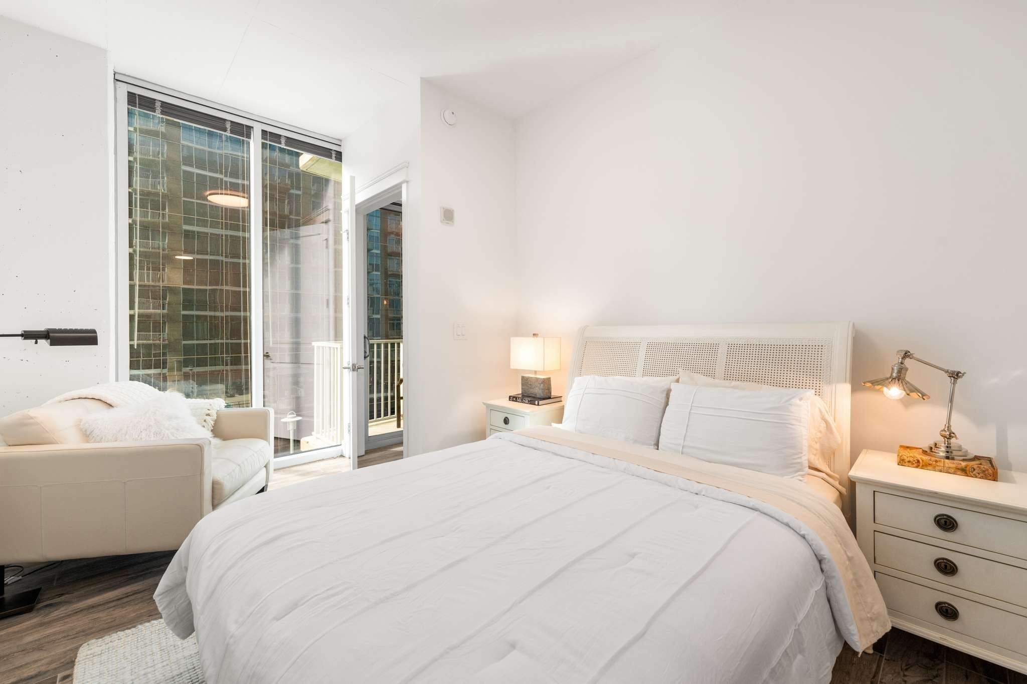 Find your perfect city home here in this fully renovated two bedroom! Updates include all new cabinetry and countertops in kitchen and baths, new flooring, lighting, plumbing, and paint throughout. Heated tile floors in both bathrooms, in-wall AV speakers in living space, and marble tiled primary shower. Walk to absolutely everything you could want with short strolls to Bridgestone Arena, Titans Stadium, Ascend Ampitheater, Schermerhorn Symphony Center, the Country Music Hall of Fame and of course Broadway, 2nd Avenue, the Ryman, and the best live music Nashville has to offer. Condo conveys with two assigned private gated parking spaces. Amenities include a secure lobby with 24/7 concierge, a poolside Resident's Lounge with bar, theater room, pool table, shuffleboard, and plentiful seating, rooftop pool with cabanas, firepit, and grilling stations, and fitness center fully outfitted with cardio, stationary weights, and free weights. Whether this is your primary residence or an easy escape from it all, this space is stunningly appointed, and ready for you! Furnishings can be purchased.