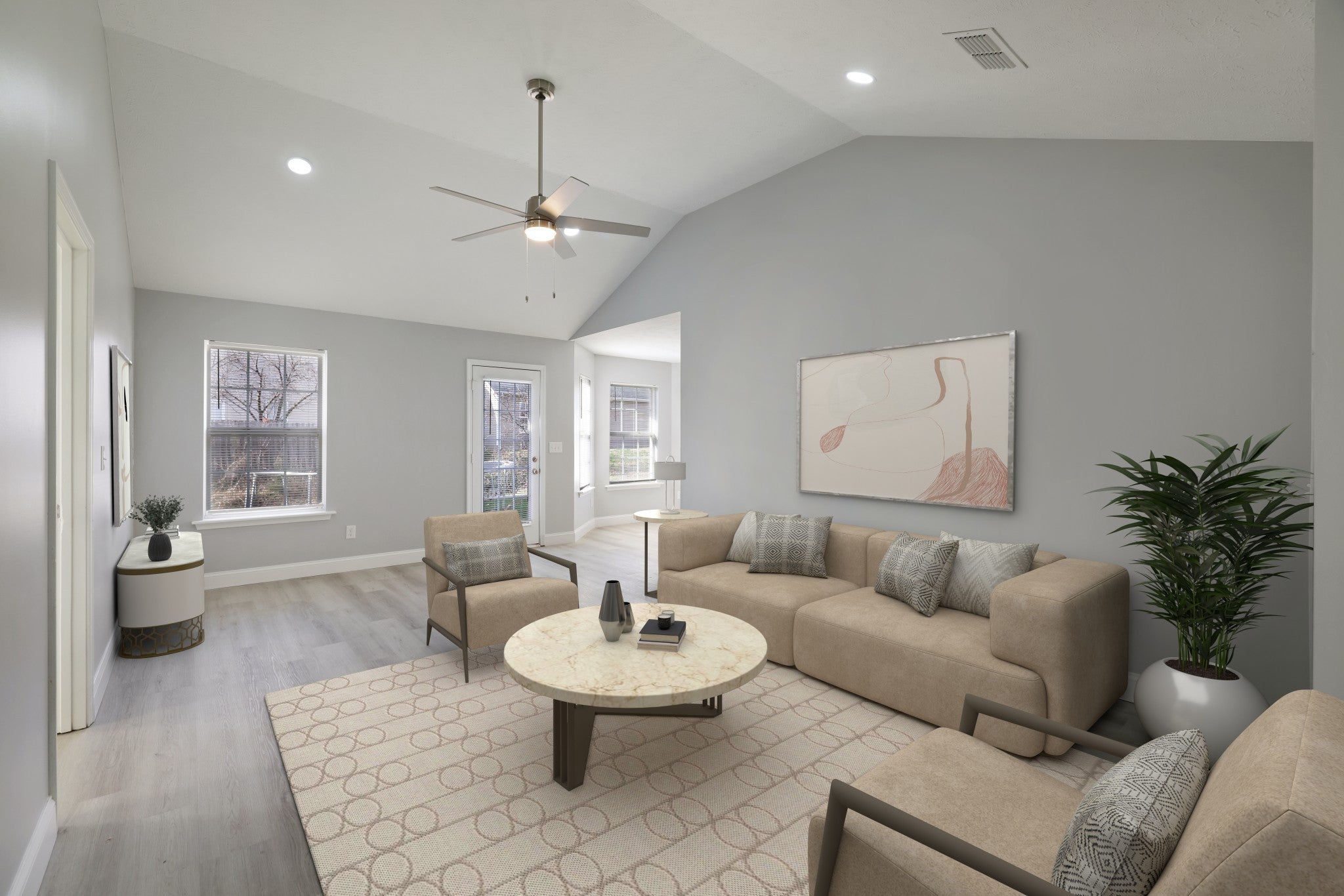 Seeking new owners for this super cute, move-in-ready home in La Vergne, TN! With 3 bedrooms, 2 bathrooms, and 1,290 square feet, this well-maintained property offers a fresh, updated feel throughout. Recent improvements include fresh paint, new flooring, new stove and microwave as well as updated lighting, new kitchen cabinets, and more, making the interior feel bright and inviting. A new roof will also be installed prior to closing. The living room features a vaulted ceiling that adds to the open, airy feel, while the updated kitchen offers a cozy breakfast nook perfect for casual meals. The primary bedroom provides a comfortable retreat with an en-suite bathroom and walk-in closet, and the additional bedrooms are well-sized for guests, family, or a home office. Outside, enjoy a nice-sized yard with room to relax or play, along with the convenience of an attached two-car garage. A charming home with thoughtful updates, ready for its next chapter!