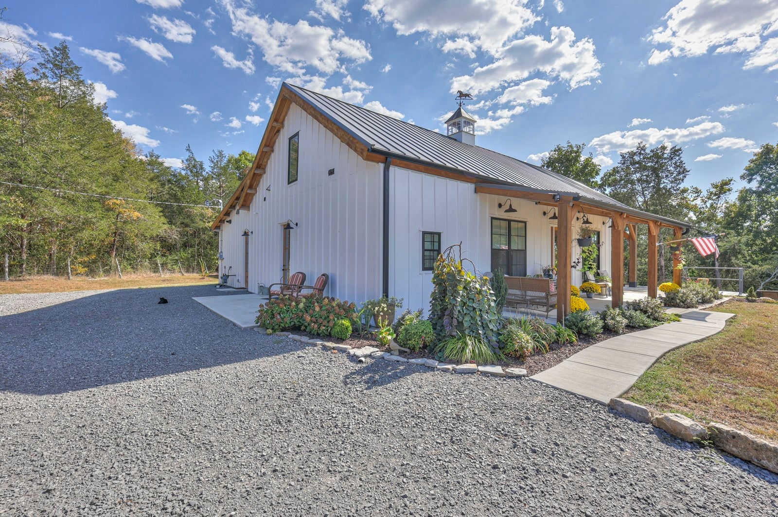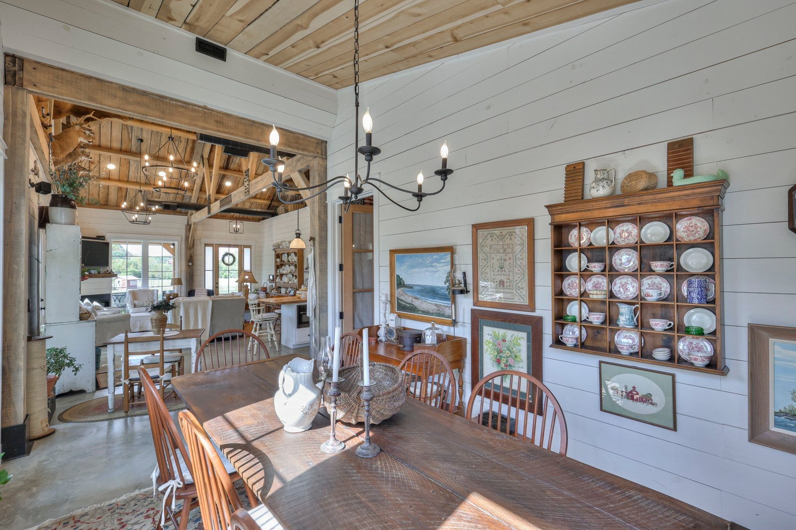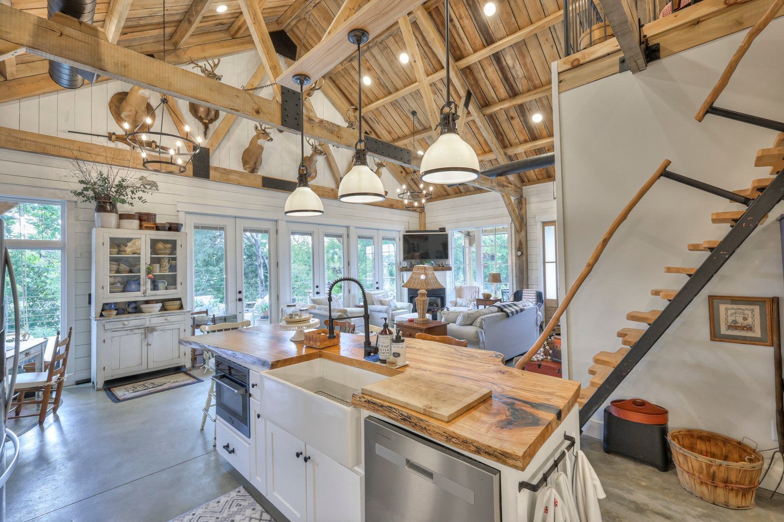 Dream Timber Frame Estate On 26 Acres with Amazing Creek Views! This designer timber frame estate blends privacy and rustic elegance with modern comforts, boasting 26 creek-front acres with stunning Sugar Creek views, and just minutes from town. 'Inside, discover open concept living with 10 ft shiplap, exposed beams,multi-zone heated concrete floors, and a gas fireplace, flowing to huge, covered porches. The chef`s kitchen features Z-Line appliances, live-edge oak counter tops, custom cabinets and a butler`s pantry. A main-floor primary suite offers beautiful farms views, exposed beams, and walk-in shower, while upstairs, a loft bunk room provides cozy retreat and storage. A large first floor second bedroom suite doubles as a family room. The property is a dream with 5-bay 40x60 barn, a 34x14 shop/storage with A/C, greenhouse, RV hookups, a finished studio/office additional building sites and income potential. This home is fully spray foam insulated with multi systems for ultimate comfort and efficiency, standing seam metal roof, and beautiful wood doors This Tennessee gem is an entertainer`s paradise and a tranquil escape, all within 60 miles of Nashville!