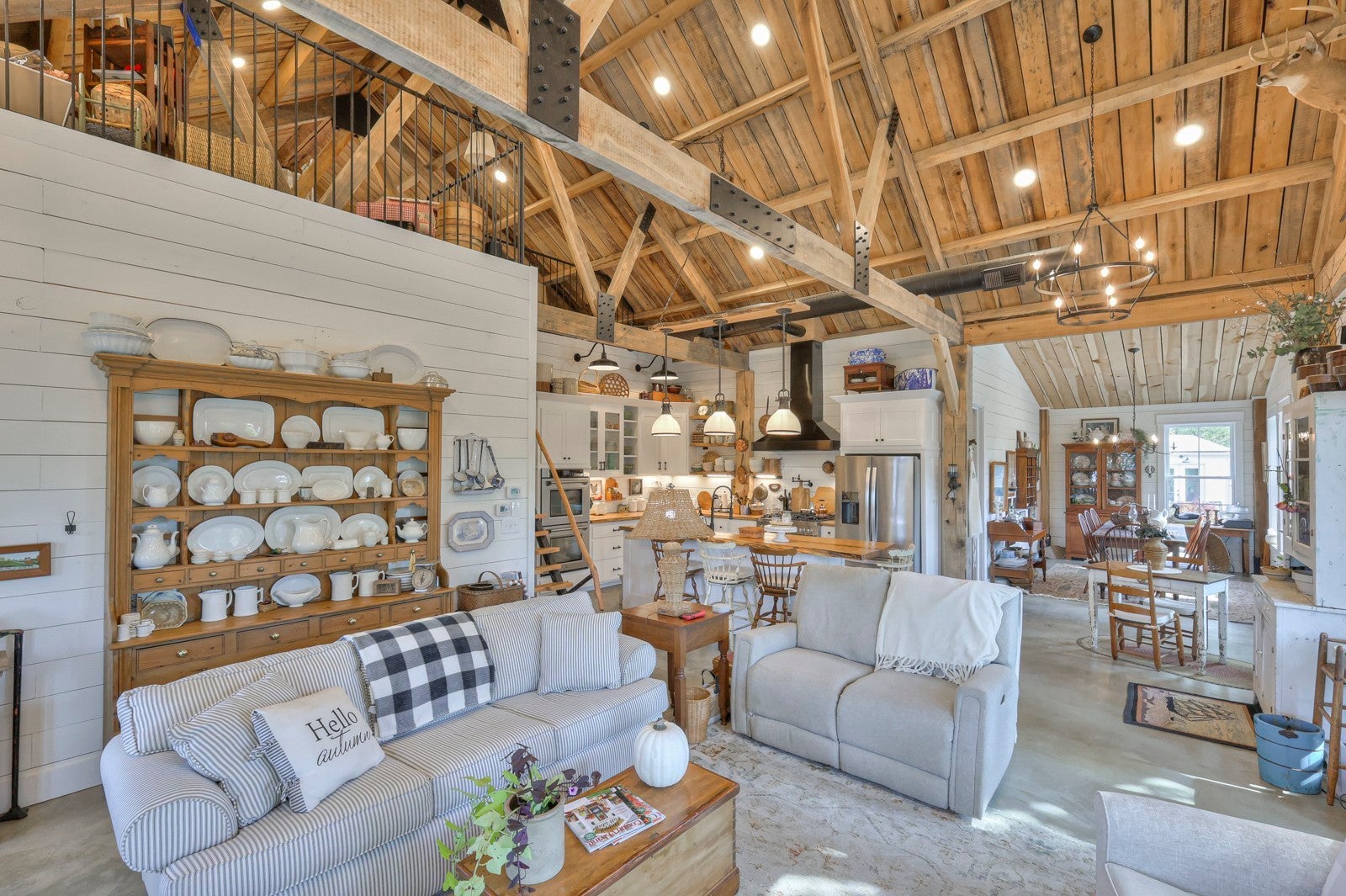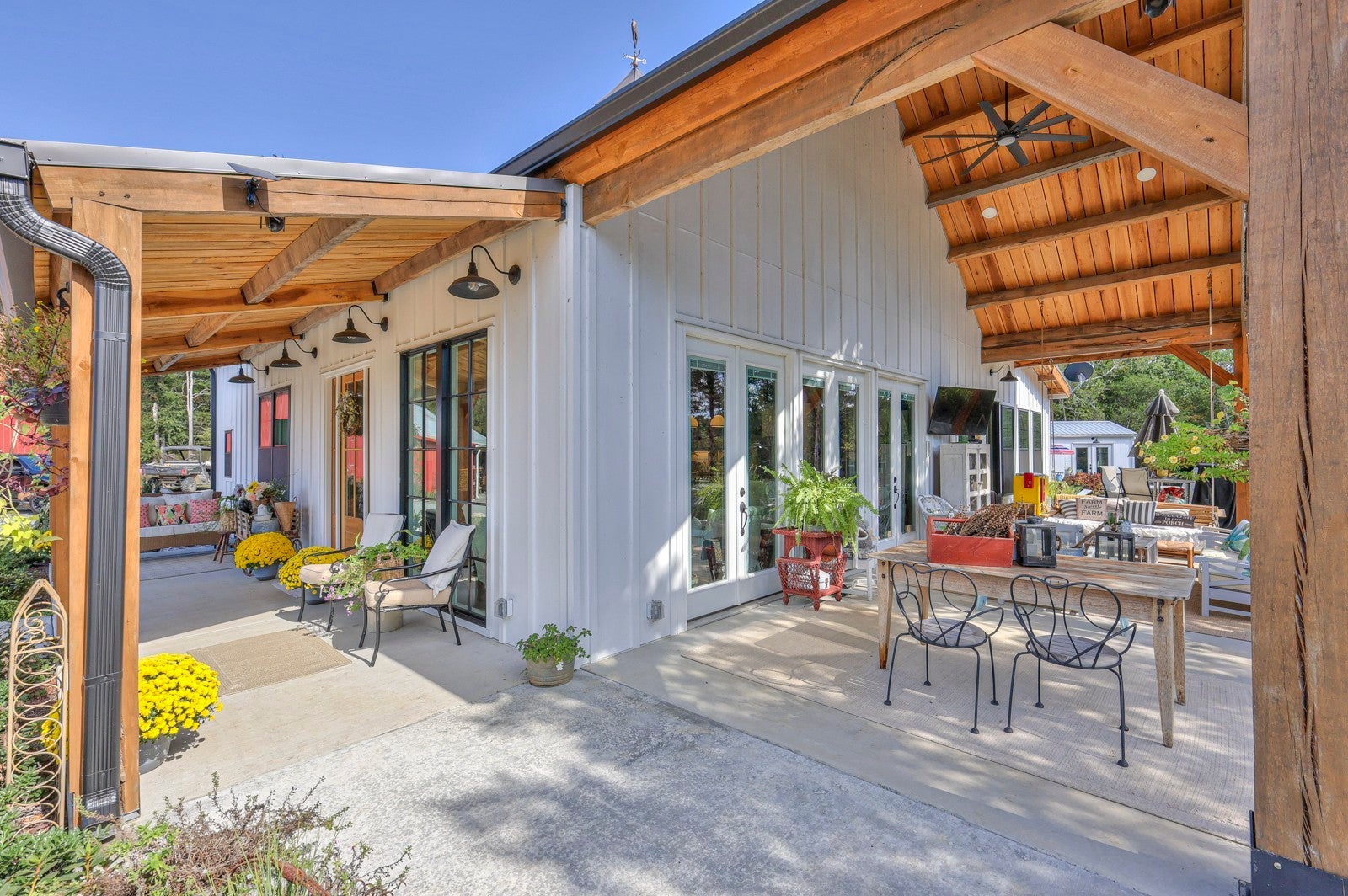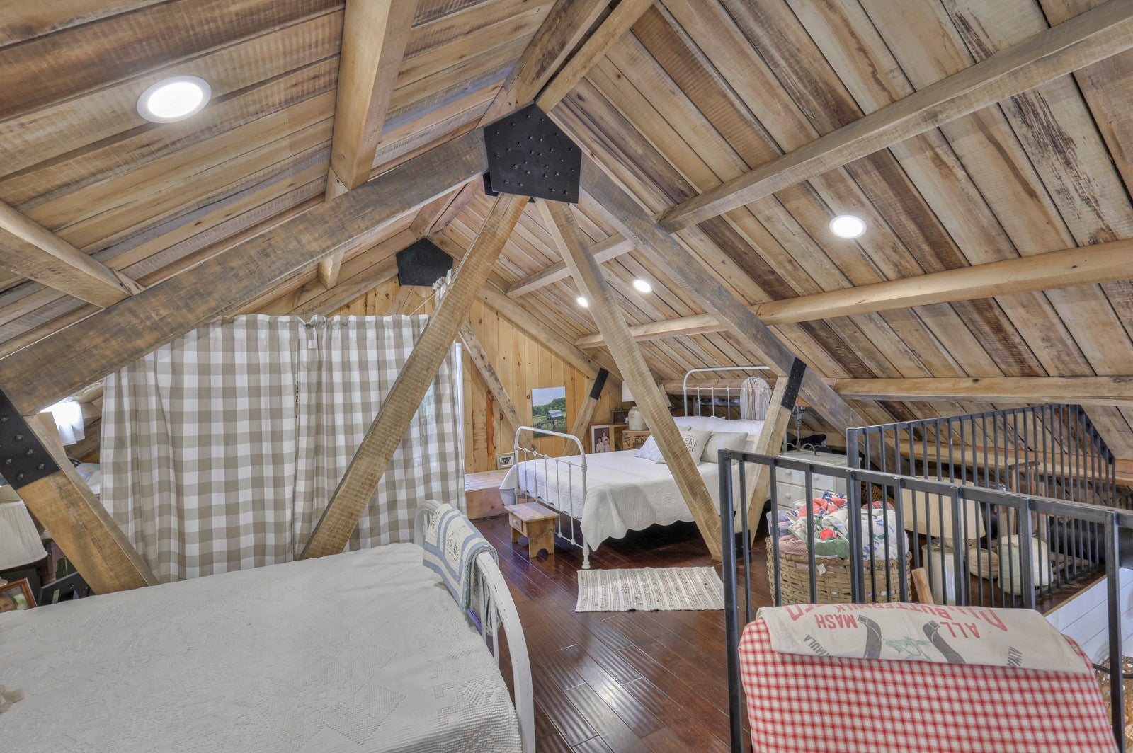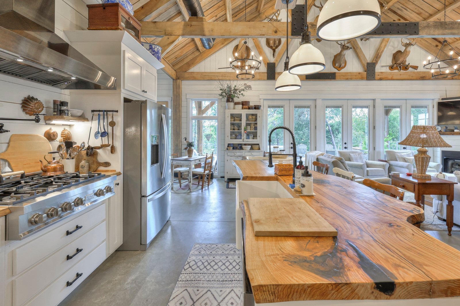 Dream Timber Frame Estate On 26 Acres with Amazing Creek Views! This designer timber frame estate blends privacy and rustic elegance with modern comforts, boasting 26 creek-front acres with stunning Sugar Creek views, and just minutes from town. 'Inside, discover open concept living with 10 ft shiplap, exposed beams,multi-zone heated concrete floors, and a gas fireplace, flowing to huge, covered porches. The chef`s kitchen features Z-Line appliances, live-edge oak counter tops, custom cabinets and a butler`s pantry. A main-floor primary suite offers beautiful farms views, exposed beams, and walk-in shower, while upstairs, a loft bunk room provides cozy retreat and storage. A large first floor second bedroom suite doubles as a family room. The property is a dream with 5-bay 40x60 barn, a 34x14 shop/storage with A/C, greenhouse, RV hookups, a finished studio/office additional building sites and income potential. This home is fully spray foam insulated with multi systems for ultimate comfort and efficiency, standing seam metal roof, and beautiful wood doors This Tennessee gem is an entertainer`s paradise and a tranquil escape, all within 60 miles of Nashville!