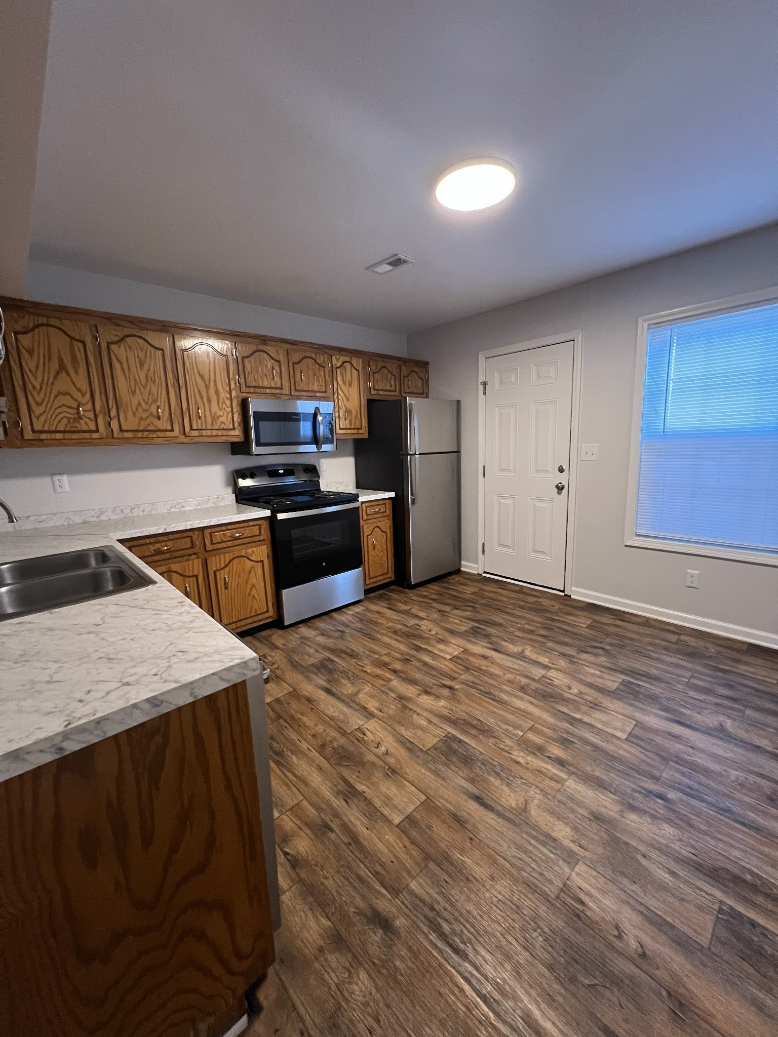 - Electric Oven, Electric Range, Dishwasher, Disposal, Microwave, Refrigerator, Stainless Steel Appliance(s)