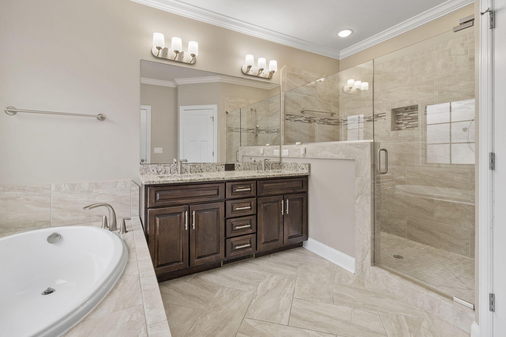 Welcome to 8238 Knotting Wood Way, a timeless custom home built by renowned G.T. Issa Premier Homes in East Brainerd's coveted Castlegate neighborhood. Expert craftsmanship meets modern comfort, just minutes from Hamilton Place Mall, top-rated East Brainerd and East Hamilton schools, and premier shopping/dining. Step inside to gleaming hardwood floors, soaring ceilings, and an open, bright floor plan that encourages family connection and easy entertaining. The foyer leads naturally into the spacious family room, featuring a sleek central fireplace, and the formal dining area, which boasts elegant wainscoting and a stylish tray ceiling. The kitchen offers granite countertops, custom cabinetry, stainless steel appliances, a gas cooktop, a pantry, and a bar-style counter perfect for casual seating. A cozy breakfast nook connects the kitchen and family room, ideal for morning coffee or relaxed family meals. On the main floor, multiple closets provide ample storage, and a small, versatile room is also available, suitable for a pocket office, craft space, or reading corner. The primary suite on the main level serves as a true retreat, with a spa-like bathroom featuring granite double vanities, a tiled shower, a soaking garden tub, and a walk-in closet. An additional bedroom and full bath on the main level add flexibility for guests or extended family. The generously sized laundry room features cabinets, a sink, and ample storage, along with easy access to the main-level garage for convenient drop-offs of groceries. Upstairs, discover a loft-style sitting area open to the great room below — a bright, airy space perfect for reading or studying. The home features three spacious bedrooms, a full bathroom, and a large bonus room that can serve as a guest suite or an additional bedroom. A walk-out attic provides extra storage space. Recent updates include fresh paint throughout, new carpet, new blinds, and a brand-new GE Profile cooktop.