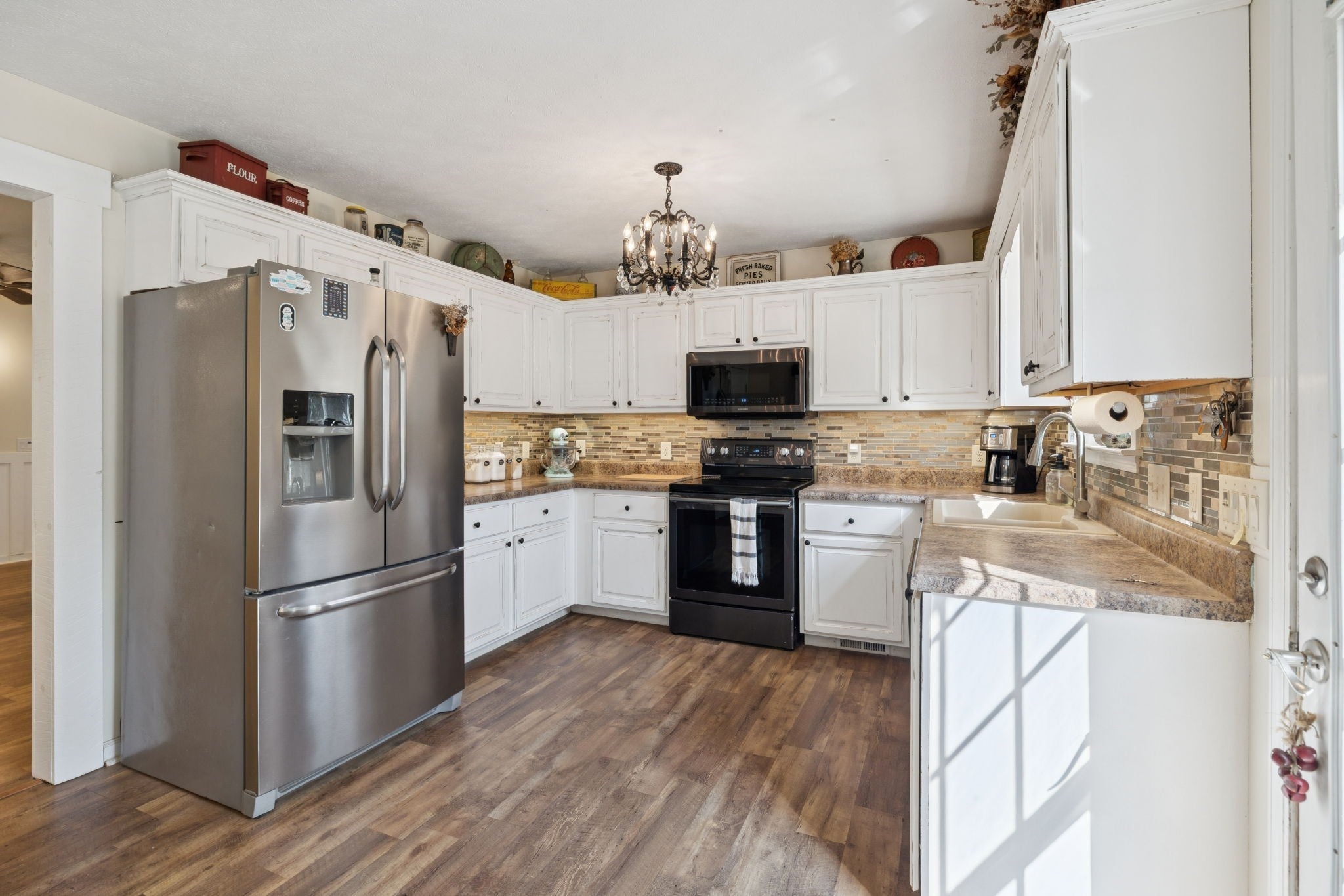 - Built-In Electric Range, Dishwasher, Microwave, Refrigerator, Stainless Steel Appliance(s)