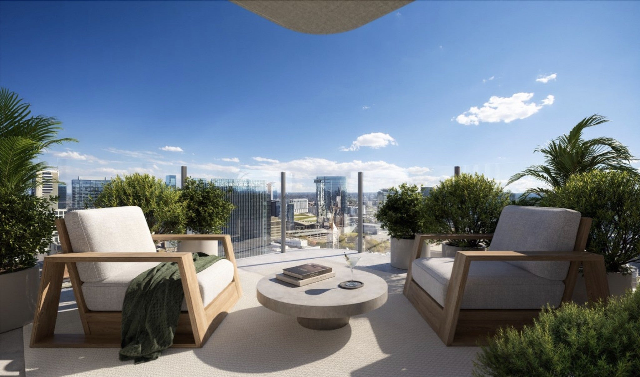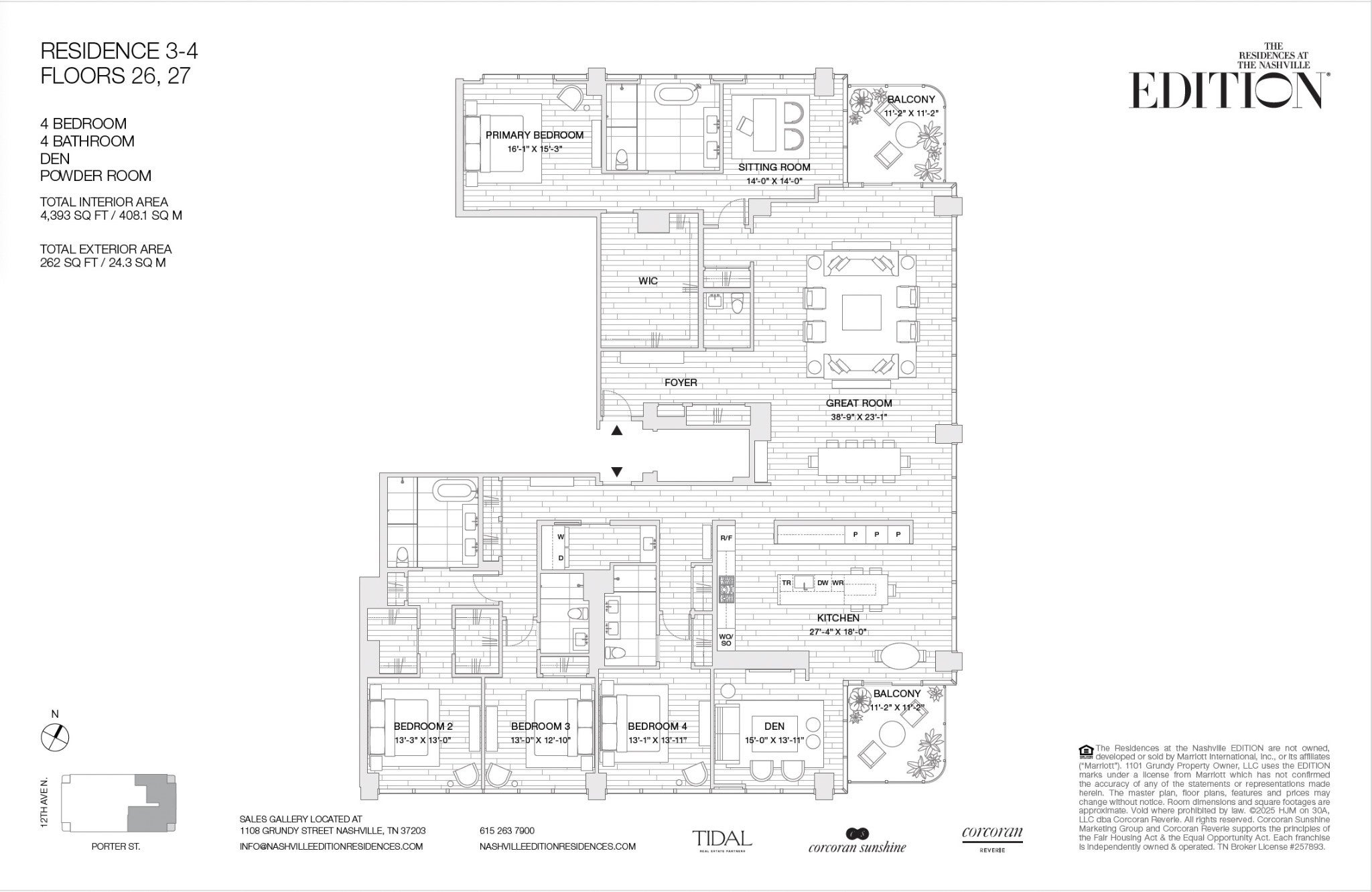 Authentic EDITION style has arrived in Nashville. Legendary service meets sophisticated luxury and seamless urban connectivity in an offering unlike any other in Music City. Perched atop The Nashville EDITION, The Residences at The Nashville EDITION comprise a curated collection of unique homes and restorative amenities. Residence 2703 is a four-bedroom, four-and-a-half-bathroom home with 4,393 sf of interior space and 2 private terraces framing sweeping northeast & southeast-facing views of Nashville, featuring soaring 10'+ ceilings, wide-plank white oak floors, and floor-to-ceiling windows. An entry gallery leads to an expansive living and dining area. The chef’s kitchen, with views over Downtown & Nashville Yards, showcasing custom white oak cabinetry, Oroluce slab countertops and backsplash, a Miele appliance suite, and a wine refrigerator. The primary suite features an ensuite bathroom with a freestanding soaking tub, Porcelanosa tile, a travertine vanity, and brushed bronze fixtures. The secondary bedrooms include an en-suite bathroom with refined finishes. Residence owners enjoy a suite of resident-only private amenities, including a fitness center, sports simulator, terrace with grill and dining stations, lounges, a game/screening room, a private dining room with catering kitchen, and valet parking. Owners benefit from premium services and priority access to EDITION Hotel’s amenities including the open-air 50’ heated saltwater pool with cabanas, bar and restaurant service, and sweeping views of Music City. Inside, the EDITION’s signature stair, double-height restaurant & bar, spa, lounges, and private event spaces are perfect for intimate or grand gatherings. Residents have access to EDITION Hotel services including 24-hour concierge & security, personal training, and event planning – all designed to deliver EDITION’s signature blend of boutique intimacy and world-class service. Illustrations are artist’s depictions only and may differ from completed work.