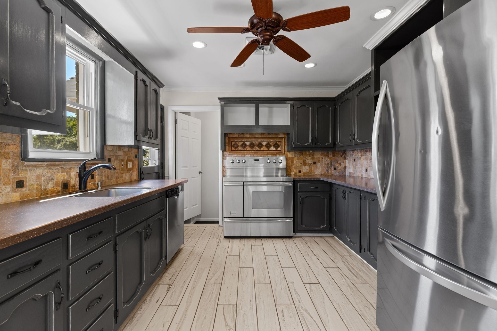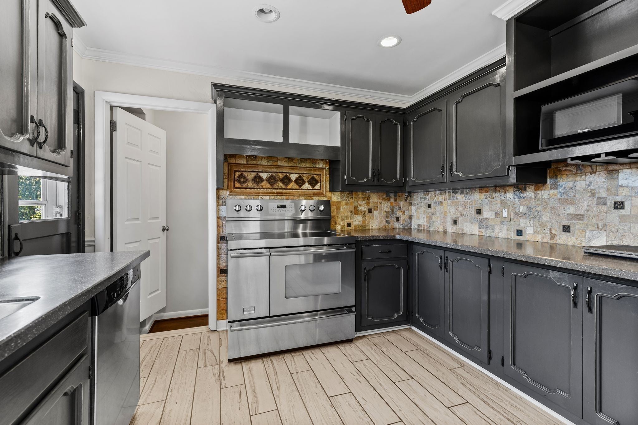 - Double Oven, Electric Range, Dishwasher, Dryer, Freezer, Ice Maker, Microwave, Refrigerator, Stainless Steel Appliance(s), Washer
