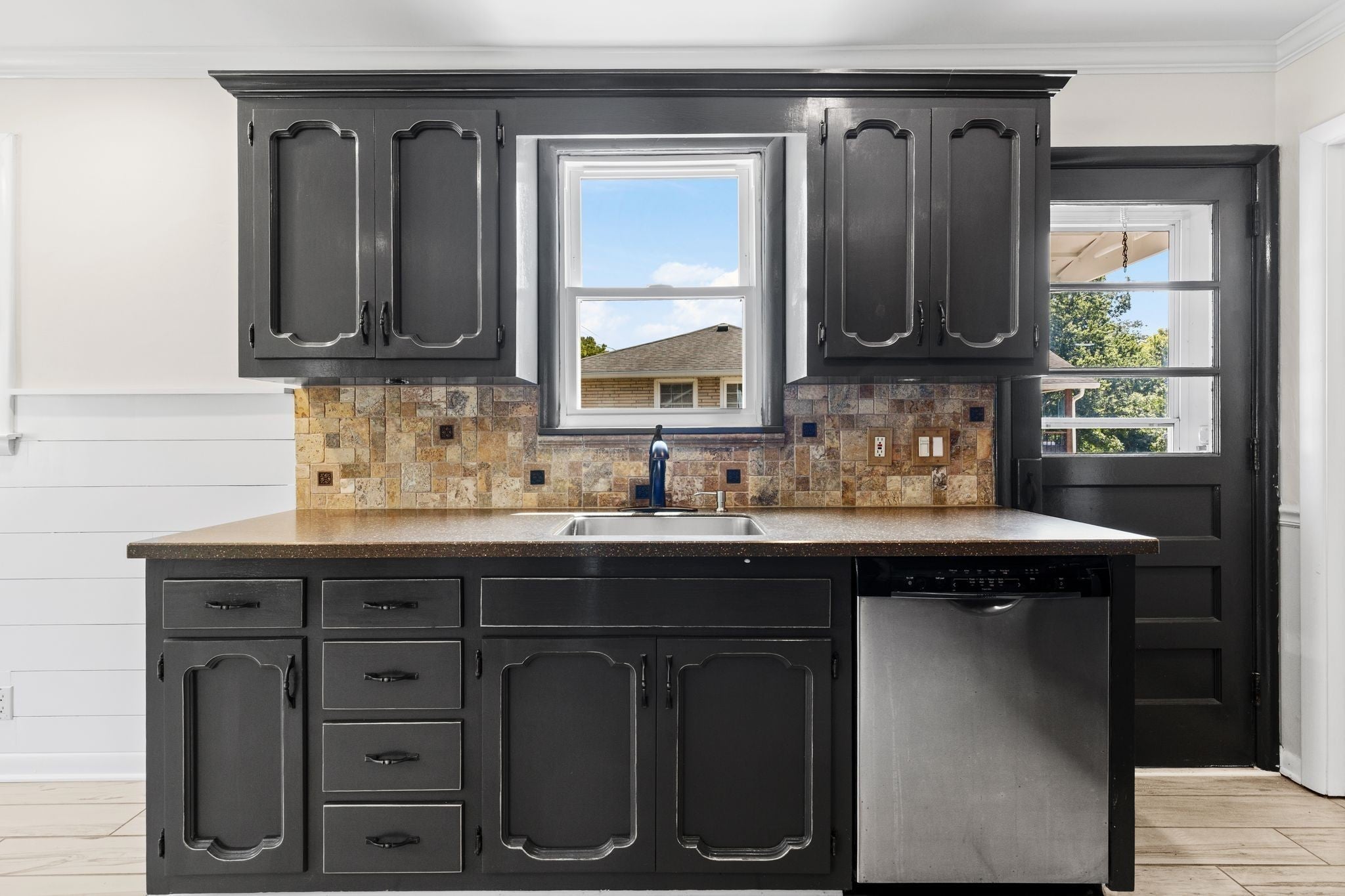 Updated cottage with amazing fenced lawn. The home has beautiful hardwoods through out, updated bathrooms and kitchen with stainless steel appliances, ample cabinets and Corian counter tops. The downstairs features an incredible living space with two full baths, den with electric fireplace, and primary en-suite, a small kitchen/laundry room. The outdoor spaces are incredible with amazing landscaping and a generous deck off the upstairs kitchen, downstairs screened-in porch leads to another hardscaped patio with gas firepit and lush fully fenced and private backyard. Perfect for entertaining. Covered parking leading into the back yard and lower entrance of the home.