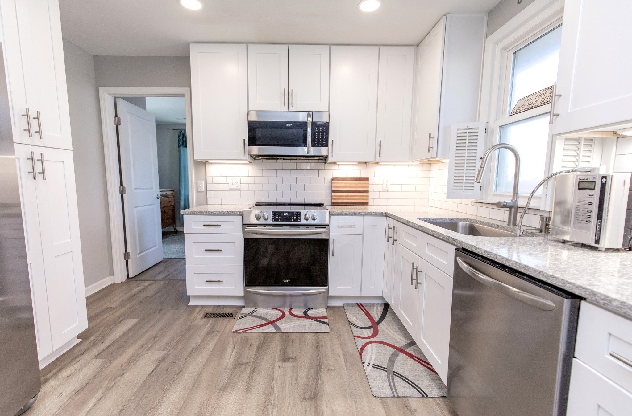 This renovated one level brick ranch is ready for its new owner. The home offers 4 bedrooms, 2-1/2 baths on a large corner lot. New everything; flooring, paint, trim, doors, lighting, plumbing fixtures, kitchen, baths, water heater. Roof & HVAC approx 8 years old. Stainless appliances. Kangen water machine to remain. Washer/dryer remains. Crawl space is encapsulated and has a French drain system work done by Frontier Foundation and is under warranty. All appliances are included "as is".