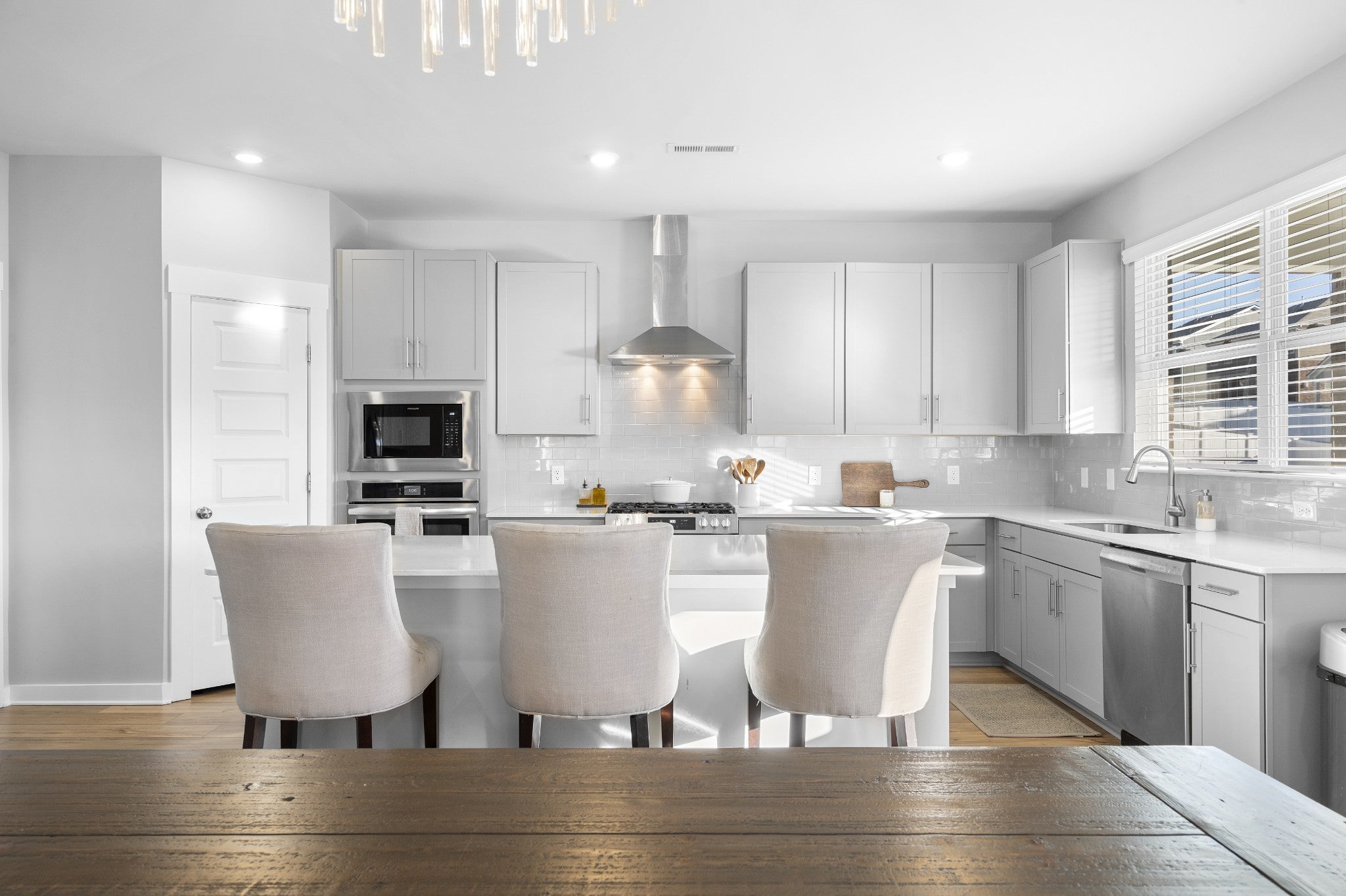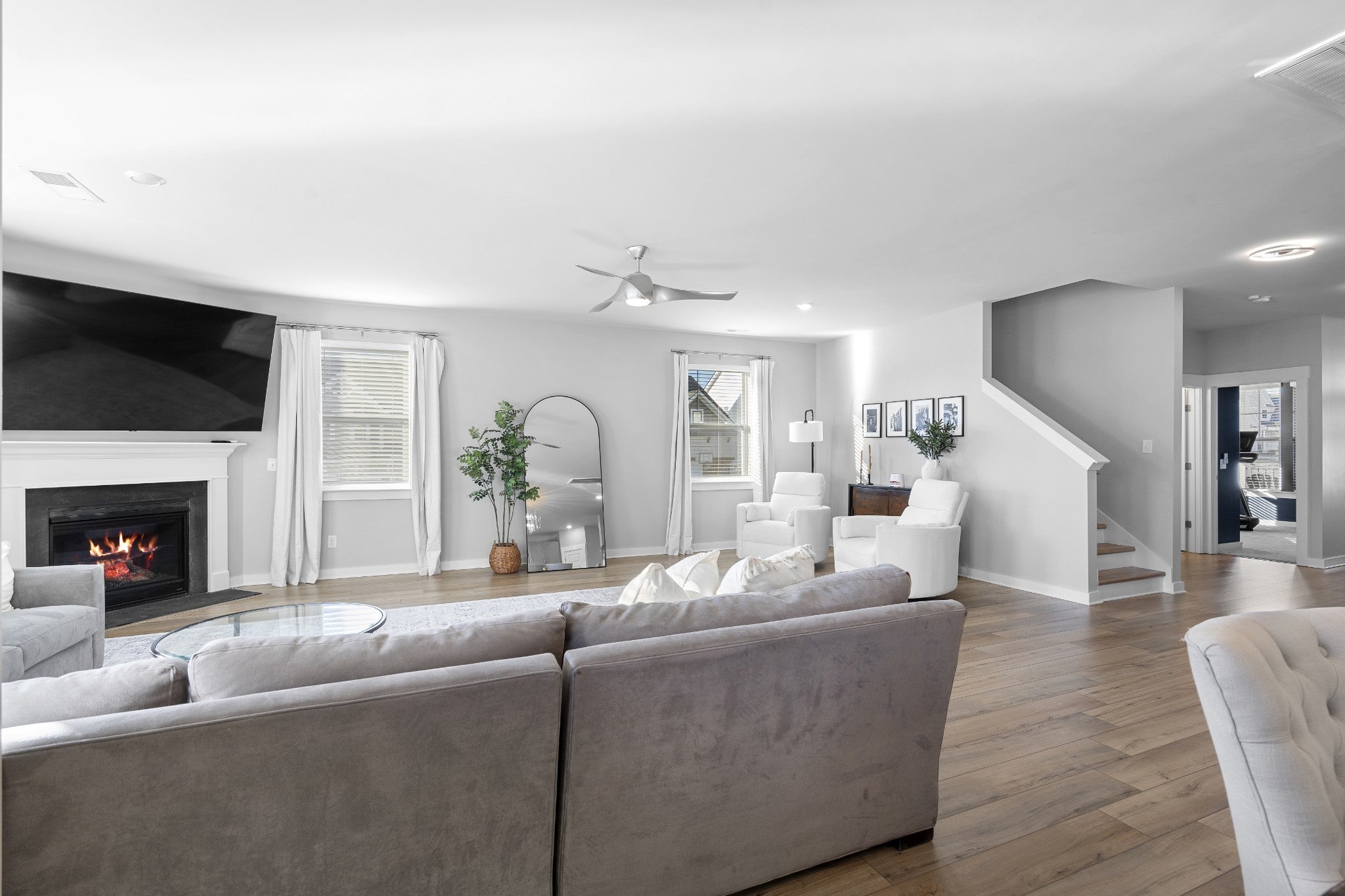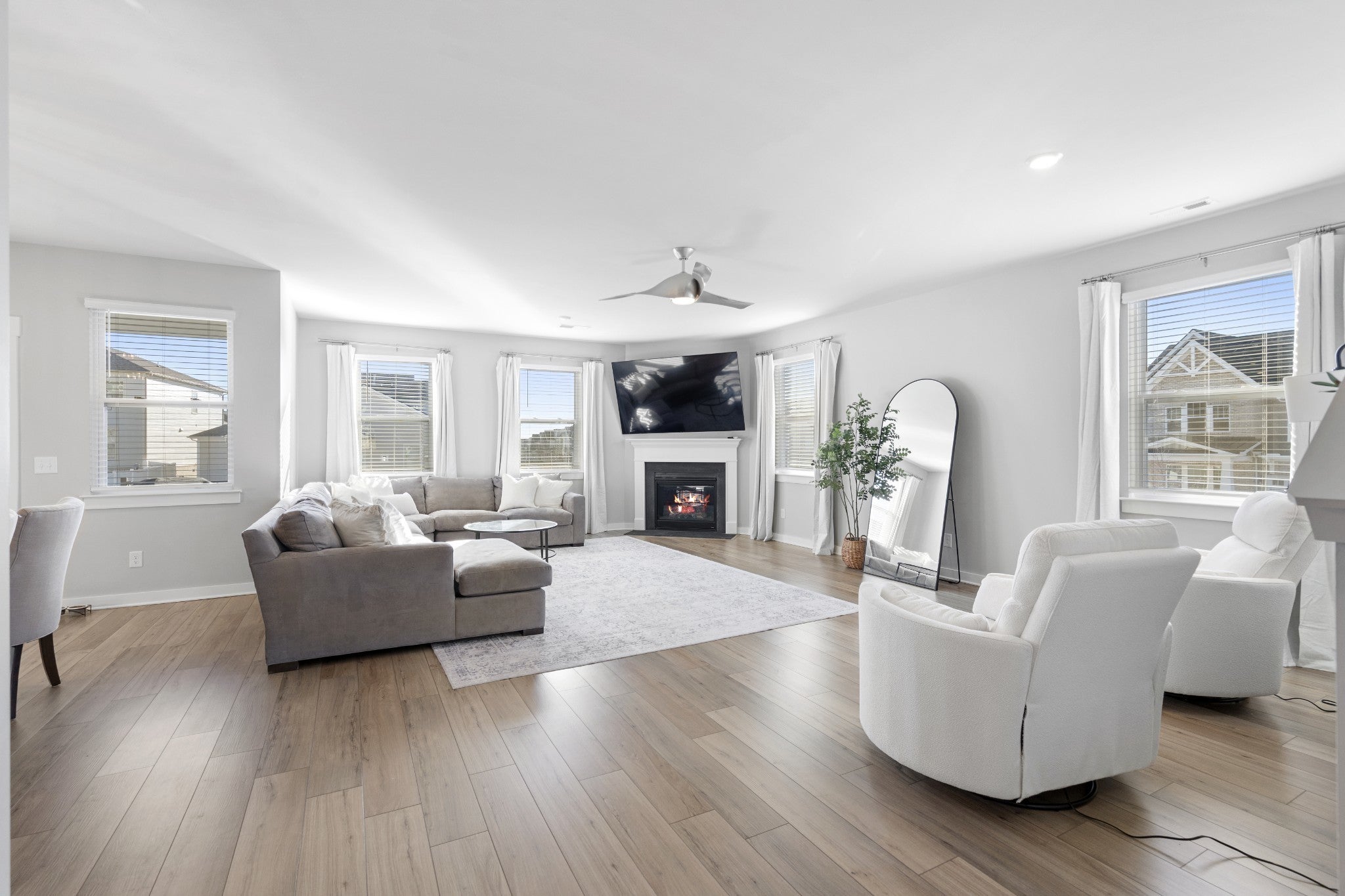 Positioned on one of the most desirable streets in Durham Farms, this corner-lot home offers a refined yet comfortable living experience with thoughtful details throughout. Natural light, clean lines, and a well-designed layout create an atmosphere that feels elevated while remaining warm and inviting, perfectly suited for both everyday living and effortless entertaining. The kitchen anchors the main level and truly serves as the heart of the home, featuring a gas range, quality finishes, and open sight lines that connect seamlessly to the surrounding living and dining spaces. Whether hosting guests or enjoying a quiet night in, the flow of the home feels intentional and functional without sacrificing style. Upstairs, the home continues to impress with a spacious and flexible layout. A generous flex space provides versatility for a home office, playroom, media room, or additional lounge area, while the oversized primary suite offers a true retreat with ample space to unwind. Each room reflects the care and pride of ownership evident throughout the home. Practical luxury is found in the details, including a three-car garage with epoxy-finished floors that adds both durability and a polished aesthetic. Outside, the fully fenced backyard with sod and irrigation creates a private, low-maintenance extension of the living space, ideal for relaxing or entertaining from day one. Exceptionally well maintained and thoughtfully designed, this home presents a rare opportunity to secure a turn-key property on one of Durham Farms’ most coveted streets. During the holidays, Hollyhock truly shines, and this home captures that charm year-round in one of Hendersonville’s most sought-after communities.