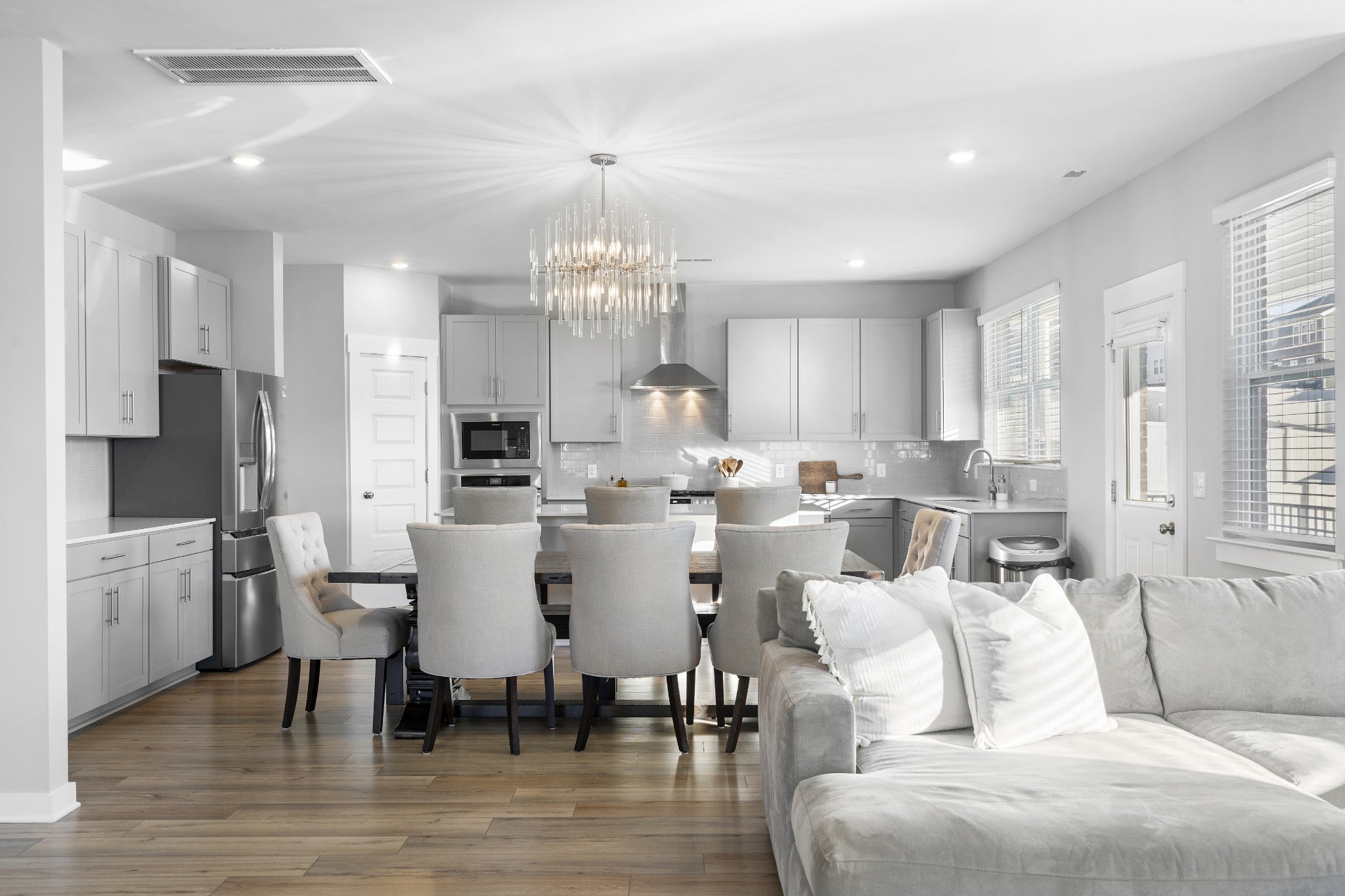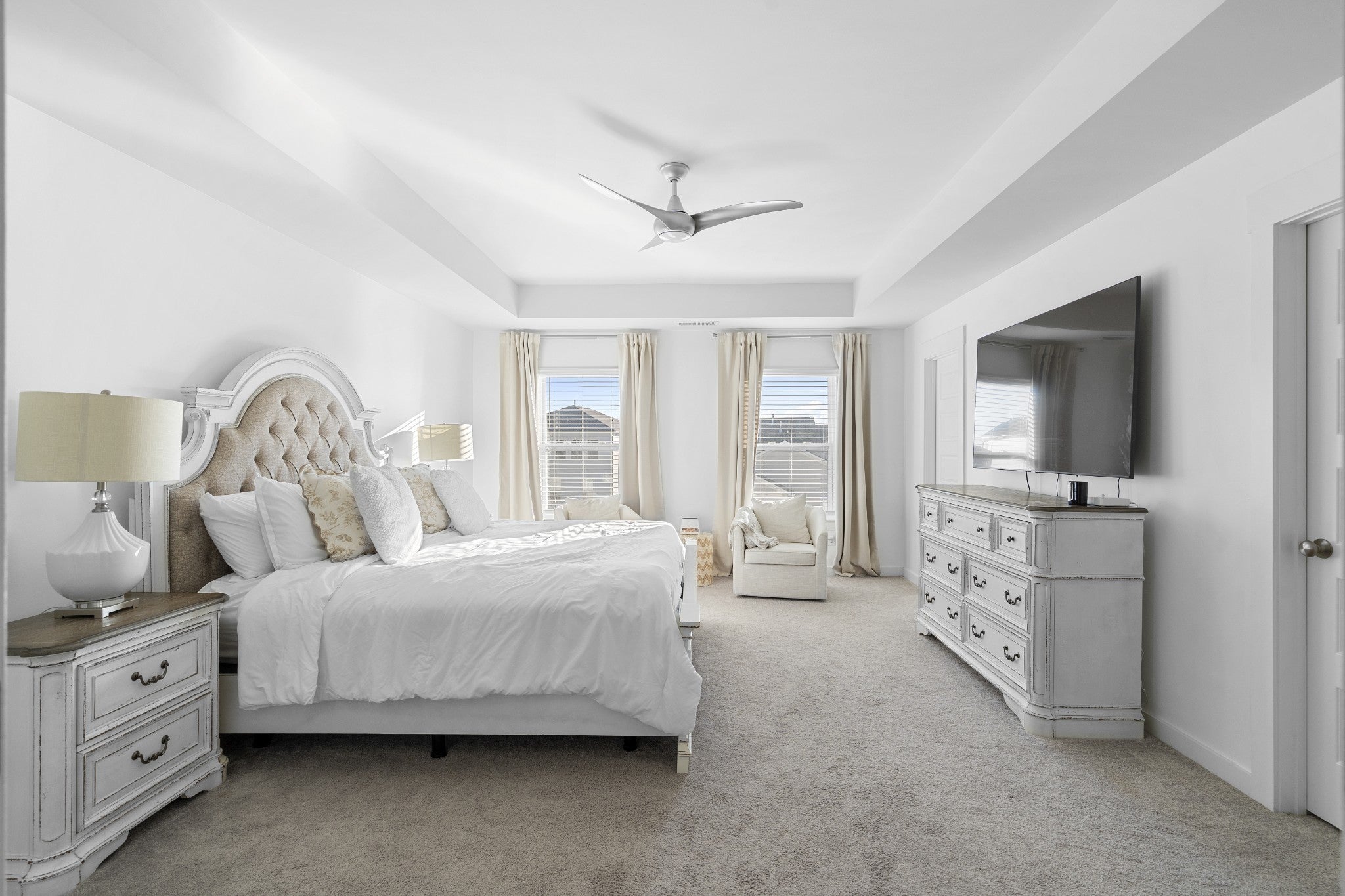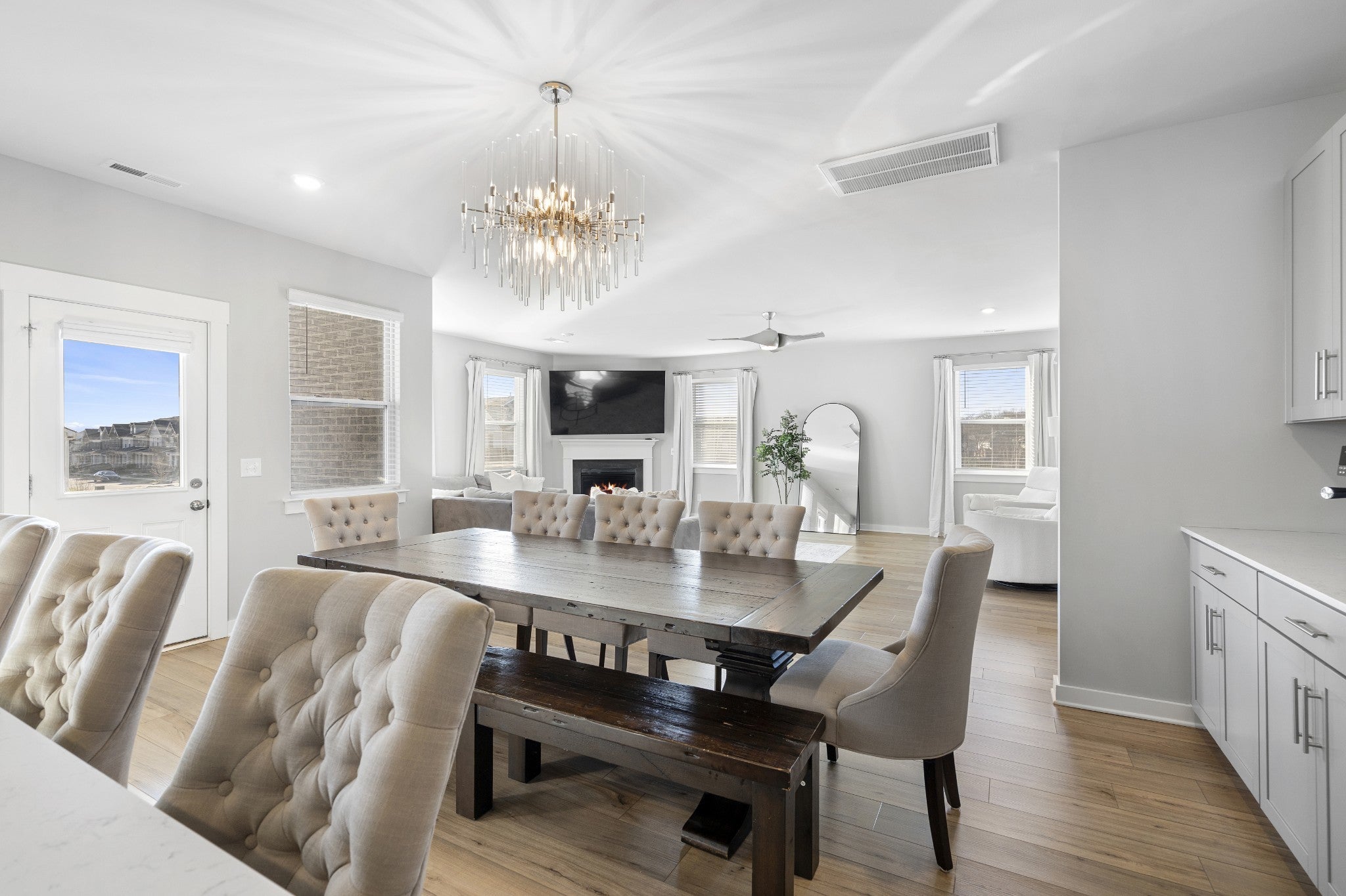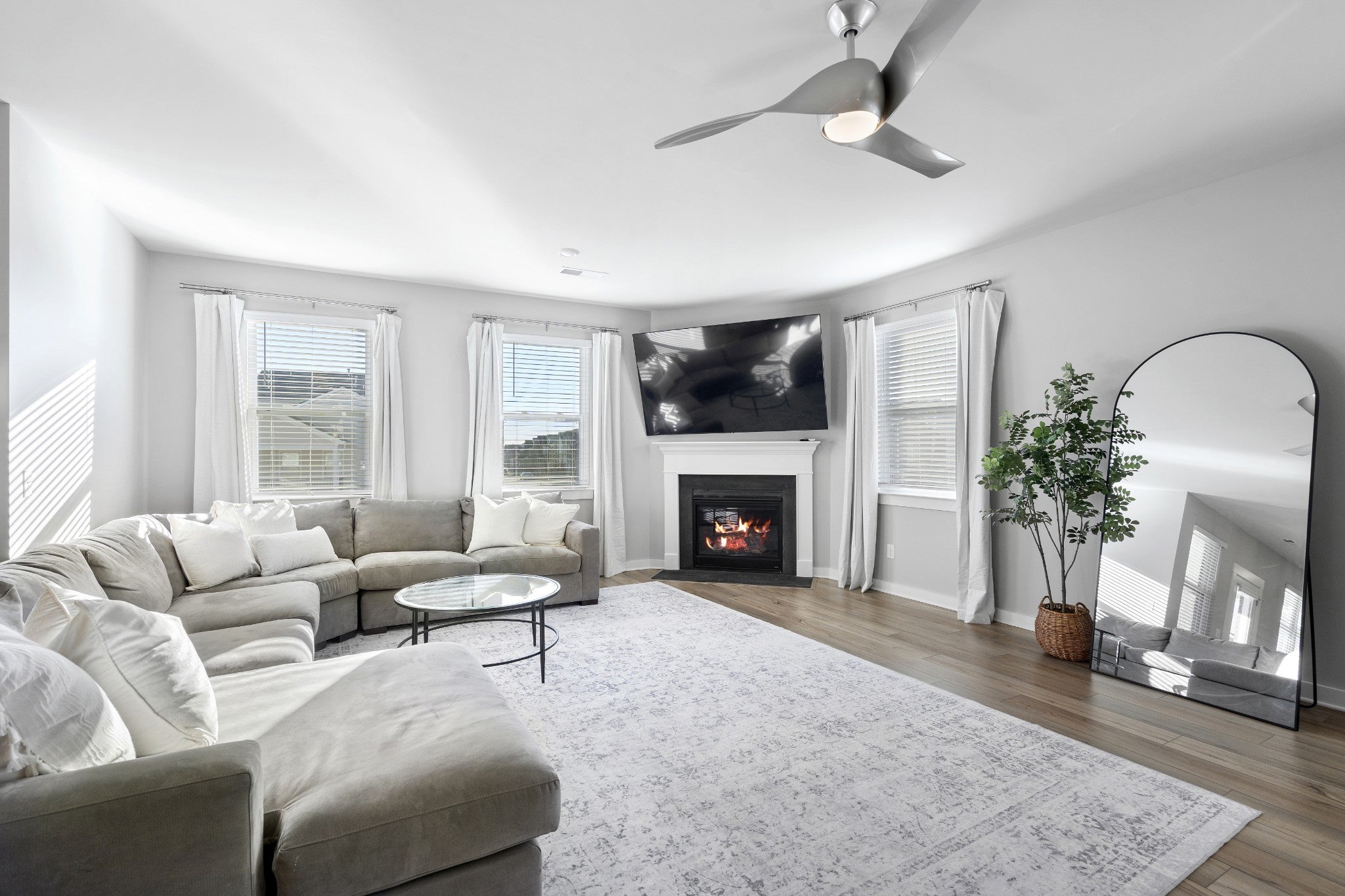 Positioned on one of the most desirable streets in Durham Farms, this corner-lot home offers a refined yet comfortable living experience with thoughtful details throughout. Natural light, clean lines, and a well-designed layout create an atmosphere that feels elevated while remaining warm and inviting, perfectly suited for both everyday living and effortless entertaining. The kitchen anchors the main level and truly serves as the heart of the home, featuring a gas range, quality finishes, and open sight lines that connect seamlessly to the surrounding living and dining spaces. Whether hosting guests or enjoying a quiet night in, the flow of the home feels intentional and functional without sacrificing style. Upstairs, the home continues to impress with a spacious and flexible layout. A generous flex space provides versatility for a home office, playroom, media room, or additional lounge area, while the oversized primary suite offers a true retreat with ample space to unwind. Each room reflects the care and pride of ownership evident throughout the home. Practical luxury is found in the details, including a three-car garage with epoxy-finished floors that adds both durability and a polished aesthetic. Outside, the fully fenced backyard with sod and irrigation creates a private, low-maintenance extension of the living space, ideal for relaxing or entertaining from day one. Exceptionally well maintained and thoughtfully designed, this home presents a rare opportunity to secure a turn-key property on one of Durham Farms’ most coveted streets. During the holidays, Hollyhock truly shines, and this home captures that charm year-round in one of Hendersonville’s most sought-after communities.
