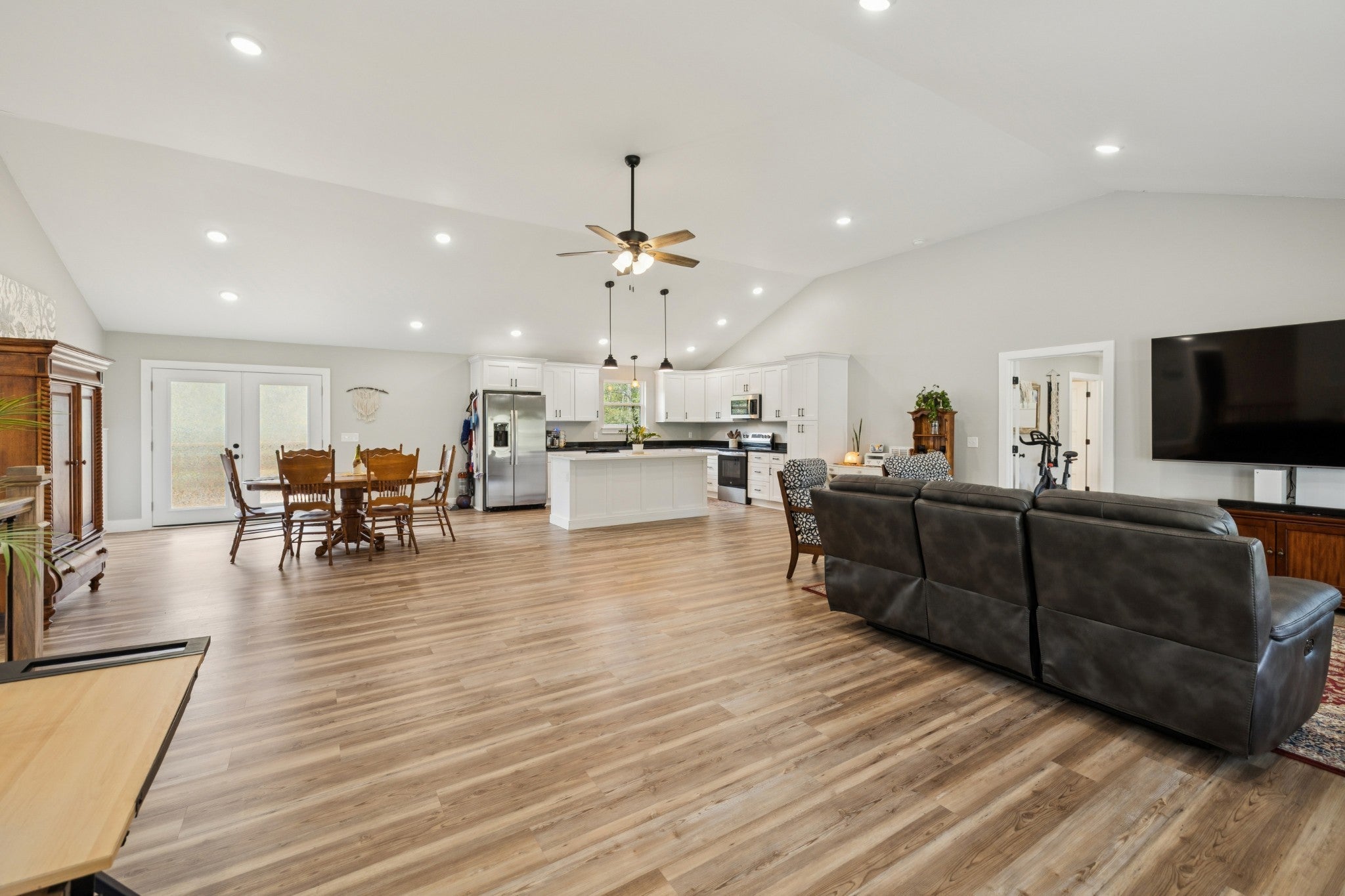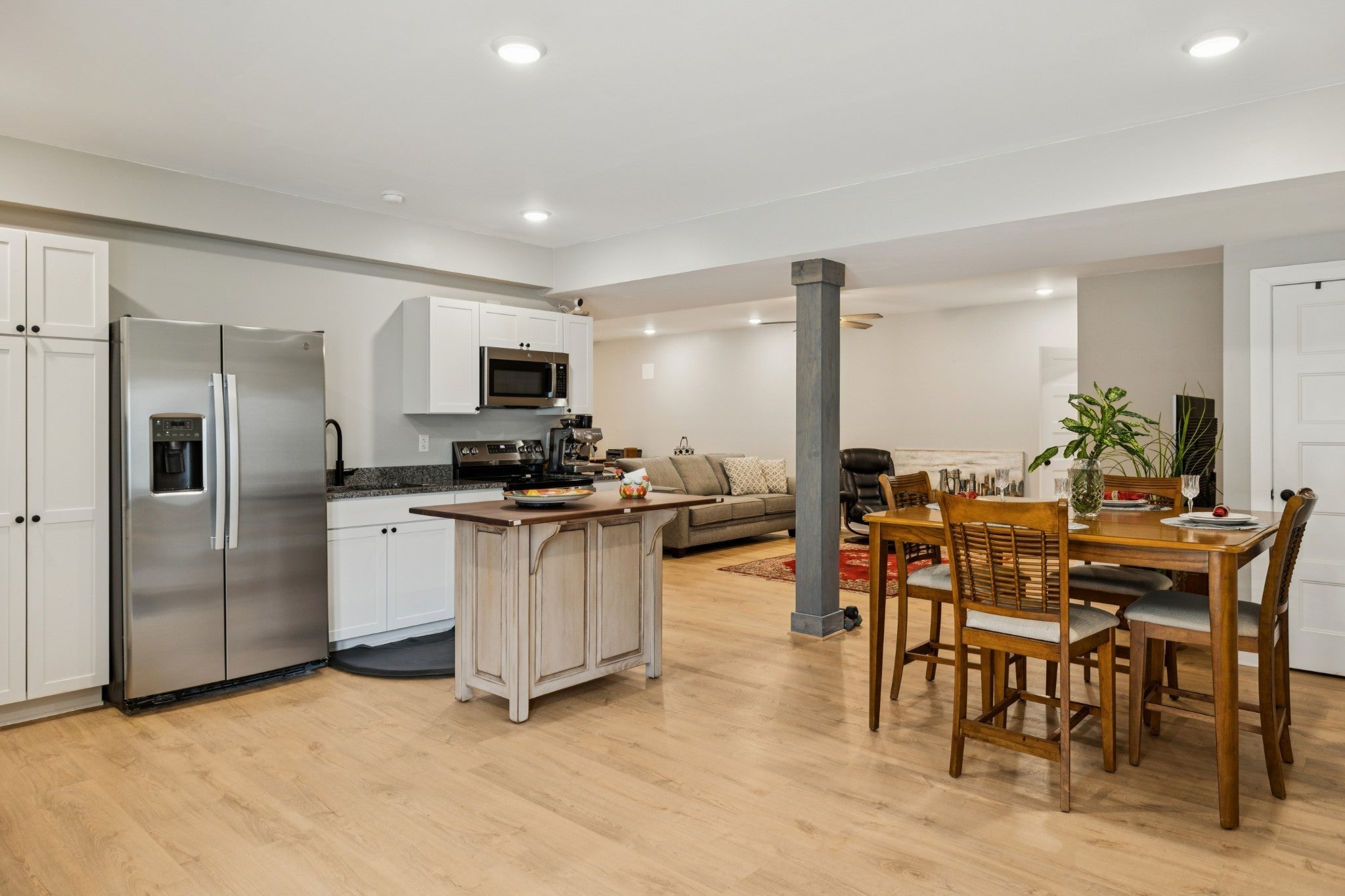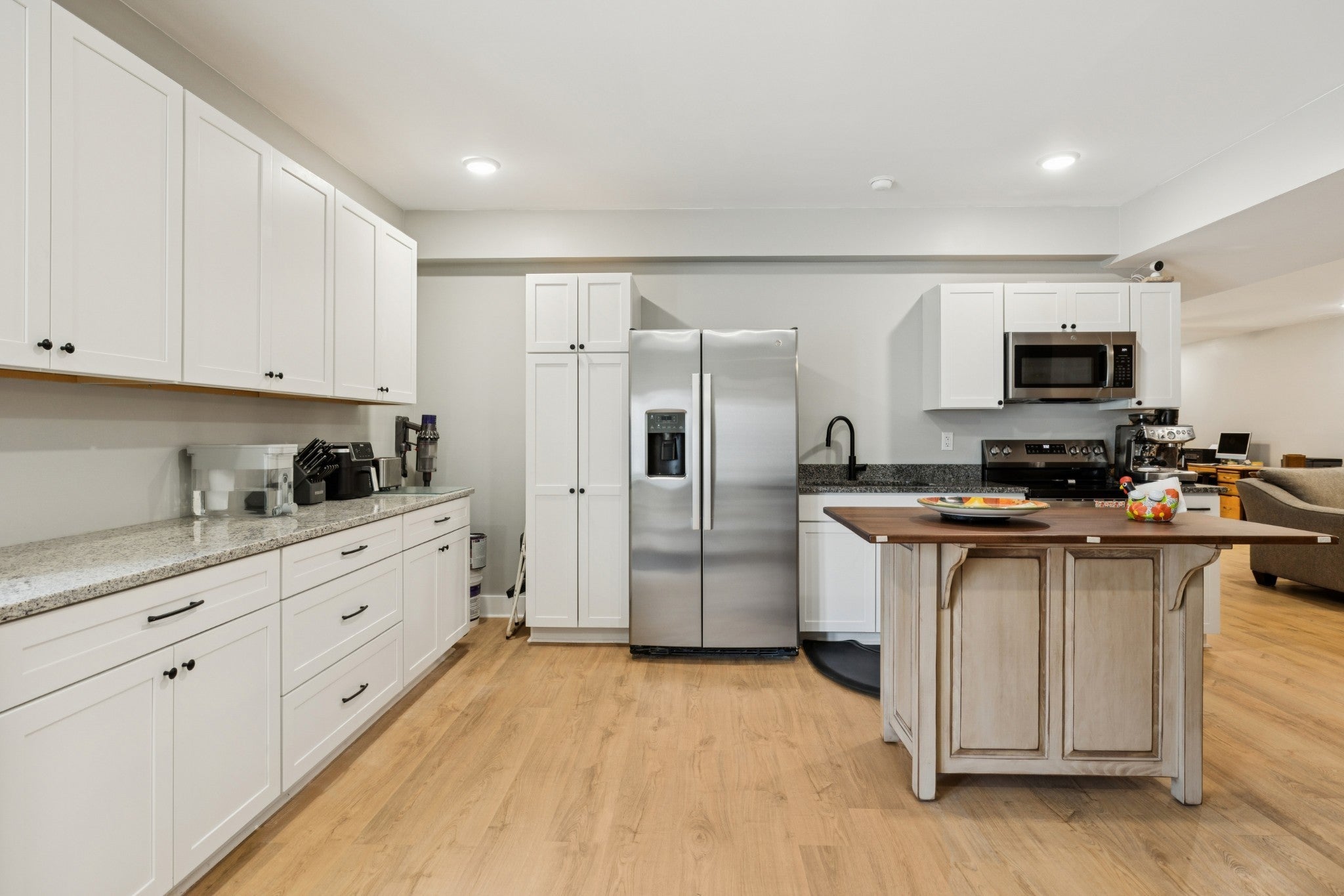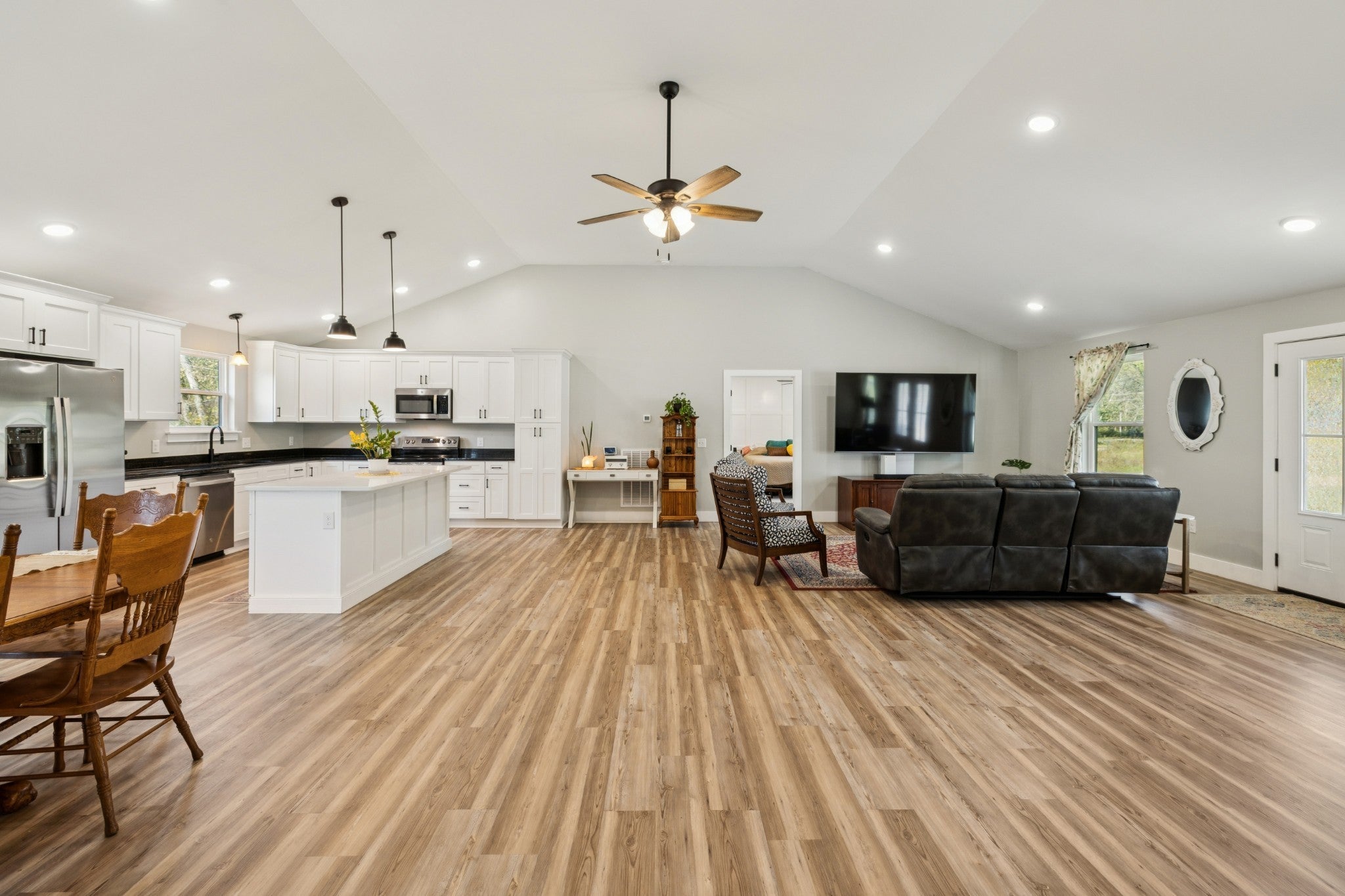 Perfect setup for multi-generational living with one level on the main and a fully finished basement! This 4 BR / 3 BA home offers a spacious main level with an open-concept floor plan, vaulted ceilings, and 3 bedrooms/2 baths on main floor. The kitchen boasts white cabinetry, built-in pantry cabinets, granite countertops, stainless appliances, and a large island. The finished basement with upgraded insulated ceilings is currently used as a mother-in-law suite, complete with a full kitchen, living room, utility area, and a spacious bedroom with a full bath. Covered front porch with fenced front yard, spacious back deck, gutter guards. Current owner invested $28,000 in additional builder upgrades beyond the original MLS sold price. Conveniently located within walking distance to the lake and less than 1 mile to K-8 school.(island in basement will not remain). Basement washer & dryer will remain. Video & audio recording will be present in home during all showings.