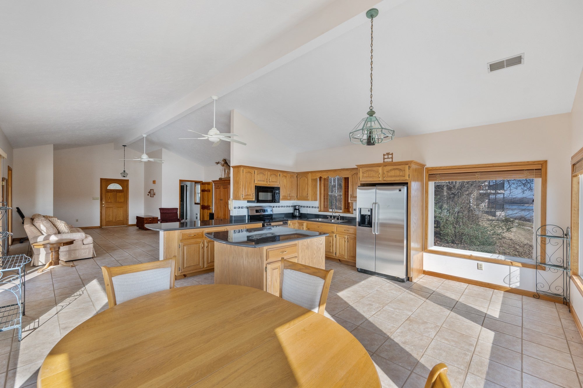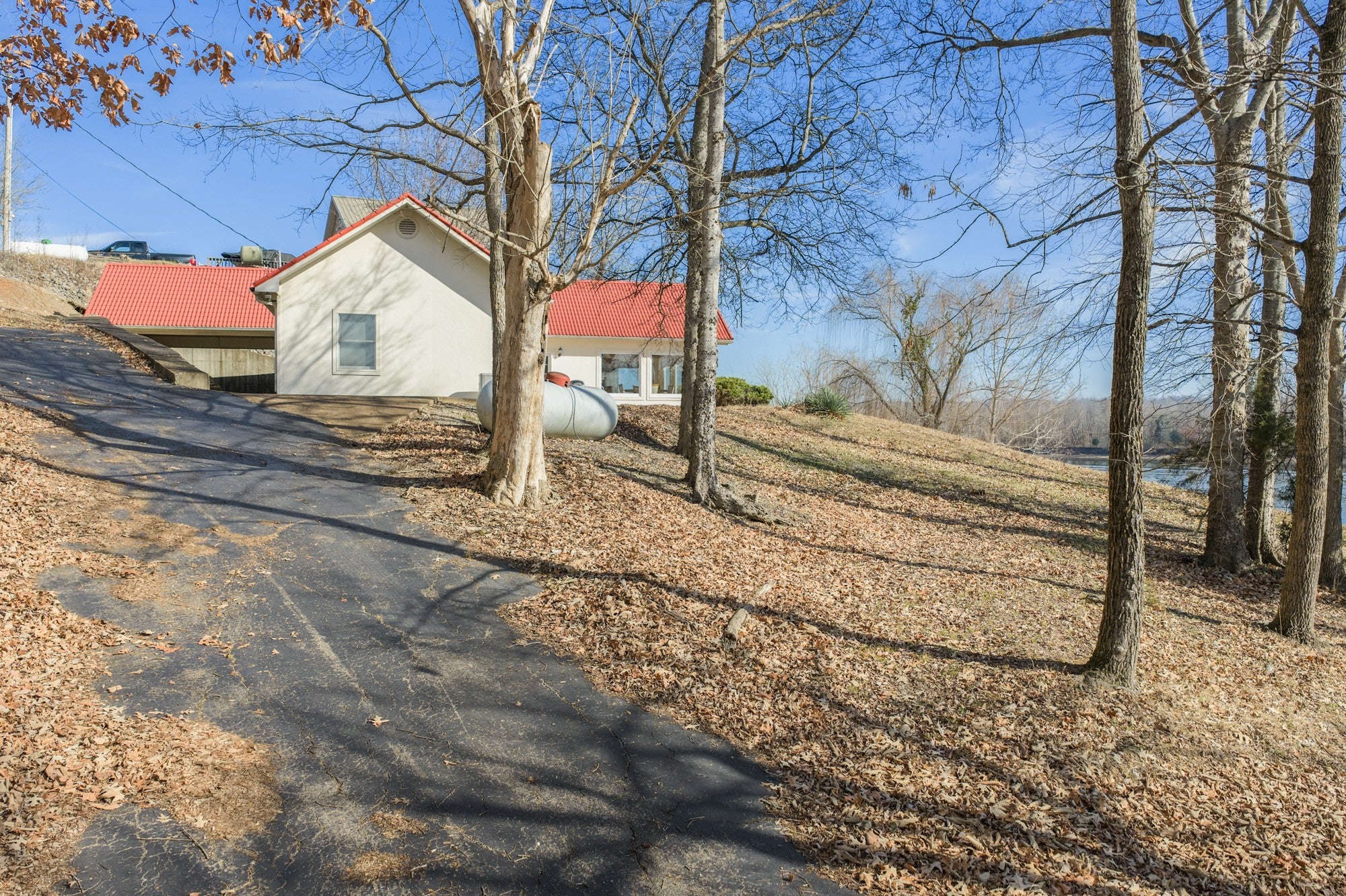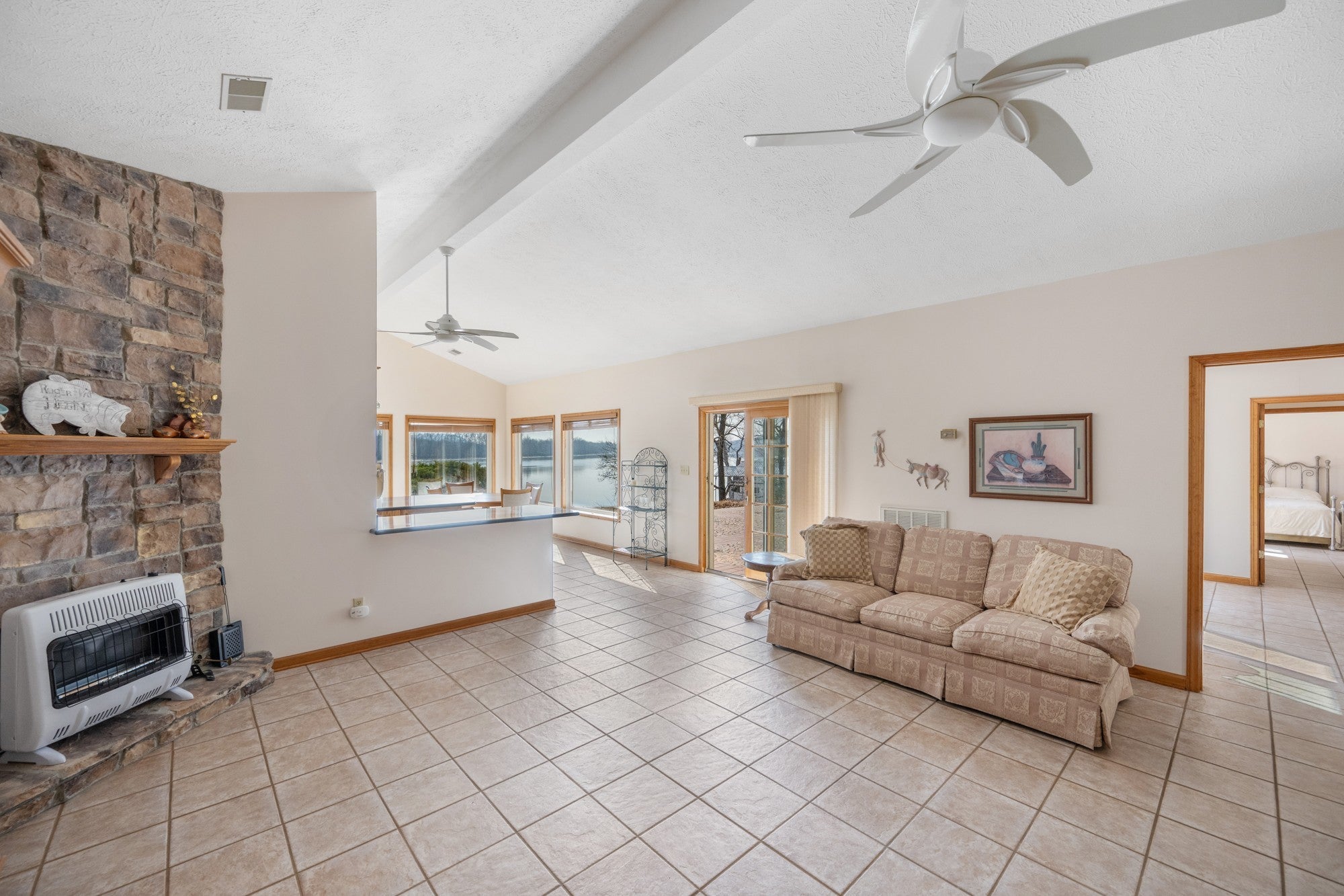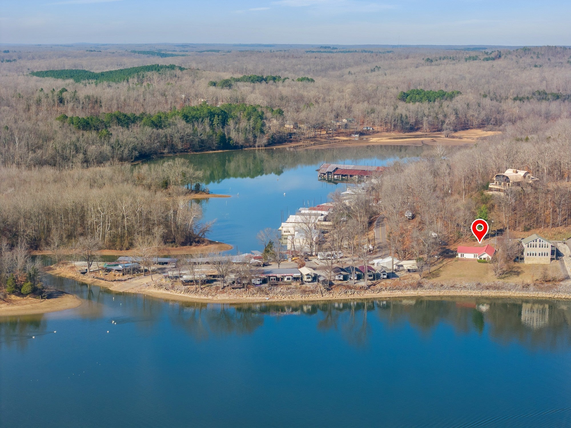 Tennessee Riverfront, fully furnished 2 BR / 2 BA home w/unobstructed north & south river views! Enjoy front-row seats to the TN River from this beautifully situated property, tucked away at the end of Cherokee Heights Rd—where the road quite literally meets the river. When the trees are in full leaf, the home is exceptionally private, resting directly on the riverbank & outside the flood zone.The resort marina is next door, offering easy walking access to your docked boat or the public boat ramp. Step inside & be instantly captivated by the sweeping water views showcased thru an impressive wall of windows. The living room features a dramatic 12-foot vaulted ceiling anchored by a striking rock fireplace, creating a warm inviting focal point. Tile flooring thru out ensures durability & easy maintenance. Whole house generator! A spacious, well-appointed kitchen includes granite countertops, a breakfast bar/island, abundant oak cabinetry, & comes fully equipped with a refrigerator, range, microwave, & dishwasher. The dining area overlooks the river, making every meal a scenic experience. Both waterview BRs open directly onto a large tiled patio, perfect for soaking in the river views. One bath is generously sized & shared, w/a laundry closet nearby, & washer/dryer included. A 2nd bath features a walk-in shower, offering added convenience for guests or everyday living. Outside, a covered carport provides ample space for boats, jet skis, side-by-sides, & vehicles, all accessed by a concrete drive. Enjoy exceptional fishing right from your doorstep on the Tennessee River, or explore the scenic creeks & tributaries across the river into Perry County’s rolling hill country. Ideal for boating, jet skiing, kayaking, skiing, floating—or simply relaxing & enjoying the views! Mins to the small TN River town of Parsons, approx 10 miles to I-40 between Memphis & Nashville. Come experience the serenity of riverfront living at Sugar Tree—directly on the banks of the TN River!