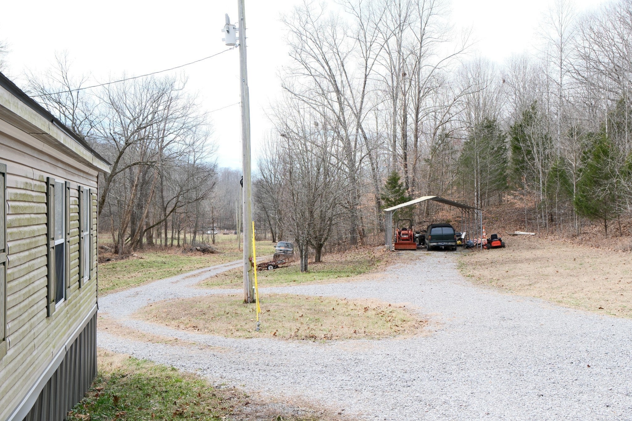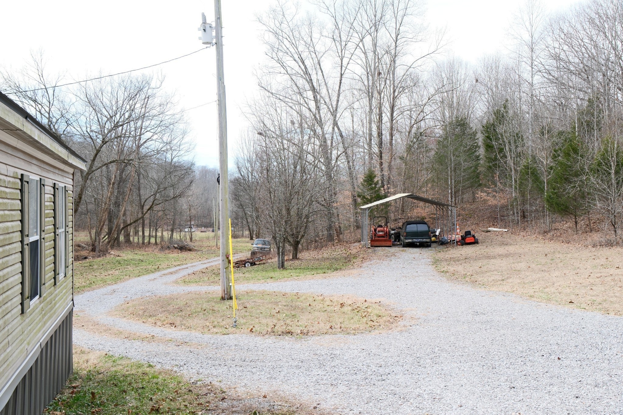 - Detached, Circular Driveway, Driveway, Gravel