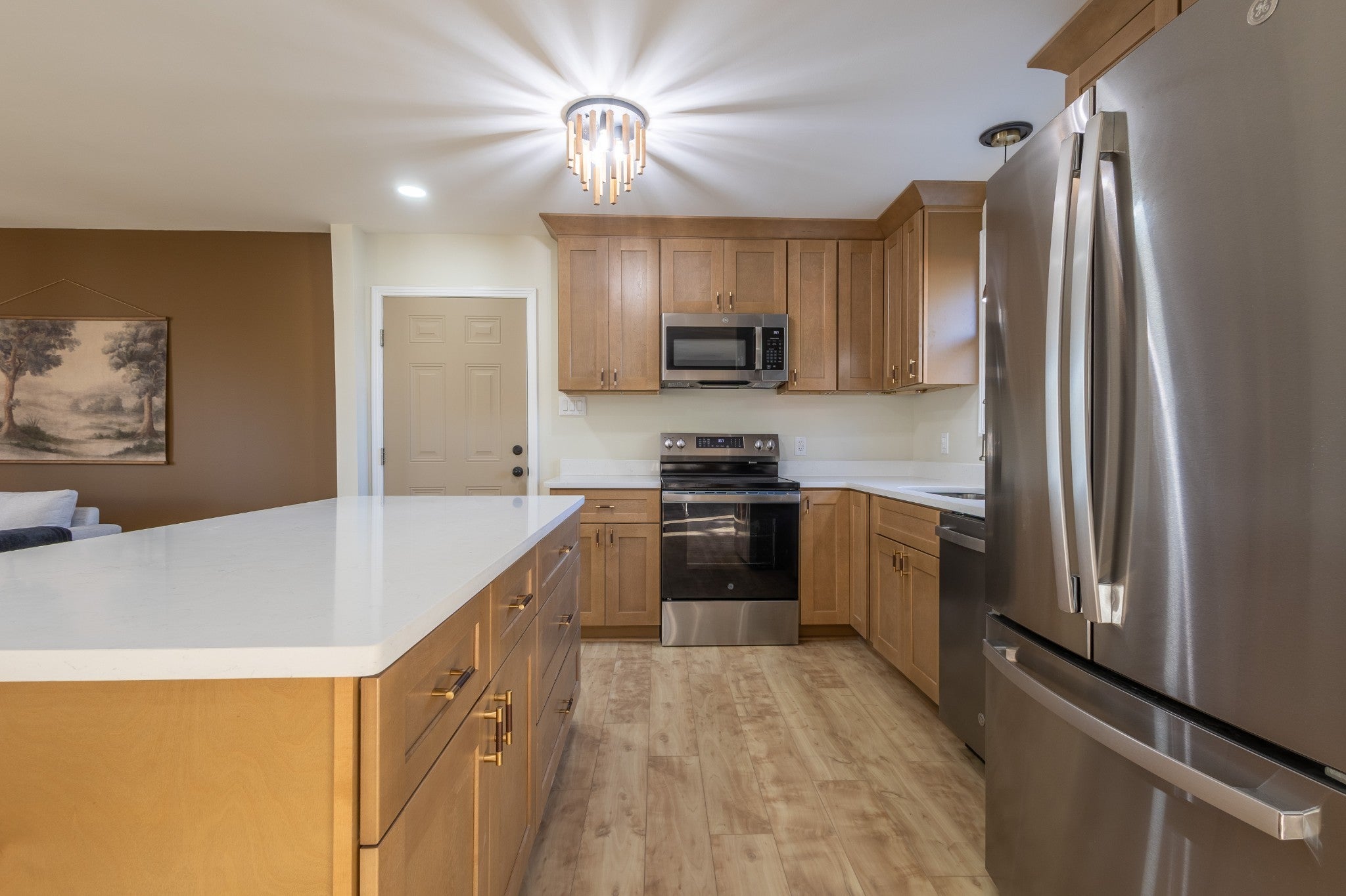 - Electric Oven, Dishwasher, Microwave, Refrigerator, Stainless Steel Appliance(s)