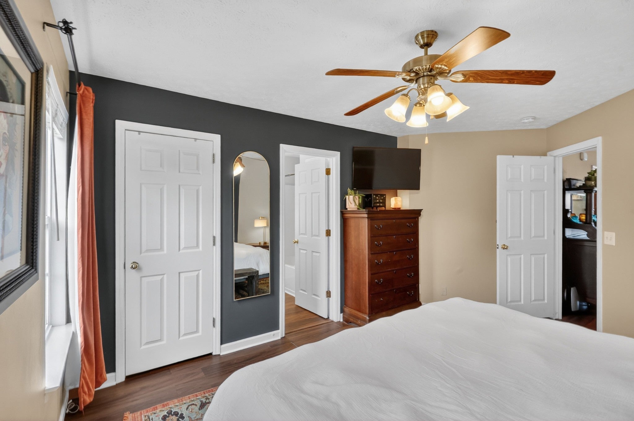 - Air Filter, Ceiling Fan(s), High Ceilings, Redecorated, Walk-In Closet(s)