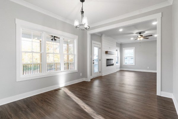 Welcome to your brand-new dream home in the heart of Sango --- Built by the esteemed Danell Welch Construction, a locally owned and operated builder known for thoughtful design and top-tier craftsmanship, this home stands out with upgraded features and a layout made for both comfort and style. From the moment you step inside the vaulted foyer, you’ll notice the light-filled, open-concept design that sets the tone for modern living. The spacious great room features a shiplap accent wall with a sleek LED electric fireplace, creating a cozy and stylish centerpiece for entertaining or relaxing. Flowing seamlessly into the open kitchen, you'll find a large center island, stainless steel appliances, trendy backsplash, granite countertops, ample cabinetry, and a generous walk-in pantry—perfect for everyday meals or hosting everyone. This floorplan also offers a formal dining room (ideal as a flex office space), an eat-in breakfast nook, and a rare FOUR bedrooms and THREE full bathrooms—plenty of room for everyone to spread out. Upstairs, the primary suite is a luxurious retreat, boasting two walk-in closets, a soaking tub, and a fully tiled glass shower with upscale finishes throughout. A spacious laundry room on the second floor adds everyday convenience. Additional highlights include plank laminate flooring throughout the main level, designer lighting, wood staircases, and finish selections you won’t find in other builds. Enjoy morning coffee on the covered front porch or unwind on the covered back deck, which overlooks a peaceful, wooded lot—a rare bonus in new construction. Located minutes from I-24, this home offers quick access to Nashville, Fort Campbell, and all that Clarksville has to offer.