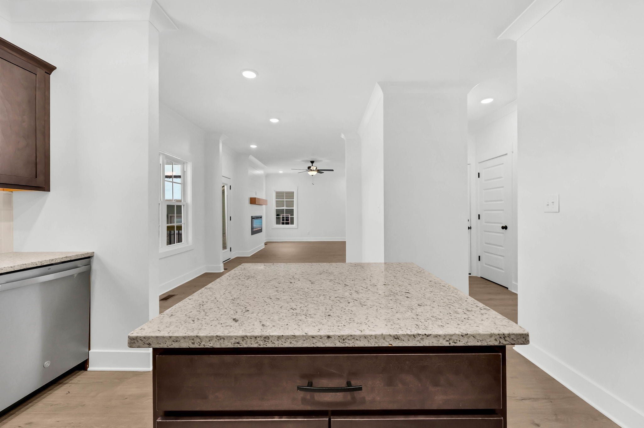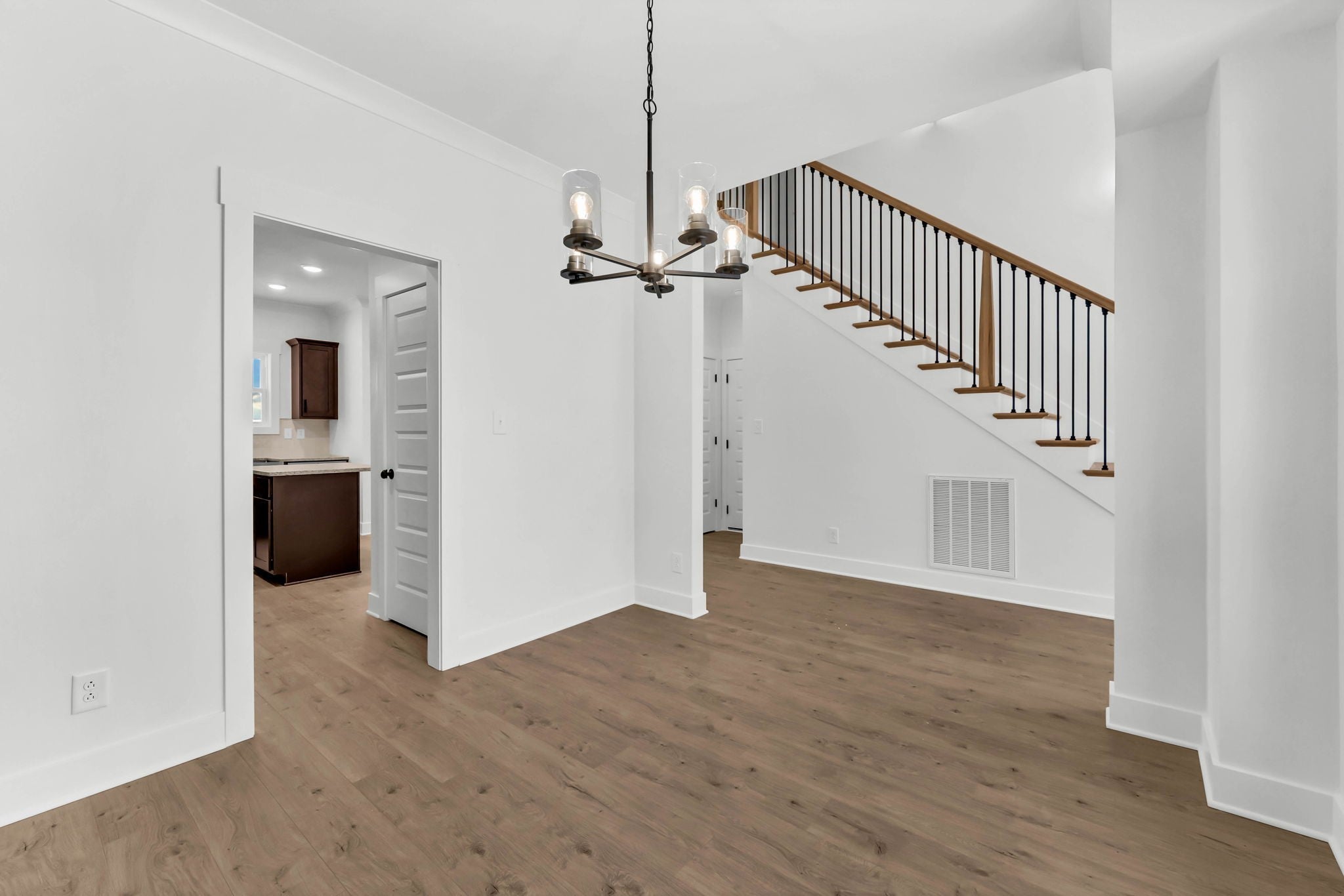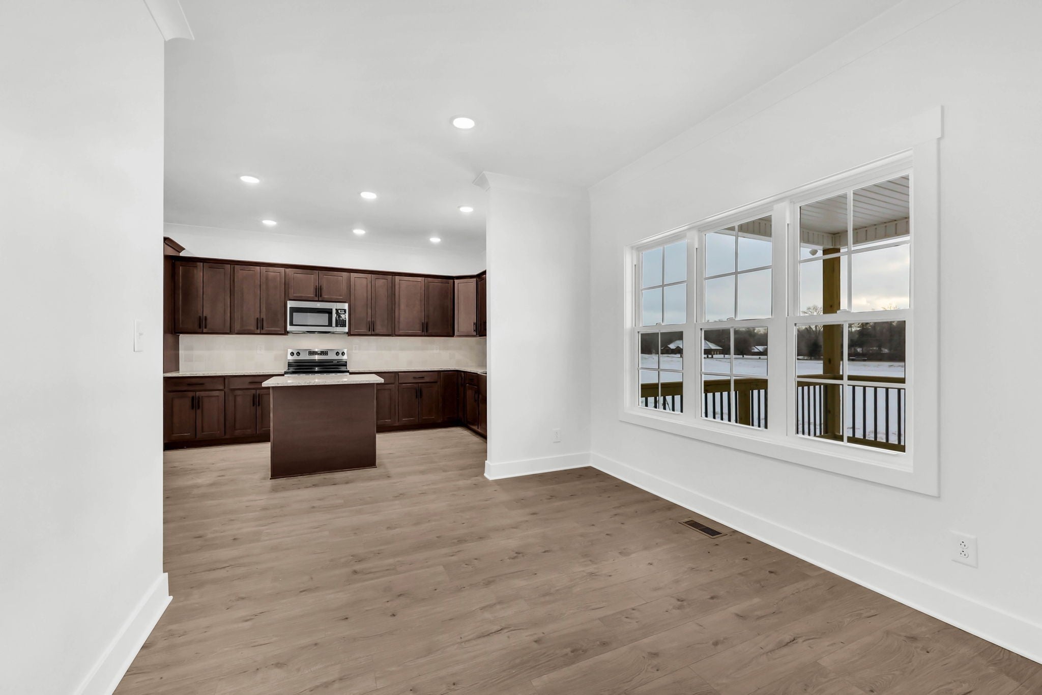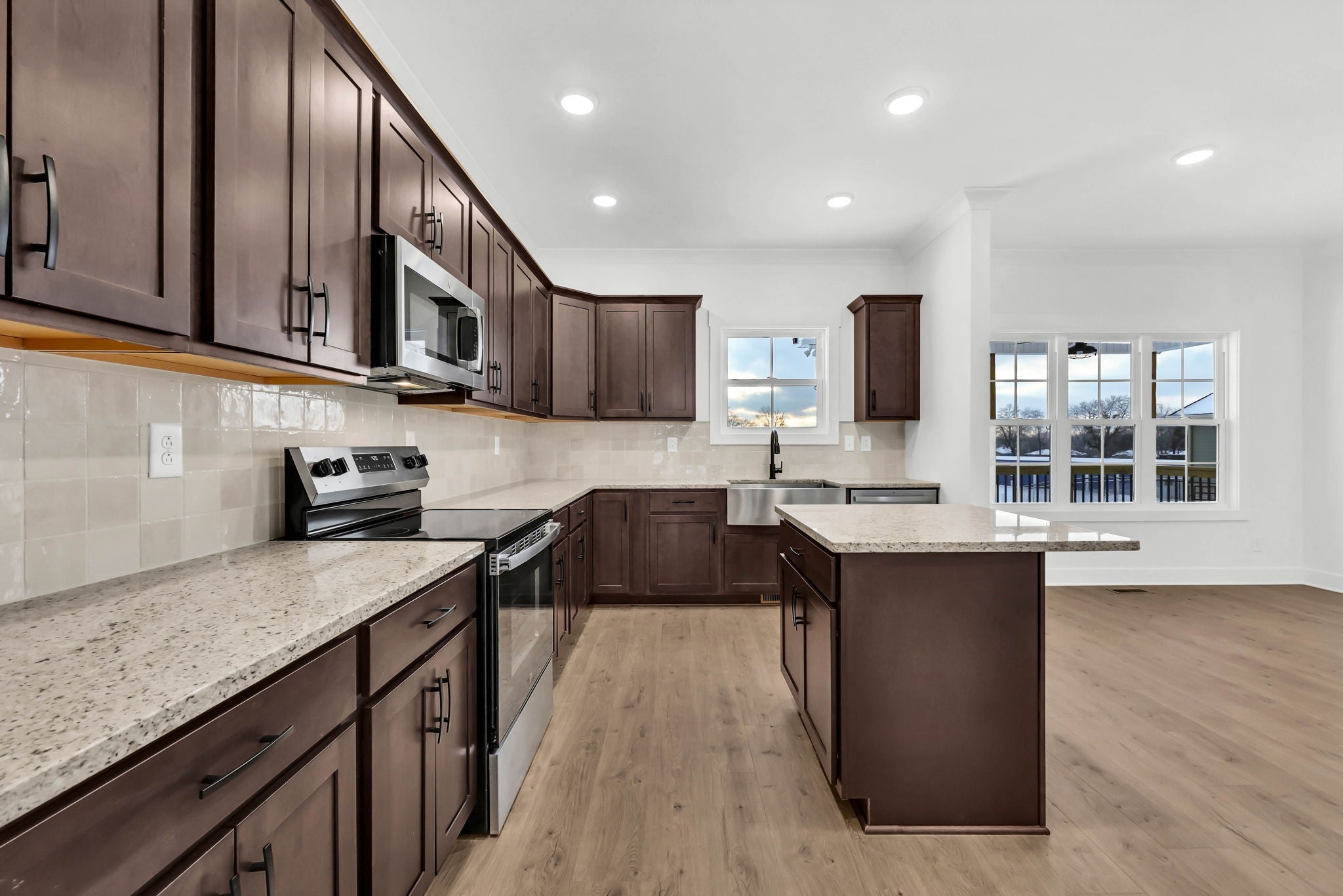 Welcome to your brand-new dream home in the heart of Sango. From the moment you step inside the vaulted foyer, you’ll notice the light-filled, open-concept design that sets the tone for modern living. The spacious great room features a shiplap accent wall with a sleek LED electric fireplace, creating a cozy and stylish centerpiece for entertaining or relaxing. Flowing seamlessly into the open kitchen, you'll find a large center island, stainless steel appliances, trendy backsplash, granite countertops, ample cabinetry, and a generous walk-in pantry—perfect for everyday meals or hosting everyone. This floorplan also offers a formal dining room (ideal as a flex office space), an eat-in breakfast nook, and a rare FOUR bedrooms and THREE full bathrooms—plenty of room for everyone to spread out. Upstairs, the primary suite is a luxurious retreat, boasting two walk-in closets, a soaking tub, and a fully tiled glass shower with upscale finishes throughout. A spacious laundry room on the second floor adds everyday convenience. Additional highlights include plank laminate flooring throughout the main level, designer lighting, wood staircases, and finish selections you won’t find in other builds. Enjoy morning coffee on the covered front porch or unwind on the covered back deck, which overlooks a peaceful, wooded lot—a rare bonus in new construction. Located minutes from I-24, this home offers quick access to Nashville, Fort Campbell, and all that Clarksville has to offer.