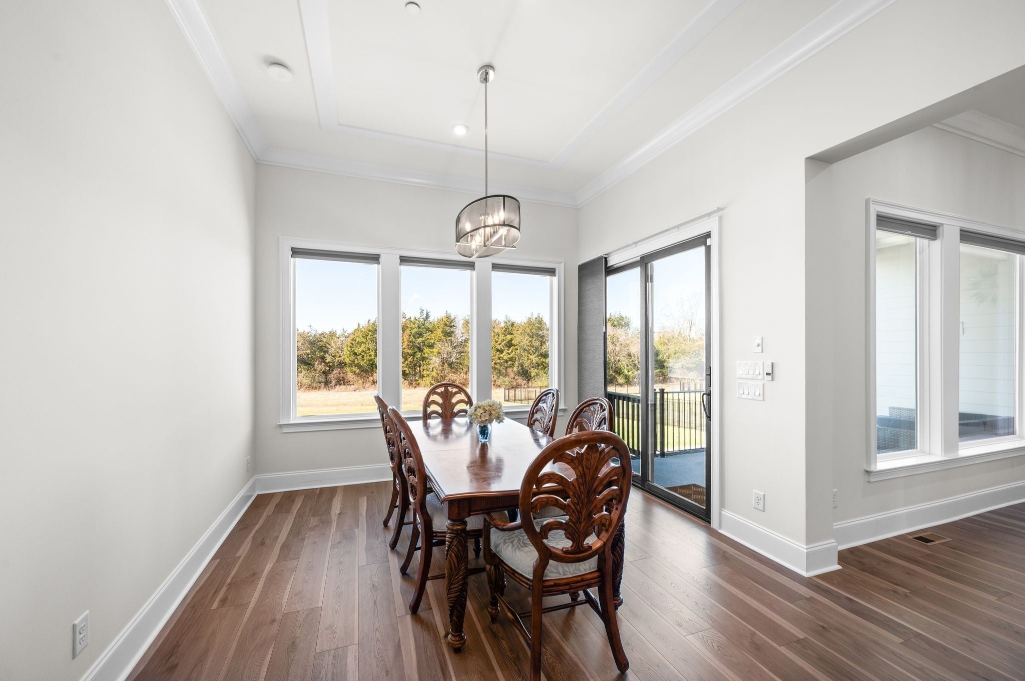 NEW PRICE on this custom built home with 5 bedrooms and 4.5 baths. This home features an open floor plan and luxurious upgrades throughout. Located on one of the largest level lots in Annecy, at the end of cul-de-sac and backs to woods. Enjoy the views from first or second floor on one of the outdoor living areas: like the 4th of July fireworks. Gourmet kitchen has an oversized island and walk-in pantry and a work room with extra cabinets, countertop space and wet bar. The second main level bedroom could be a 2nd primary bedroom with large walk-in closet. The third main level bedroom is currently used as an office with a large walk-in closet. Home theater is 32x12. This home offers many Smart Features: WiFi with 3 more access points. Conduit added to attic & crawlspace to add to any room. All outdoor lights turn on when the garage door opens after dark. Kitchen sink disposal turn on with voice command, All lights turn off at midnight if left on, when back door opens at night, the back porch and backyard lights turn on. Remote blinds, front porch and driveway lights turn on when front door is opened. Bathroom exhaust fans turn on automatically when humidity is detected. Media streaming available. All lights are voice-controlled. Power plugs installed in the eaves of front and back porch for holiday/eave lights. Outdoor access point installed for extended outdoor Wi-Fi coverage. Smart garden sprinkler system installed. Sprinklers available in the raised vegetable bed. This home offers everything you need. Perfect yard for Oasis pool.
