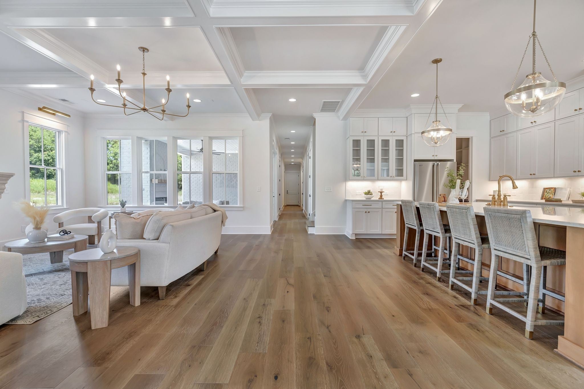 Gorgeous DeFatta Custom Home now available in the highly desirable community of Stephens Valley! This beautifully designed residence offers 4 spacious bedrooms—including two on the main level—an enclosed office, formal dining room, expansive bonus room, walk-in pantry, and a charming side porch complete with a cozy fireplace. From the moment you arrive, you'll be greeted by timeless curb appeal with gorgeous lanterns, double French doors, and an oversized entryway that creates a stunning first impression. The private office sits just off the foyer, while the formal dining room is perfectly positioned for entertaining. The heart of the home is the great room, featuring a striking coffered ceiling and elegant fireplace. The adjacent chef’s kitchen boasts a 10-foot island with hidden rear cabinetry, ceiling-height custom cabinets, luxurious Viking appliances, two-toned finishes, and abundant natural light—making it both functional and beautiful. A true showstopper, the walk-in pantry includes a built-in beverage center, quartz countertops, and additional cabinetry for seamless organization and storage. The primary suite offers a relaxing retreat with a cathedral ceiling, double vanities with a linen tower, a freestanding soaking tub, and a walk-in shower. The spacious walk-in closet ensures plenty of storage. Each secondary bedroom includes its own en suite bath for ultimate privacy and convenience. Additional highlights include a dream laundry room, gorgeous hardwood floors throughout, and thoughtful touches that elevate everyday living. Experience exceptional quality, design, and lifestyle in one of Williamson County’s premier communities—this is luxury living at its finest in Stephens Valley.