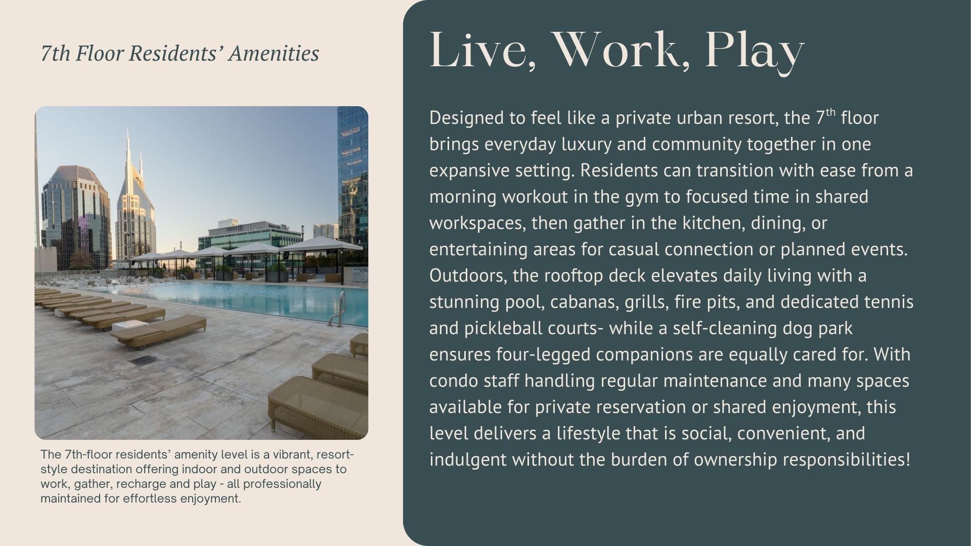 Experience refined urban living at the prestigious 505 Nashville, located in the heart of downtown. This beautifully appointed 1-bedroom, 1-bath residence offers 513 square feet of thoughtfully designed space, highlighted by floor-to-ceiling windows with breathtaking skyline and sunset views. The open-concept layout features a sleek modern kitchen with stainless steel appliances, in-unit laundry, and custom closet systems that maximize both style and functionality. Enjoy serene evenings with stunning views high above the city! Residents of 505 Nashville enjoy an exceptional collection of resort-style amenities, including a rooftop pool with cabanas, tranquil sitting pool, state-of-the-art fitness center, pickleball and tennis courts, resident lounges, professional meeting spaces and business center, dedicated dog park, 24-hour concierge service, valet parking, and complimentary coffee in the community lounge. Just moments from Broadway, the Ryman Auditorium, Bridgestone Arena, Printers Alley, and Nashville’s premier dining and entertainment. Ideal as a primary residence, refined weekend retreat, or investment opportunity.