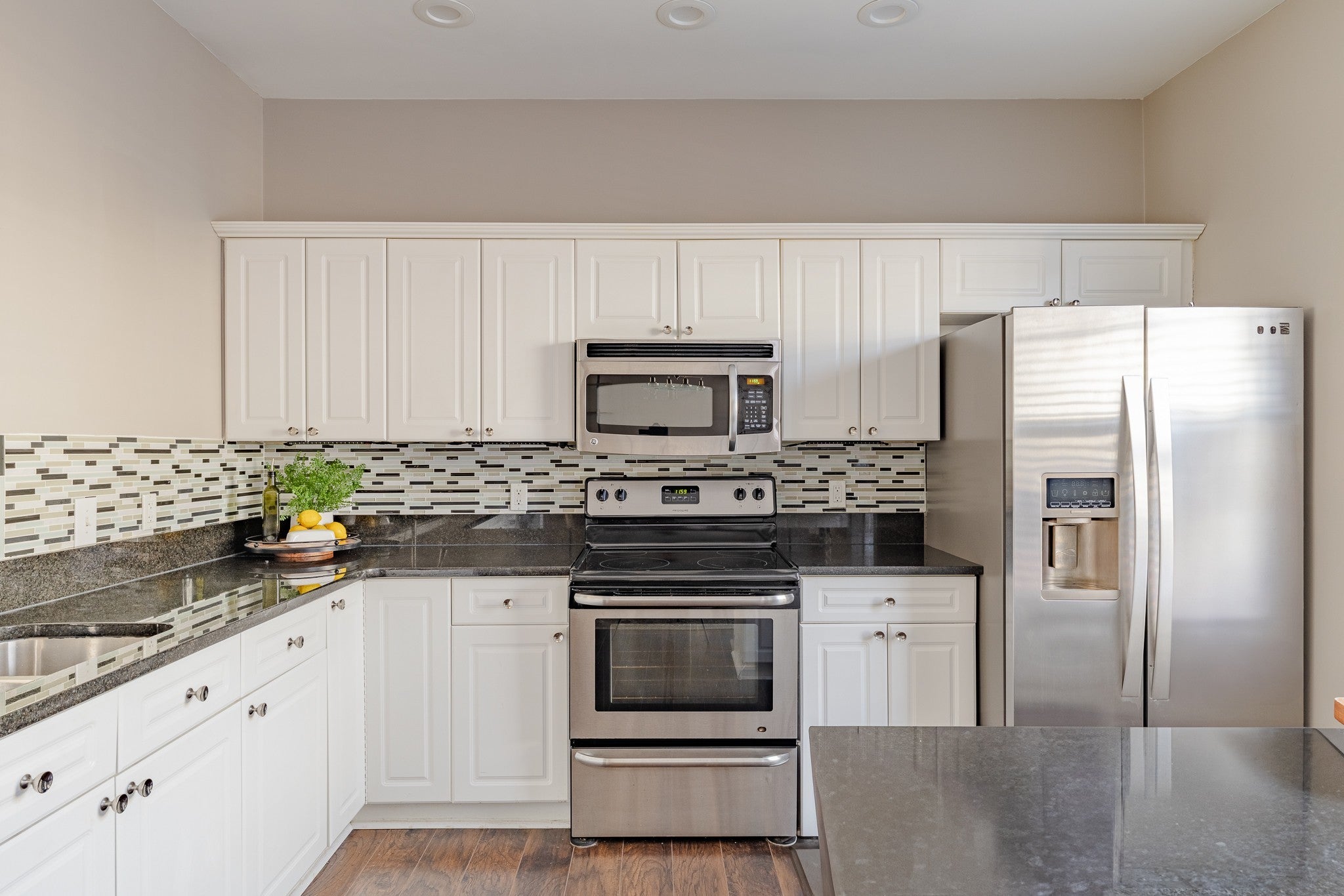 - Electric Range, Dishwasher, Disposal, Microwave, Refrigerator