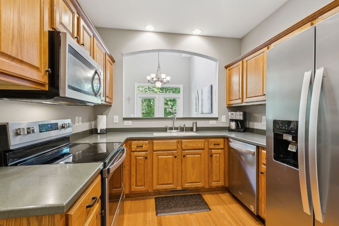 - Built-In Electric Range, Dishwasher, Disposal, Dryer, Microwave, Refrigerator, Stainless Steel Appliance(s), Washer