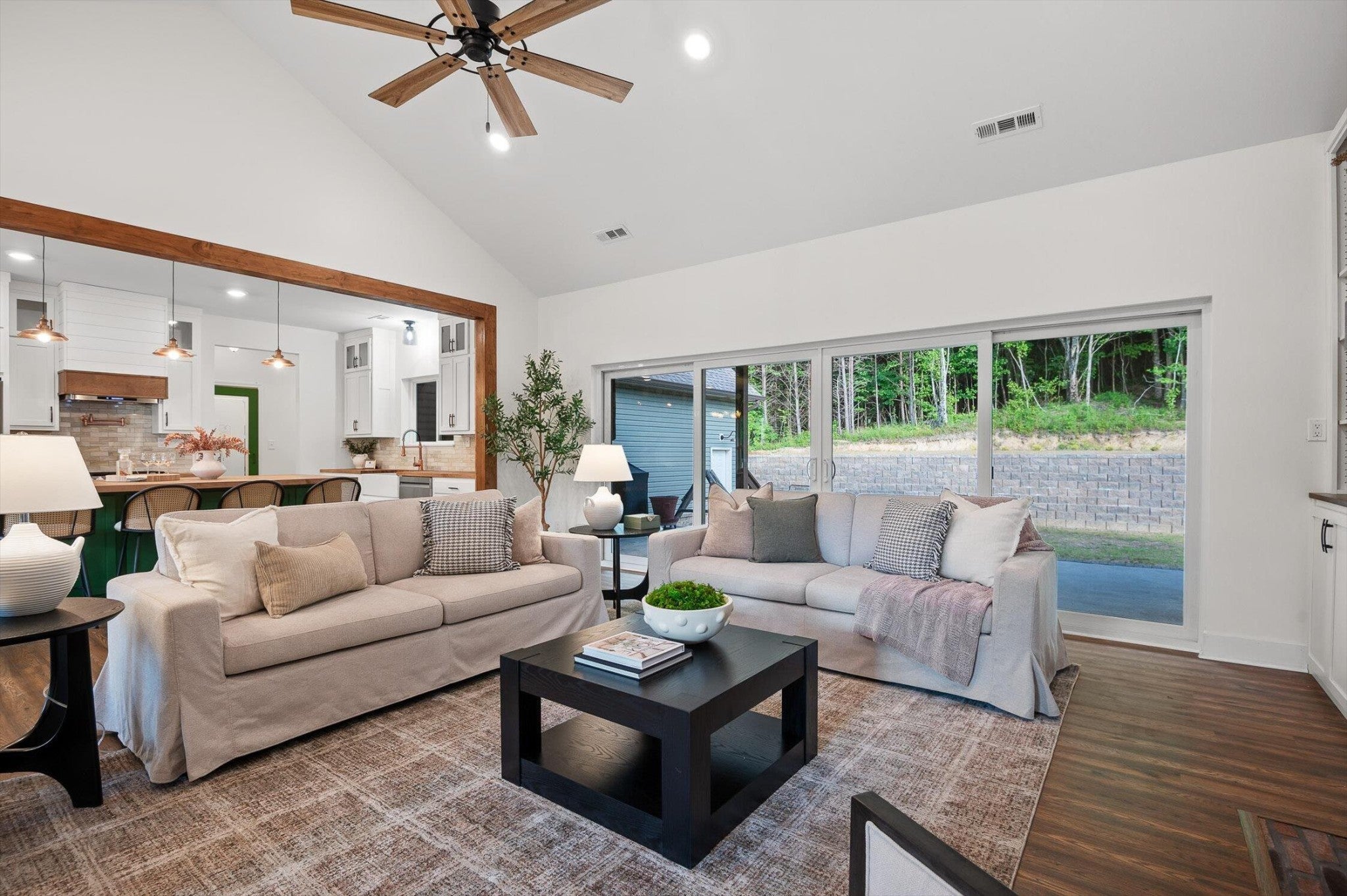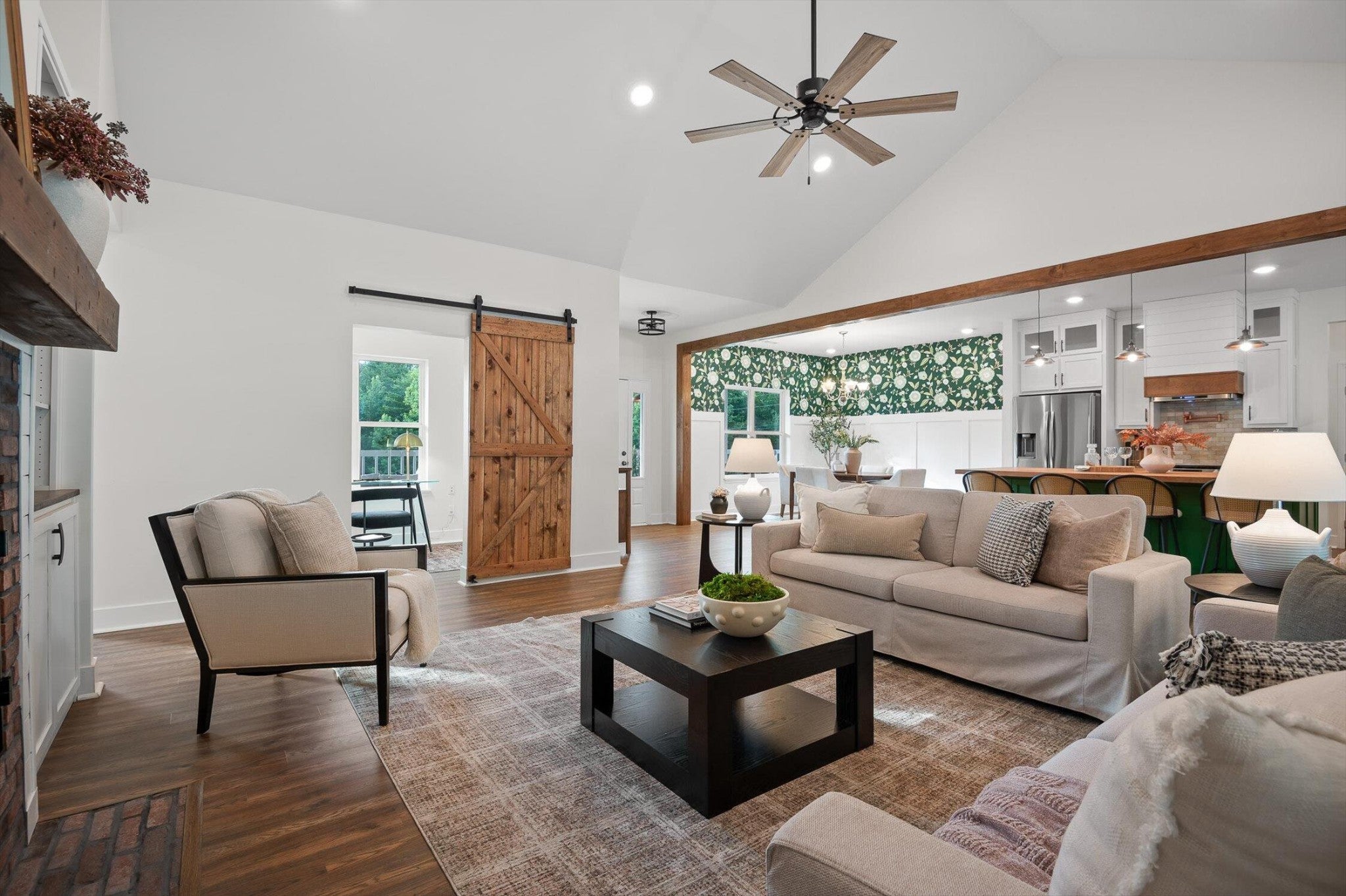 - Bookcases, Ceiling Fan(s), High Ceilings, Open Floorplan