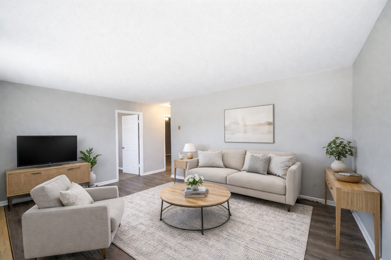 Welcome to our 2 Bed 1 Bath apartment located in the vibrant city of Clarksville, TN. This spacious apartment offers two bedrooms and one bathroom, providing ample space for your need. The apartment features an inviting eat-in kitchen, perfect for enjoying meals. Stay comfortable year-round with ceiling fans that provide a refreshing breeze during warmer months. The common areas boast vinyl plank flooring, adding a touch of elegance to your living space, while the plush carpet in the bedrooms offers a cozy retreat. Step back in time with the retro bathroom, adding a unique charm to your daily routine. For your convenience, washer and dryer hook-ups are available, making laundry a breeze. Step outside onto your patio and enjoy the fresh air and sunshine. We understand that pets are part of the family, which is why our apartment is pet-friendly, allowing you to bring your furry companions along. Located in Clarksville, TN, you'll have easy access to a variety of shopping, dining, and entertainment options. Don't miss out on this fantastic opportunity to make this apartment your new home. Contact us today to schedule a tour and experience the comfort and convenience this apartment has to offer. Photos are virtually staged.