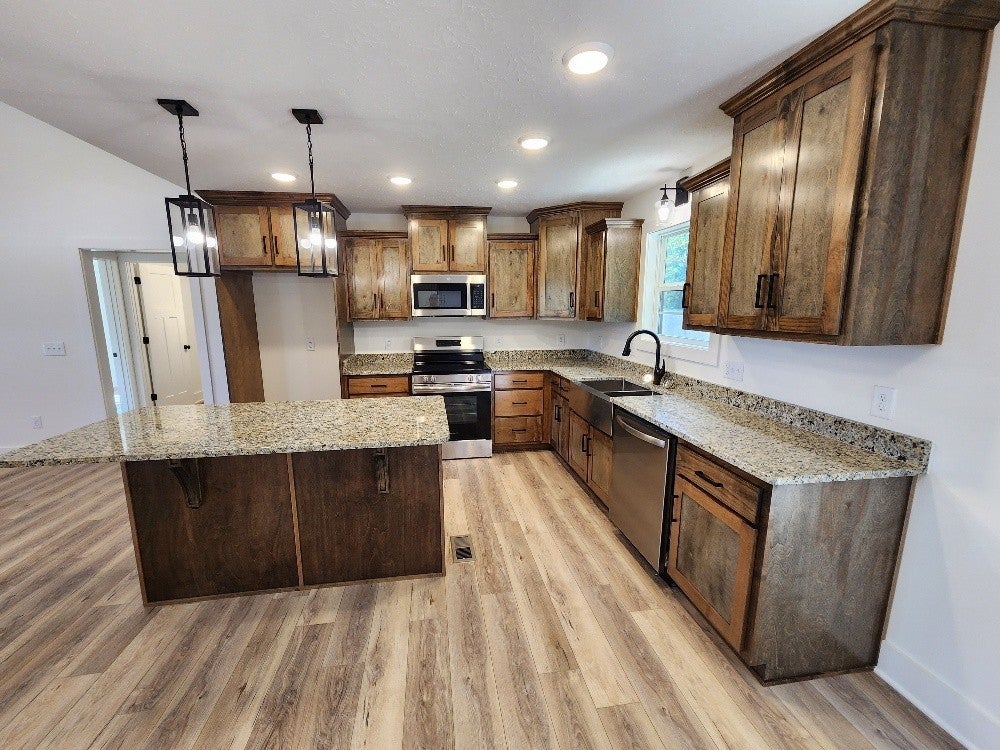 New 3 bdr 2 bath home in Rolling Meadows -1,500 sq feet- custom cabinets with granite tops in the kitchen- stainless appliances- lvp flooring throughout- spacious rooms- walk-in closet in master suite- walk-in closets-pantry closet-cathedral and tray ceilings- storage in attic-concrete drive- landscaped - Don't miss this one!