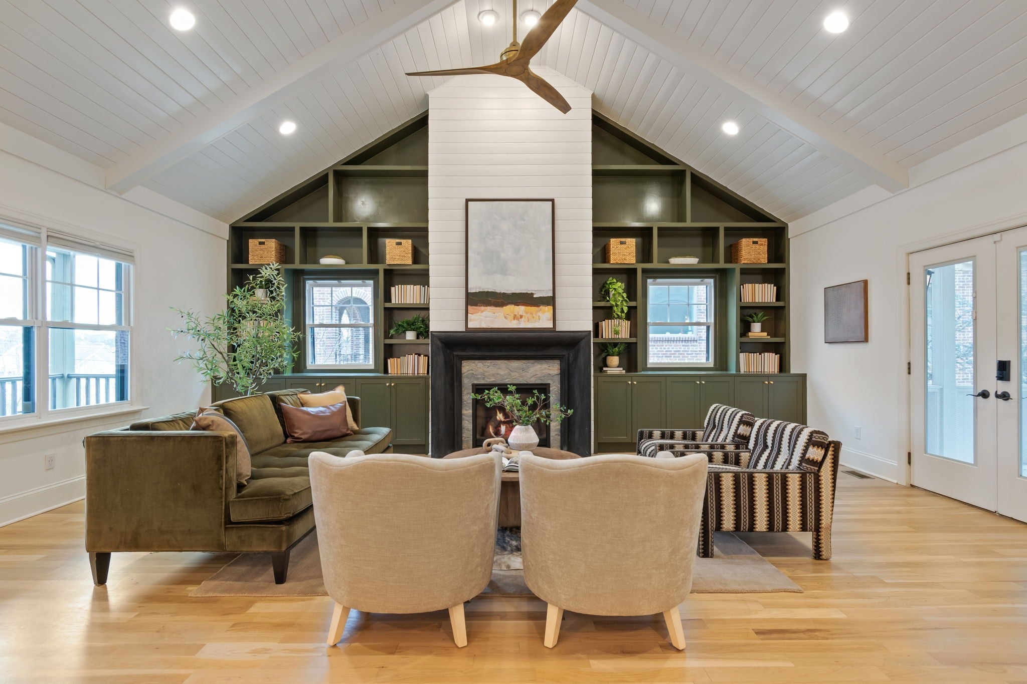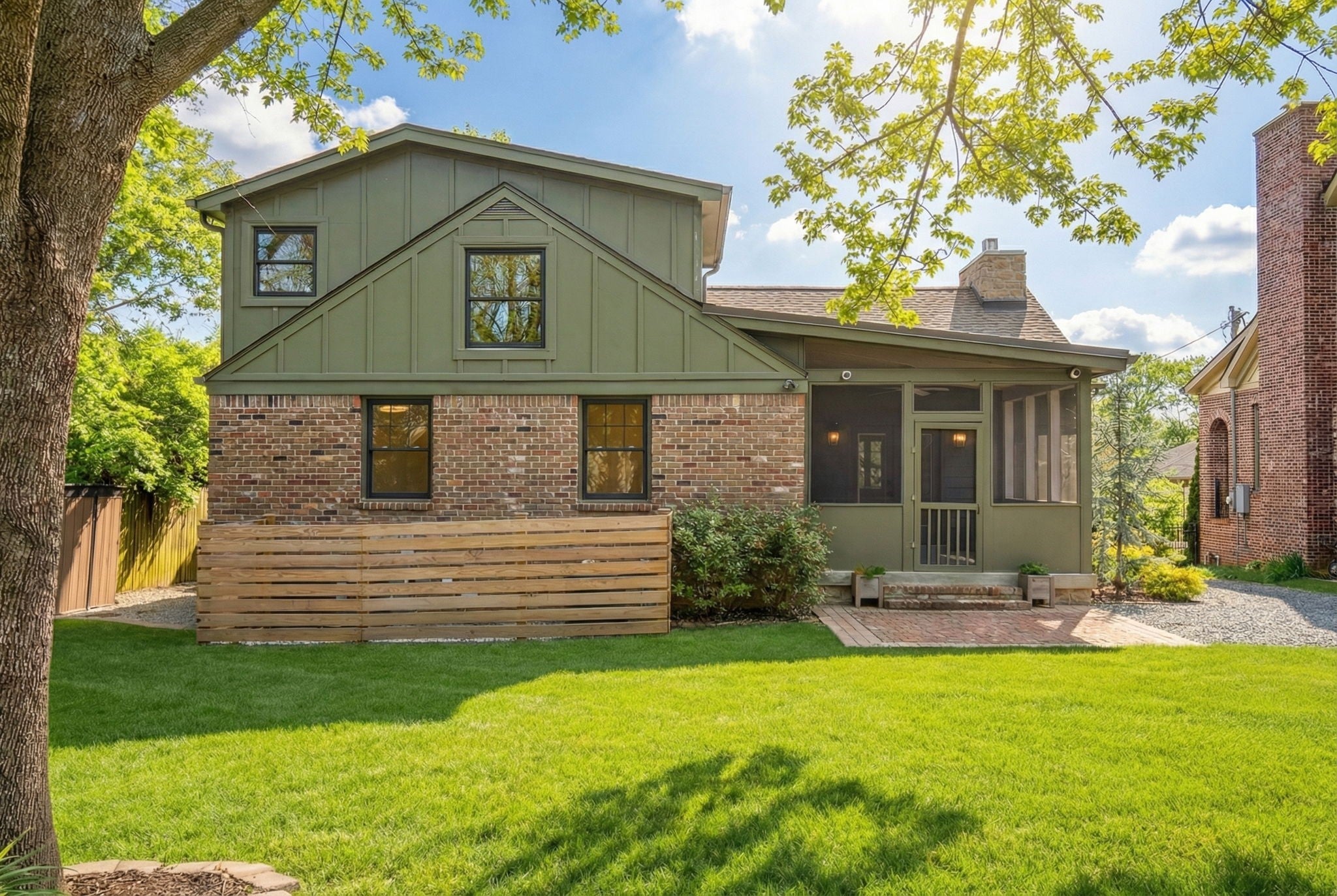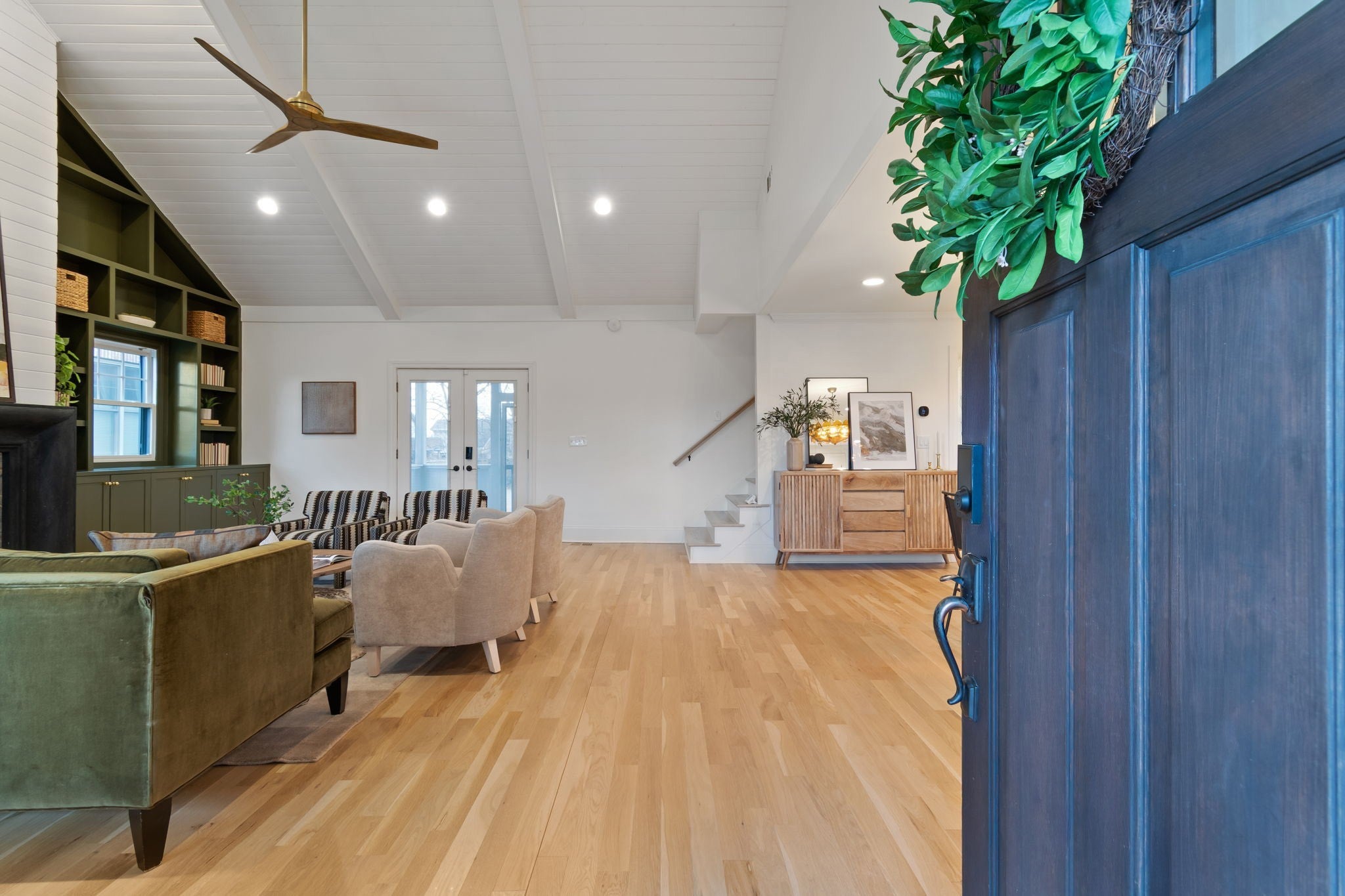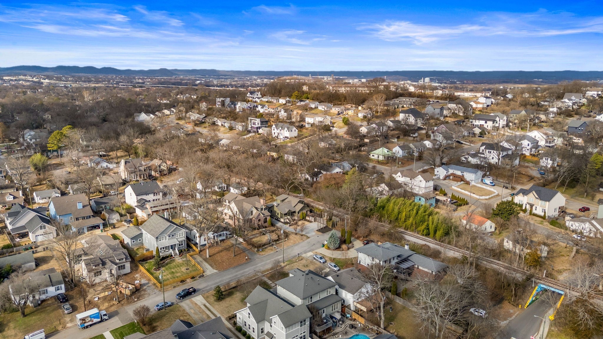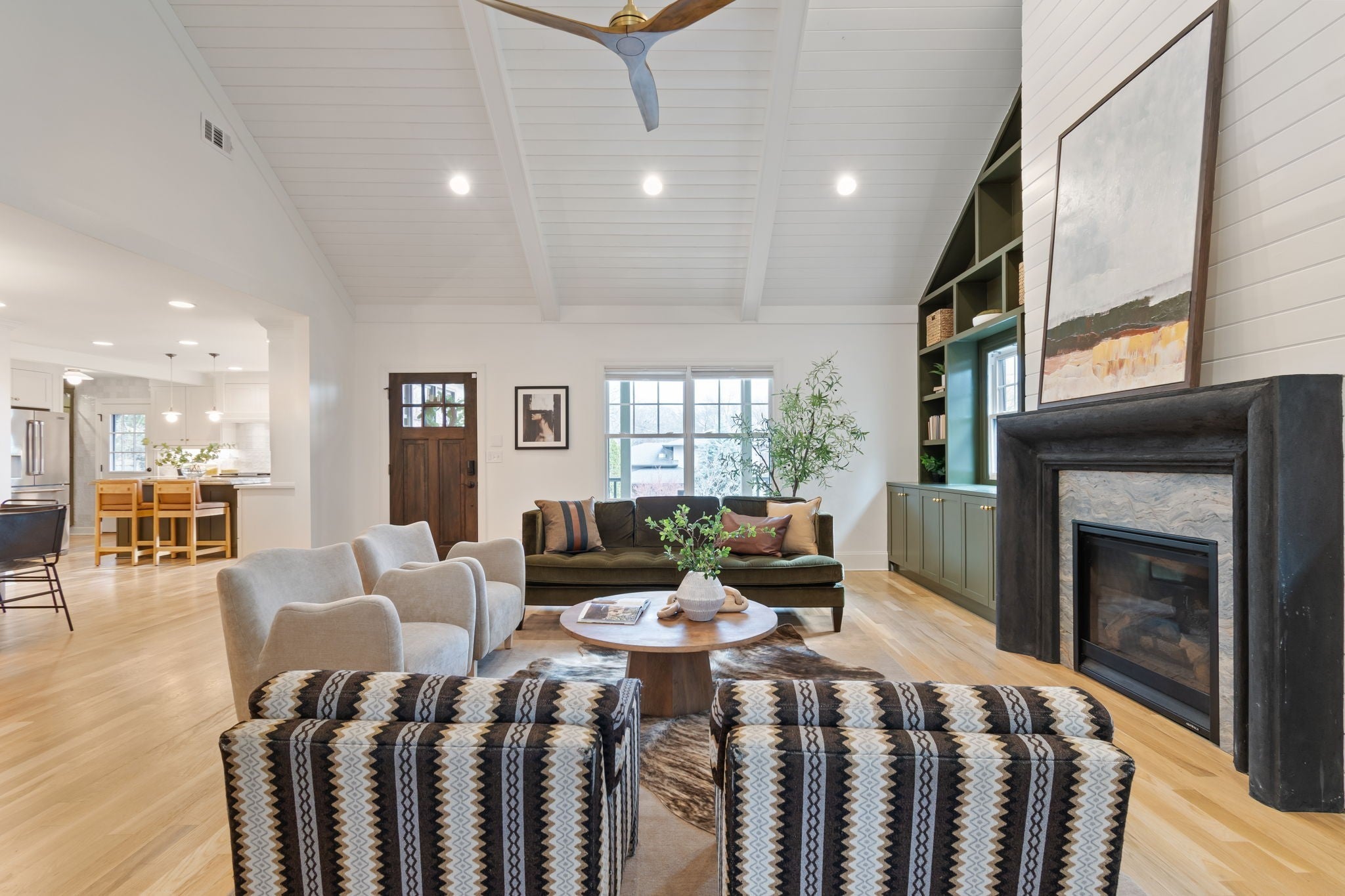 Modern luxury meets timeless Sylvan Park charm in this completely reimagined residence, thoughtfully curated with designer selections and artisanal details throughout. Set on an expansive, private lot in one of Nashville’s most walkable and beloved neighborhoods, this home blends architectural character with elevated, magazine-worthy finishes. Soaring vaulted ceilings anchor the main living space, centered around a fully custom fireplace surround clad in Green Fusion quartzite, flanked by bespoke built-ins. Wide-plank white oak hardwoods + designer lighting create an effortless flow throughout the home. The kitchen is both refined + inviting, featuring sleek modern cabinetry, Green Fusion quartzite countertops, a statement island, luxury JennAir appliances with gas range, and carefully selected porcelain pendants that add sculptural interest above the island. Design details continue throughout, including porcelain knobs with antique brass accents on the main level and polished brass lever hardware upstairs—adding subtle character at every turn. The main level also offers flexible living, including a secondary bedroom with custom built-in bunk beds, ideal for guests, children, or multi-use spaces. The primary suite is a private retreat, complete with a sitting area + spa-inspired bath featuring a soaking tub, oversized glass shower with Jolie Filtered Shower Heads, designer cement tile, brass fixtures, lime wash walls, custom cabinetry, and a spacious walk-in closet with hidden storage. Additional baths continue the elevated design story with custom cabinetry, bespoke countertops, statement wallpaper, and high-end fixtures. Even the laundry room is thoughtfully finished with designer Utopia wallpaper. Lot approved for detached garage or DADU by Metro. Enjoy rare privacy outdoors while being moments from Sylvan Park favorites—local restaurants, McCabe Golf Course, the Greenway, parks, and shopping.