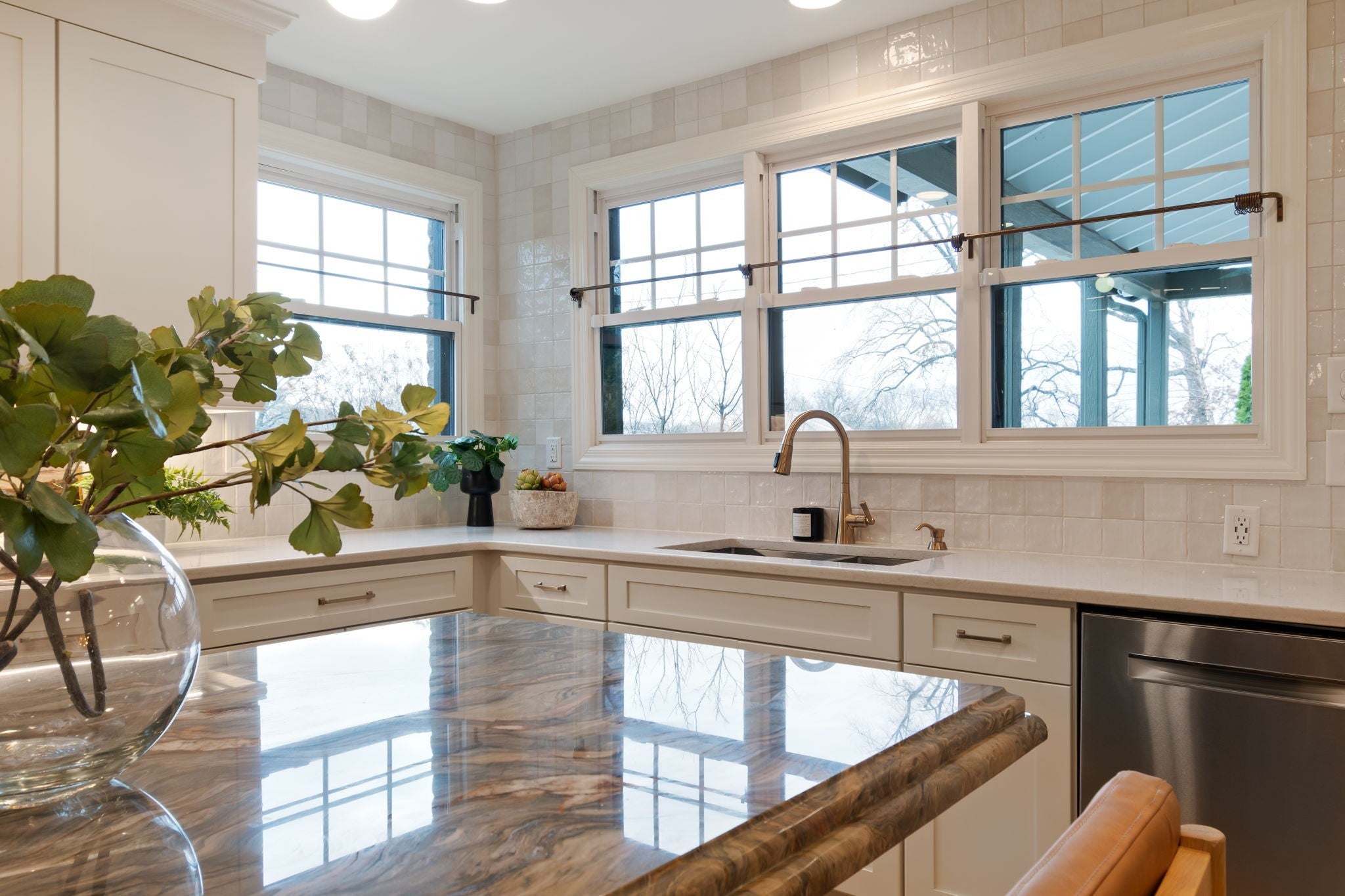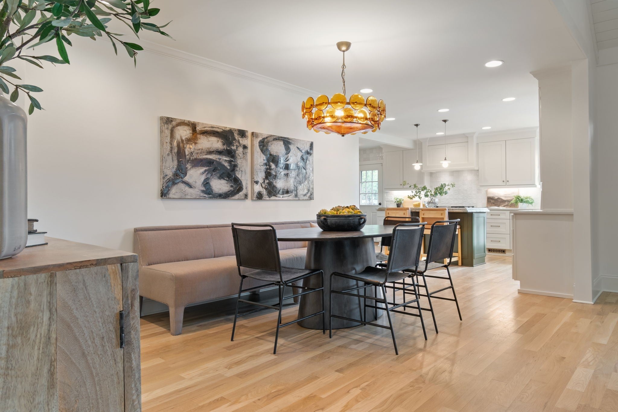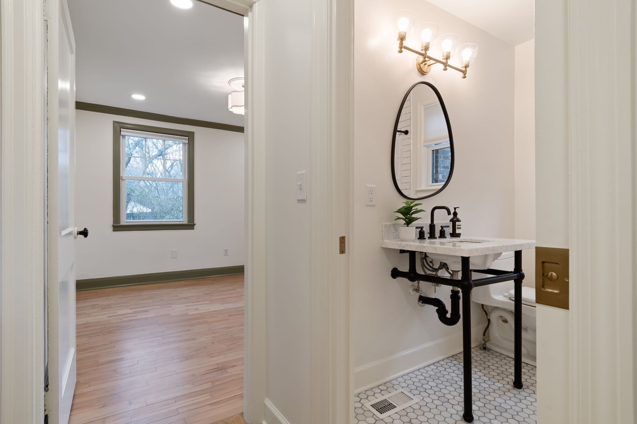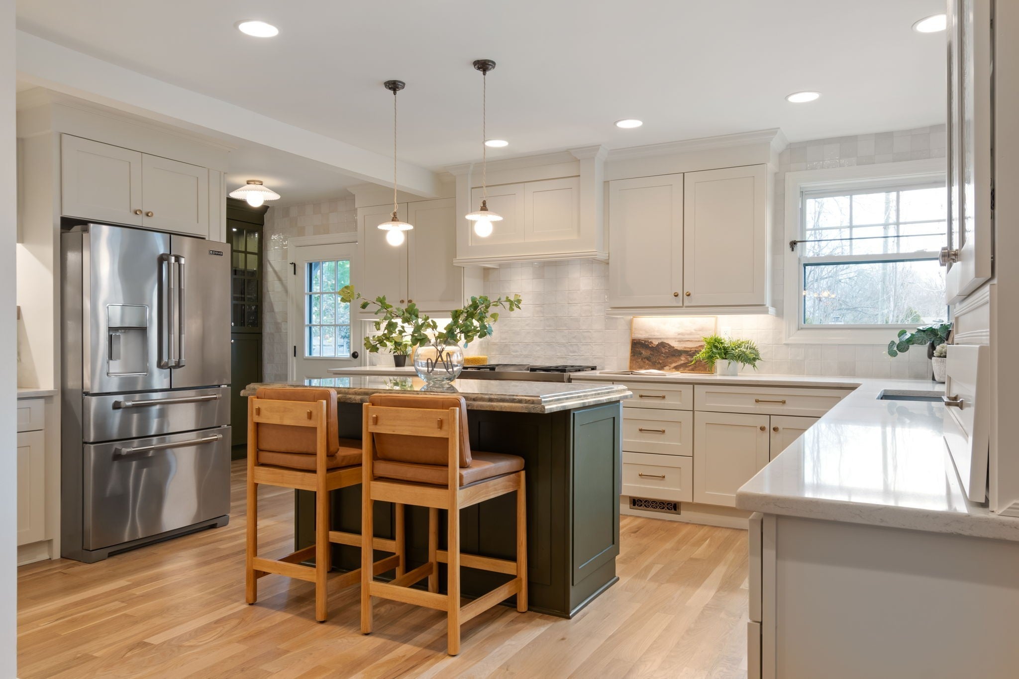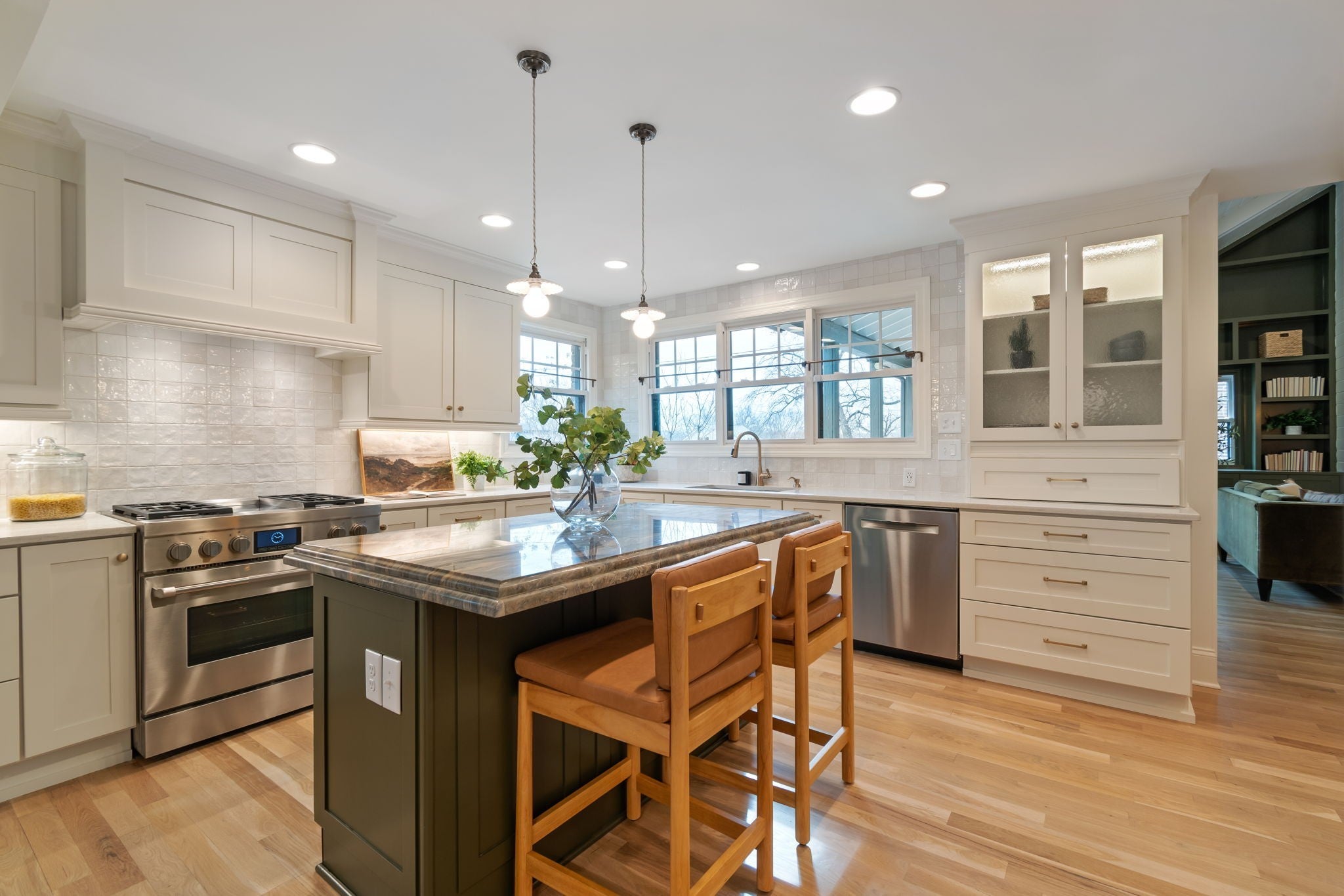 Modern luxury meets timeless Sylvan Park charm in this completely reimagined residence, thoughtfully curated with designer selections and artisanal details throughout. Set on an expansive, private lot in one of Nashville’s most walkable and beloved neighborhoods, this home blends architectural character with elevated, magazine-worthy finishes. Soaring vaulted ceilings anchor the main living space, centered around a fully custom fireplace surround clad in Green Fusion quartzite, flanked by bespoke built-ins. Wide-plank white oak hardwoods + designer lighting create an effortless flow throughout the home. The kitchen is both refined + inviting, featuring sleek modern cabinetry, Green Fusion quartzite countertops, a statement island, luxury JennAir appliances with gas range, and carefully selected porcelain pendants that add sculptural interest above the island. Design details continue throughout, including porcelain knobs with antique brass accents on the main level and polished brass lever hardware upstairs—adding subtle character at every turn. The main level also offers flexible living, including a secondary bedroom with custom built-in bunk beds, ideal for guests, children, or multi-use spaces. The primary suite is a private retreat, complete with a sitting area + spa-inspired bath featuring a soaking tub, oversized glass shower with Jolie Filtered Shower Heads, designer cement tile, brass fixtures, lime wash walls, custom cabinetry, and a spacious walk-in closet with hidden storage. Additional baths continue the elevated design story with custom cabinetry, bespoke countertops, statement wallpaper, and high-end fixtures. Even the laundry room is thoughtfully finished with designer Utopia wallpaper. Lot approved for detached garage or DADU by Metro. Enjoy rare privacy outdoors while being moments from Sylvan Park favorites—local restaurants, McCabe Golf Course, the Greenway, parks, and shopping.